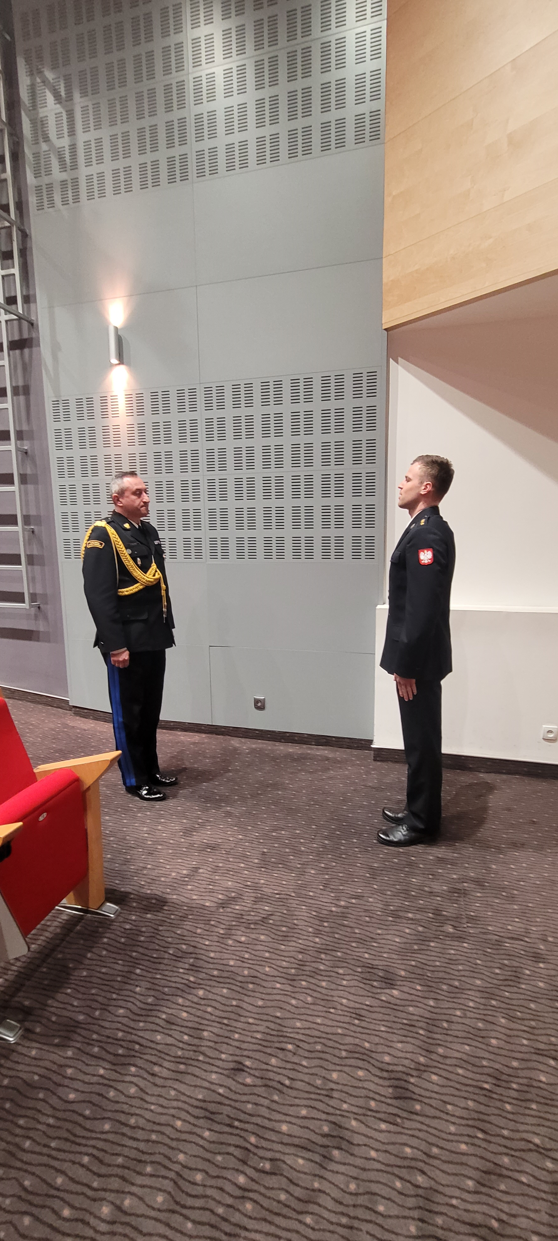 Z absolwentami w naszej Auli spotkali się: Komendant Szkoły Aspirantów PSP w Krakowie nadbryg. Piotr Filipek wraz ze sowim zastępcą – mł.bryg. Bogusławem Szydło oraz pracownicy wydziałów odpowiedzialnych za kształcenie i wychowanie, na czele z ich naczelnikami: mł.bryg. Łukaszem Wolakiem i st.kpt. Bartłomiejem Łąckim.