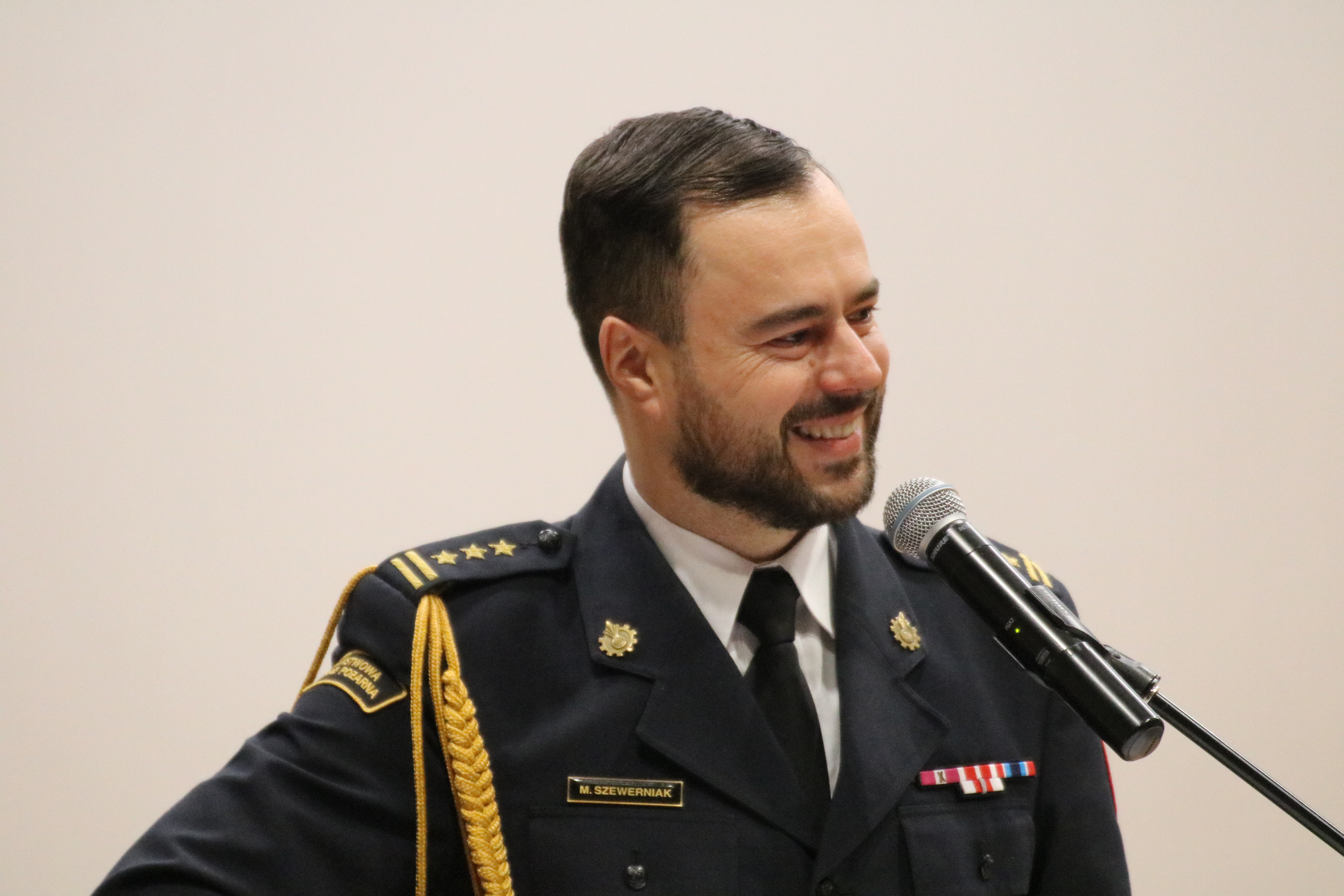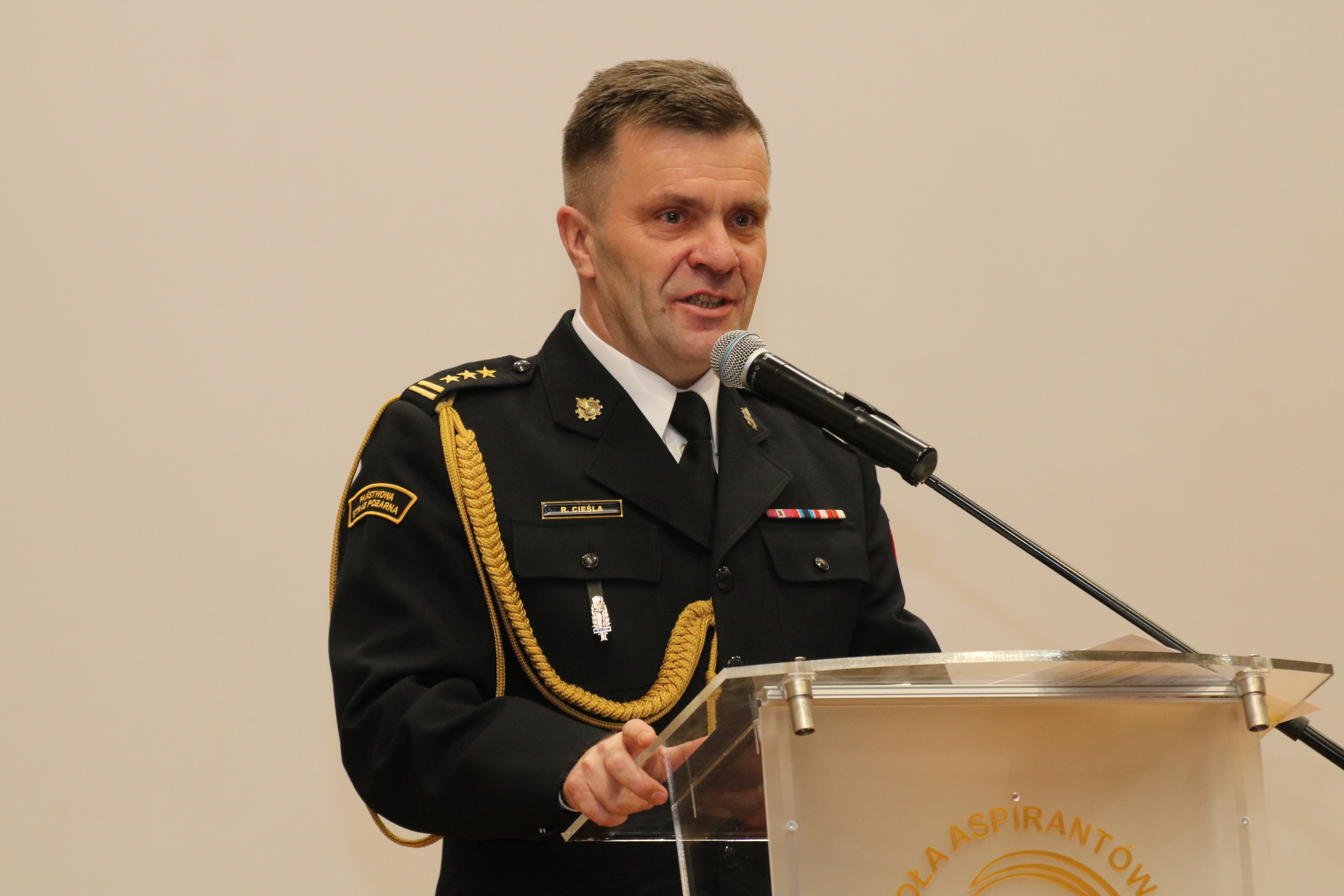 W imieniu kierownictwa, cywilnej i mundurowej kadry, rzeszy obecnych, byłych i przyszłych uczniów, którzy korzystać będą z owoców wieloletniej służby, dziękujemy za ogromne zaangażowanie i ciężką pracę na rzecz Państwowej Straży Pożarnej, jednostek ochrony przeciwpożarowej, lokalnej i miejskiej społeczności. Przyłączamy się także do najszczerszych życzeń, zdrowia i pomyślności oraz umiejętności odnalezienia się w rzeczywistości wolnej od: poleceń i rozkazów, narad, odpraw, domowych dyżurów, ciągłej gotowości do działania, konieczności odbierania telefonów o każdej porze dnia i nocy, spędzającej sen z powiek troski o podwładnych i powierzone mienie, działania w myśl ceremoniału i regulaminów.