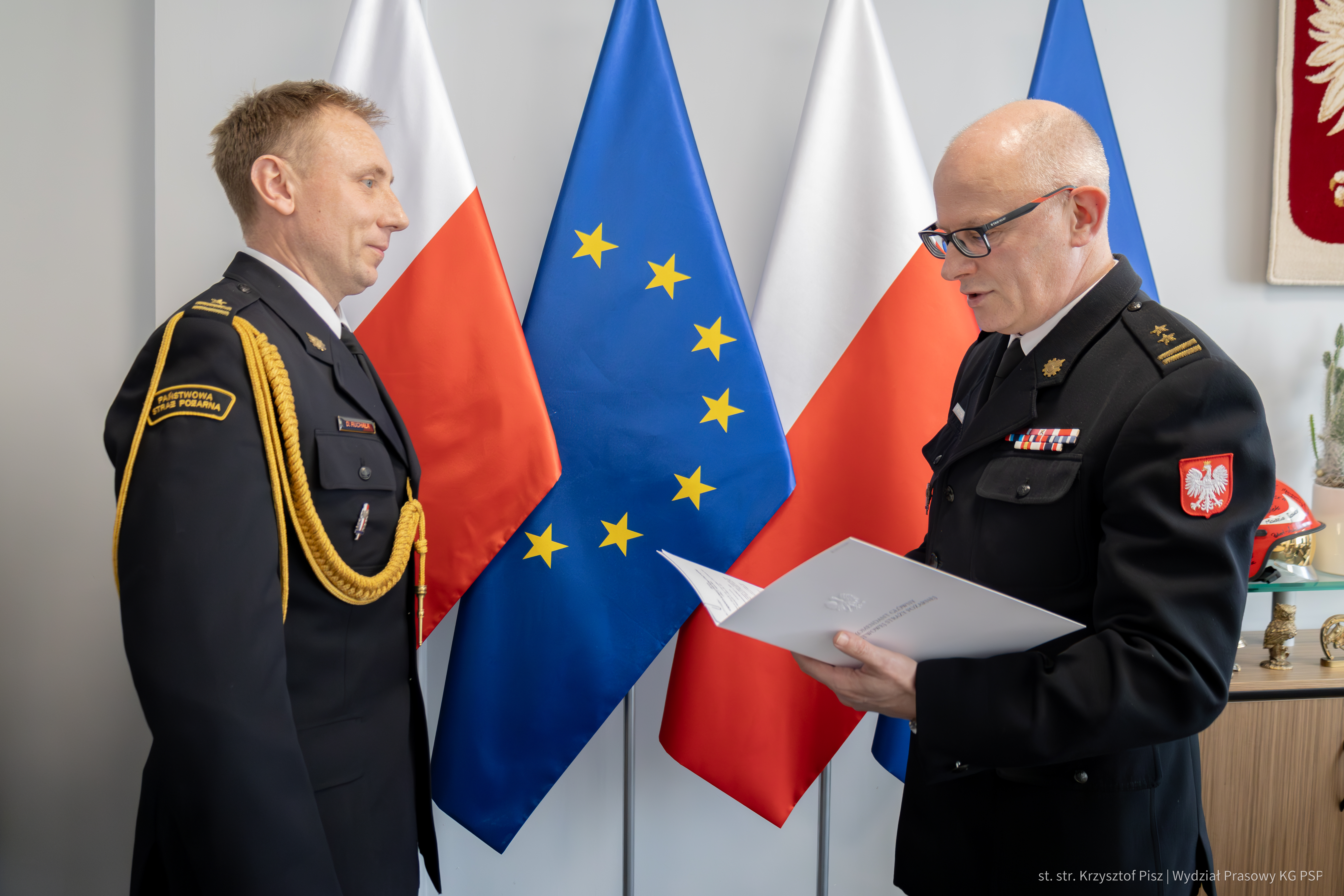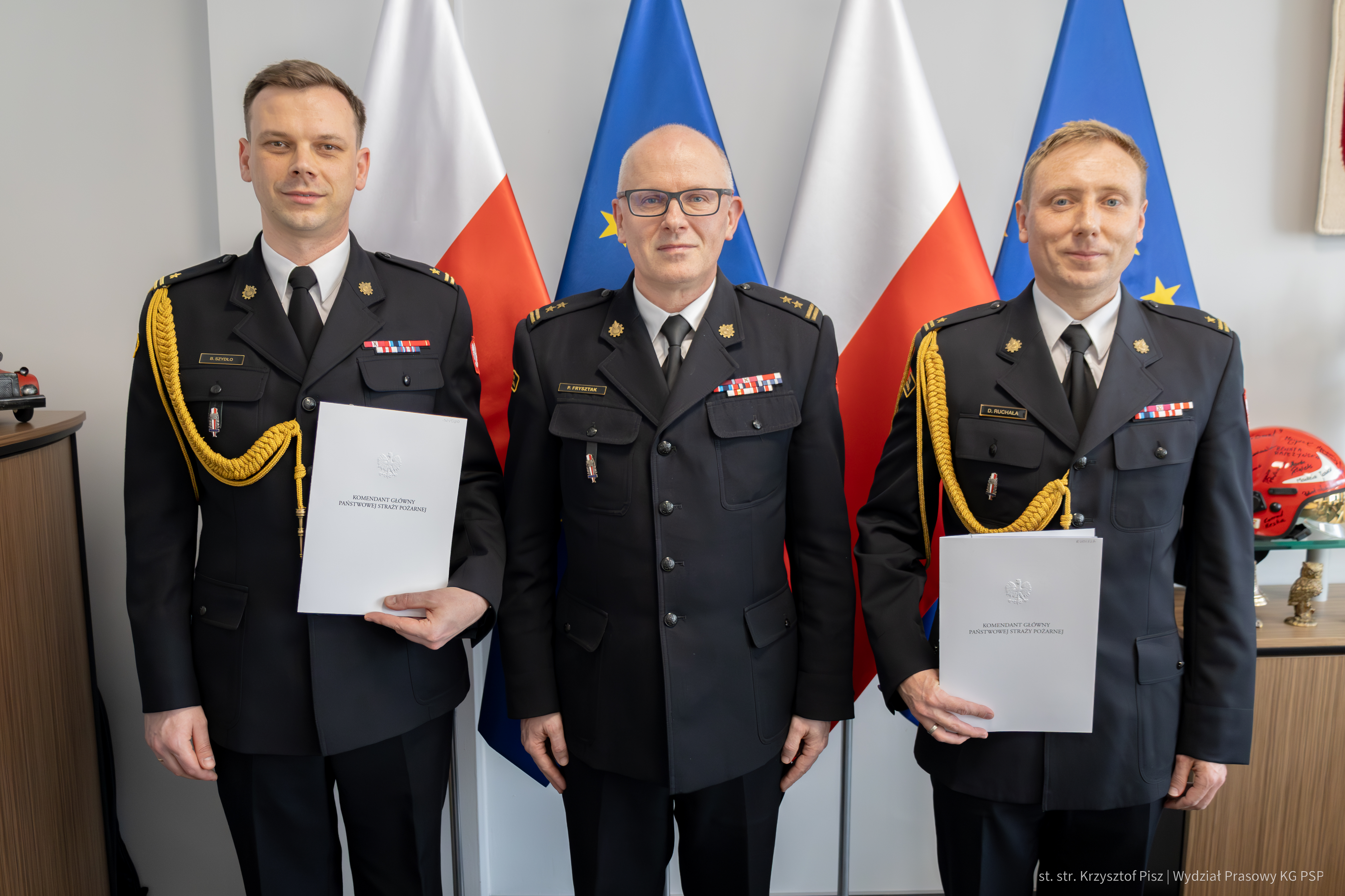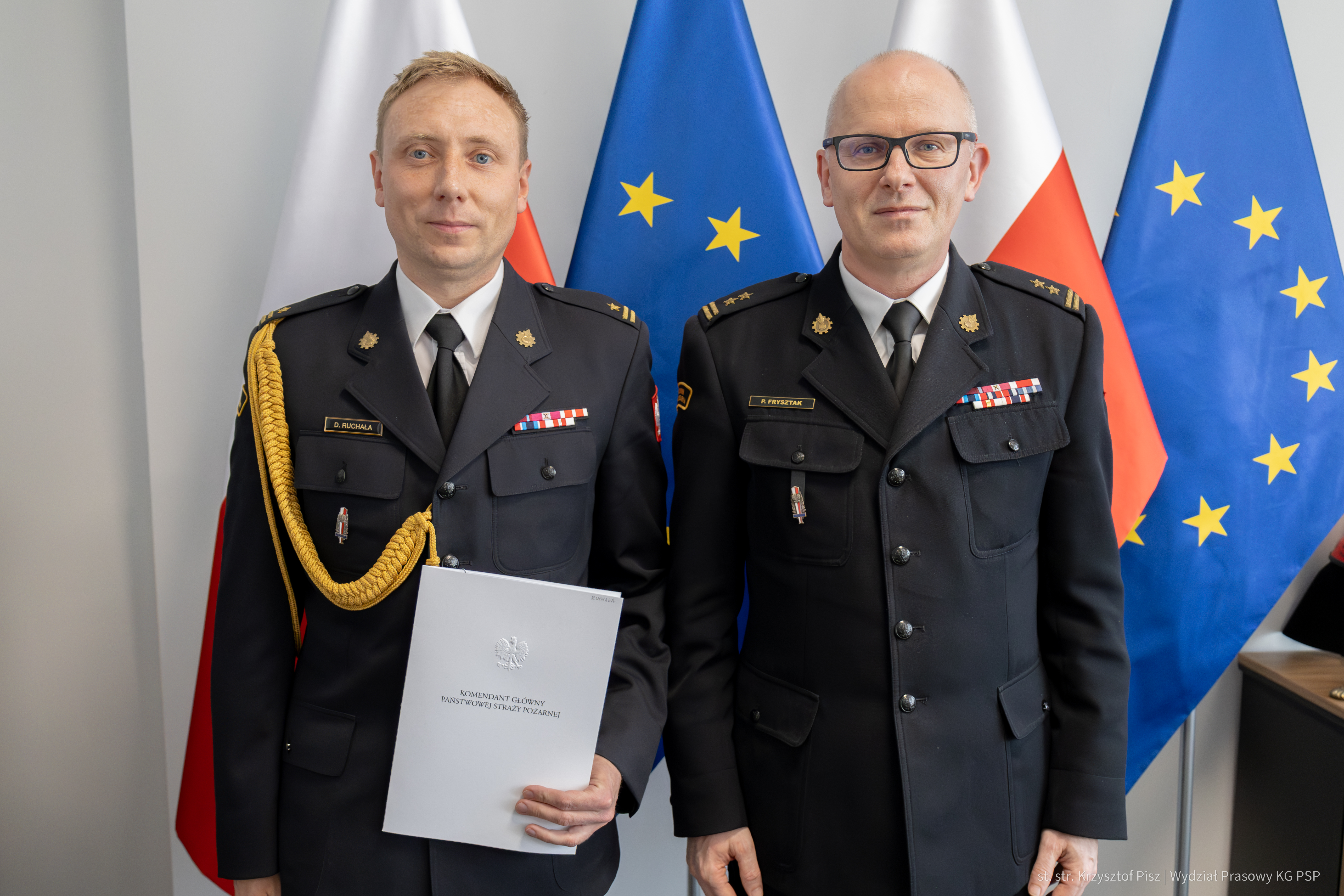 27 marca 2024 roku w siedzibie Komendy Głównej Państwowej Straży Pożarnej, z rąk zastępcy komendanta głównego PSP bryg. Pawła Frysztaka decyzje personalne o powierzeniu pełnienia obowiązków na stanowiskach zastępców komendanta SA PSP w Krakowie odebrali mł.bryg. Dariusz Ruchała i mł.bryg. Bogusław Szydło. Obaj związani są od lat z dydaktyką i organizacją kształcenia na rzecz jednostek ochrony przeciwpożarowej. Pierwszy pełniąc służbę w naszej Szkole, między innymi obowiązkami, brał czynny udział w nauczania wiodących przedmiotów zawodowych, do których zaliczają się taktyka działań ratowniczych i taktyka zwalczania pożarów, drugi zajmując stanowisko naczelnika Wojewódzkiego Ośrodka Szkolenia w Krakowie troszczył się o kształcenie w zawodzie strażak oraz doskonalenie funkcjonariuszy PSP, członków ochotniczych straży pożarnych i innych podmiotów tworzących i wspierających krajowy system ratowniczo- gaśniczy.