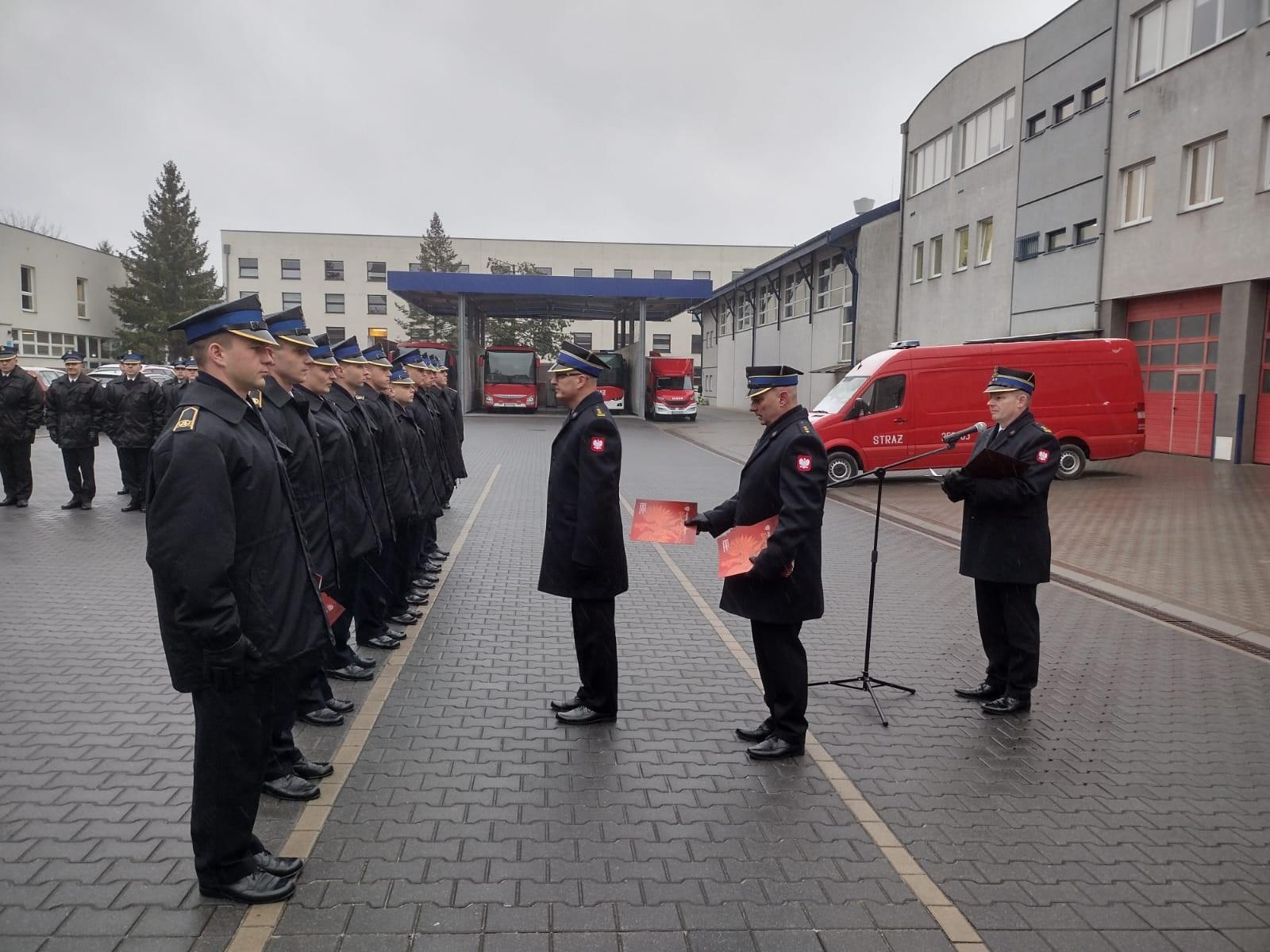 Pełniący obowiązki Komendanta Szkoły Aspirantów Państwowej Straży Pożarnej w Poznaniu st. bryg Andrzej Zajączkowski, w swoim przemówieniu wszystkim awansowanym oraz wyróżnionym złożył gratulacje, a także życzył dalszych sukcesów w nauce i służbie.