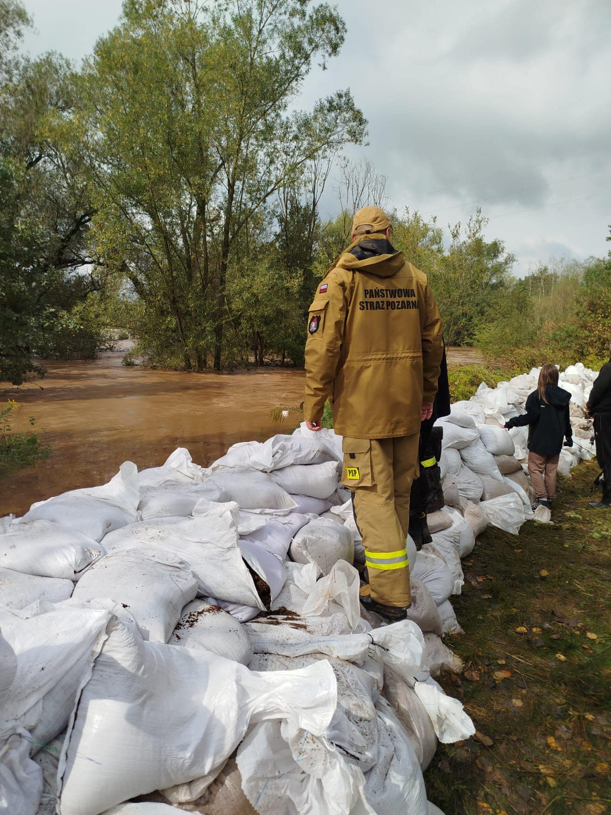 W poniedziałek kadeci ze Szkoły Aspirantów PSP w Poznaniu w ramach Centralnego Odwodu Operacyjnego prowadzą działania przy korycie rzeki Bóbr w miejscowości Bolesławiec. Do ich zadań należy umacnianie wałów które są osłabione i zagrożone przerwaniem.