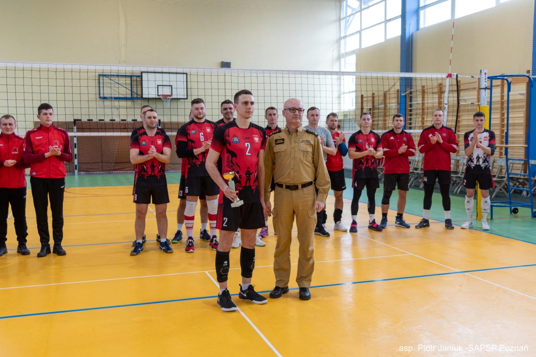 Podsumowania turnieju oraz wręczenia pucharów dokonał Komendant Szkoły Aspirantów Państwowej Straży Pożarnej w Poznaniu st. bryg. Andrzej Zajączkowski.