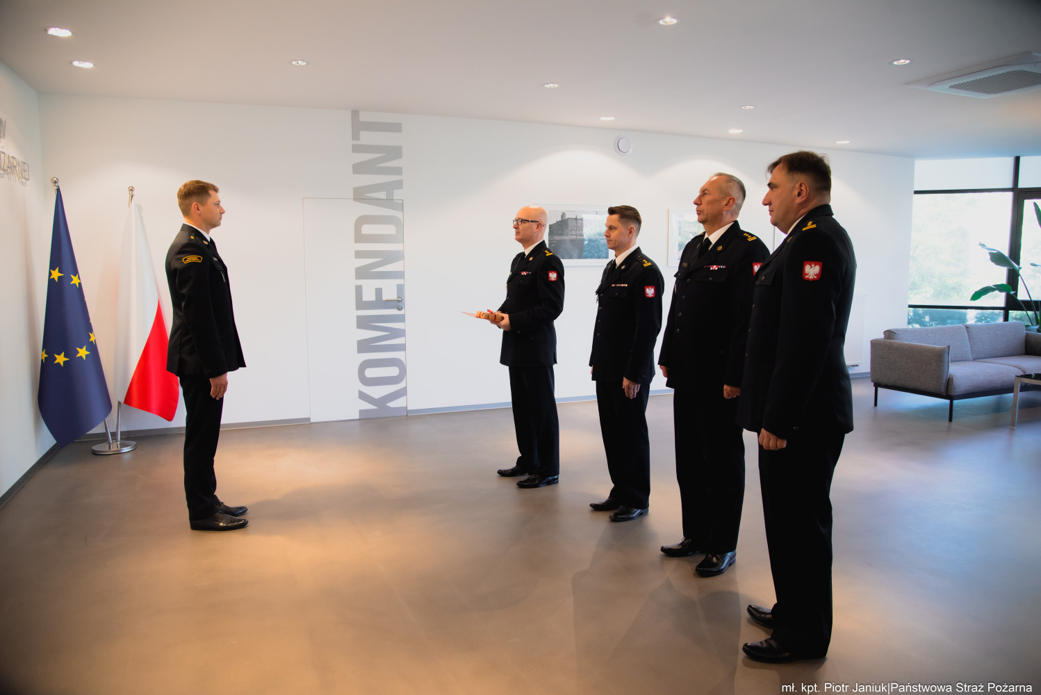 W przyjaznej i uroczystej atmosferze mł. kpt. Łukasz Rodziak odebrał osobiste gratulacje oraz symboliczny upominek jako wyraz uznania dla jego dotychczasowego zaangażowania w służbę oraz profesjonalizmu, który prezentuje na co dzień.