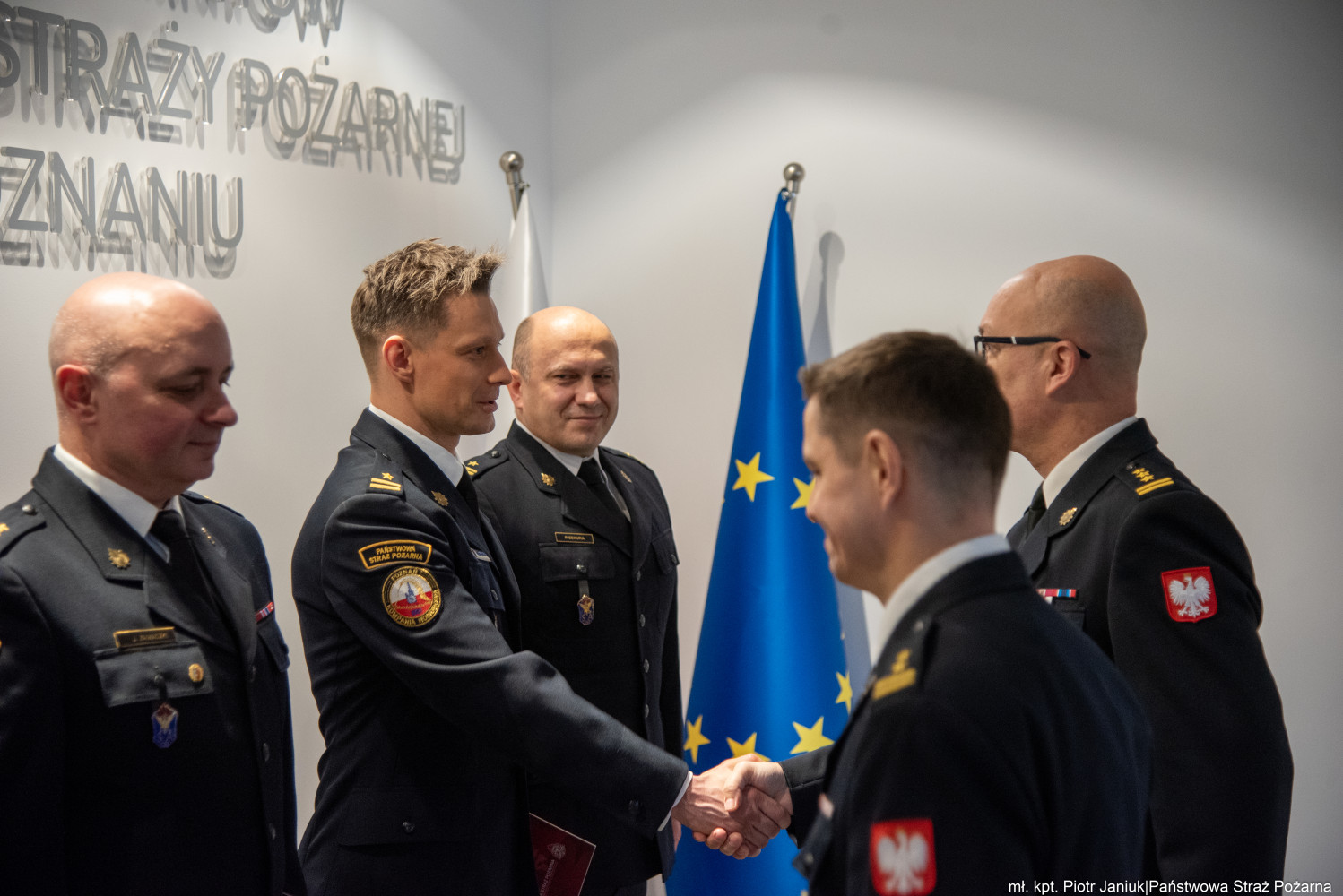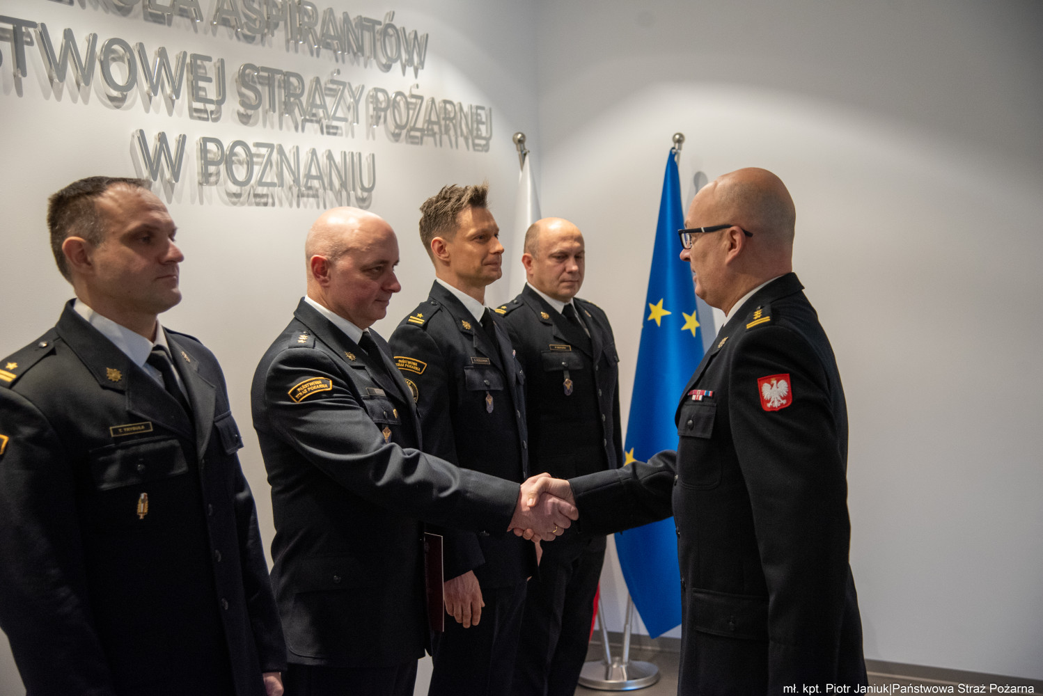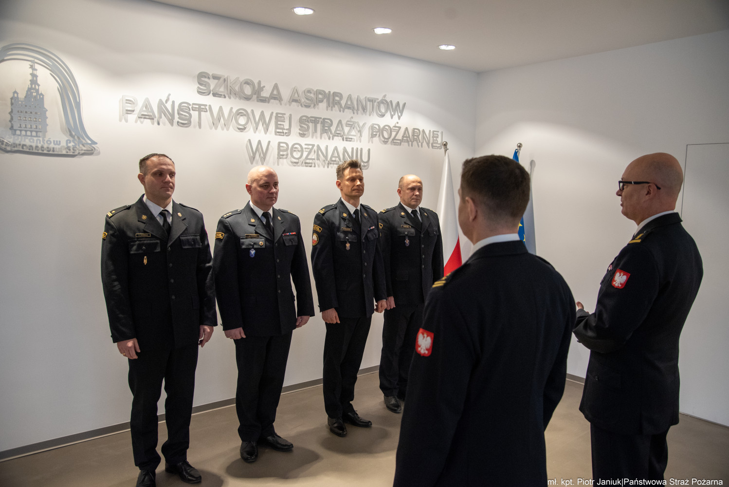W dniu 7 stycznia 2026 r. w siedzibie Szkoły Aspirantów Państwowej Straży Pożarnej w Poznaniu odbyło się uroczyste spotkanie, podczas którego Komendant Szkoły, st. bryg. Andrzej Zajączkowski, w obecności Zastępcy Komendanta, bryg. Przemysława Berusa, wręczył decyzje personalne dotyczące objęcia nowych stanowisk służbowych.