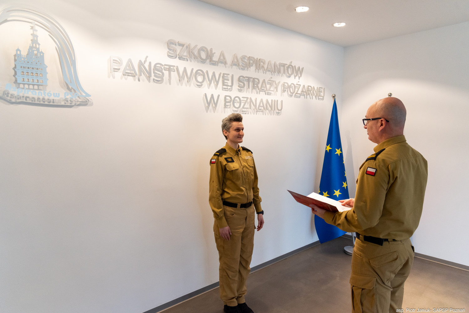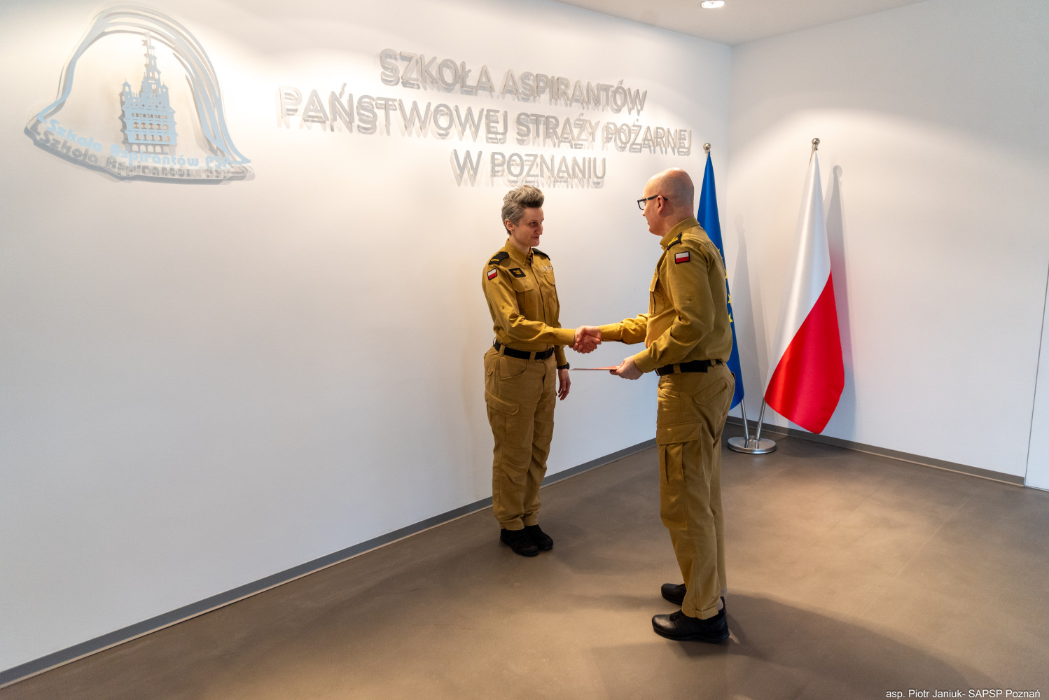 W poniedziałek, 24 marca 2024 r., w Szkole Aspirantów PSP w Poznaniu odbyła się uroczystość wręczenia mianowania do służby stałej st. str. Pauliny Wikło. Akt mianowania wręczył Komendant Szkoły, st. bryg. Andrzej Zajączkowski, w obecności swojego Zastępcy, st. bryg. Artura Banasiaka. To ważny moment w karierze naszej funkcjonariuszki, potwierdzający jej zaangażowanie i profesjonalizm.