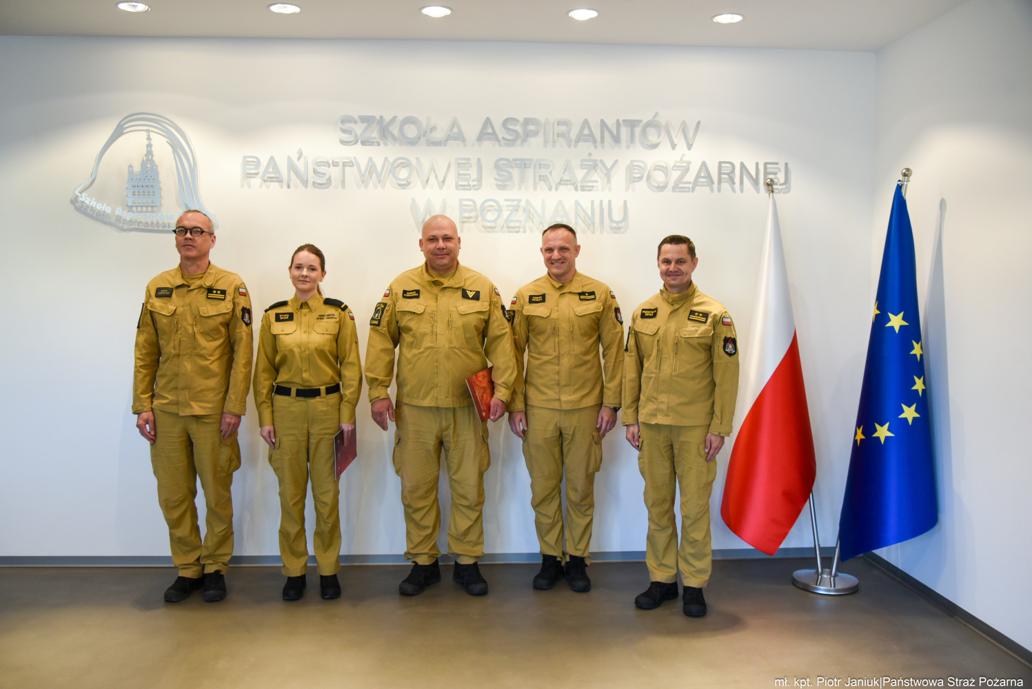 Wręczenia dokonał Zastępca Komendanta Szkoły Aspirantów PSP bryg. Przemysław Berus w obecności Naczelnika Wydziału Poligonu Szkolnego bryg. Tomasza Trybuła oraz Zastępcy Naczelnika Wydziału Organizacyjno-Kadrowego bryg. Jakuba Jaskólskiego.