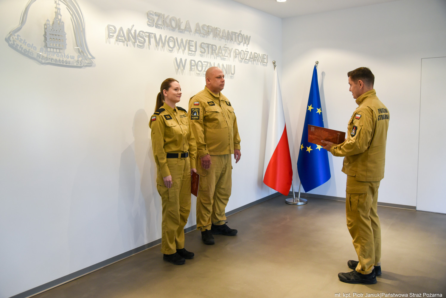 W dniu 16 września odbyła się w Szkole Aspirantów Państwowej Straży Pożarnej w Poznaniu uroczystość związana z przejściem ze służby przygotowawczej do służby stałej st. str. Sylwii Bajur oraz ze zmianą pełnienia służby w Jednostce Ratowniczo-Gaśniczej i przejściem do Wydziału Poligonu Szkolnego st. ogn. Damiana Kuśniarskiego.