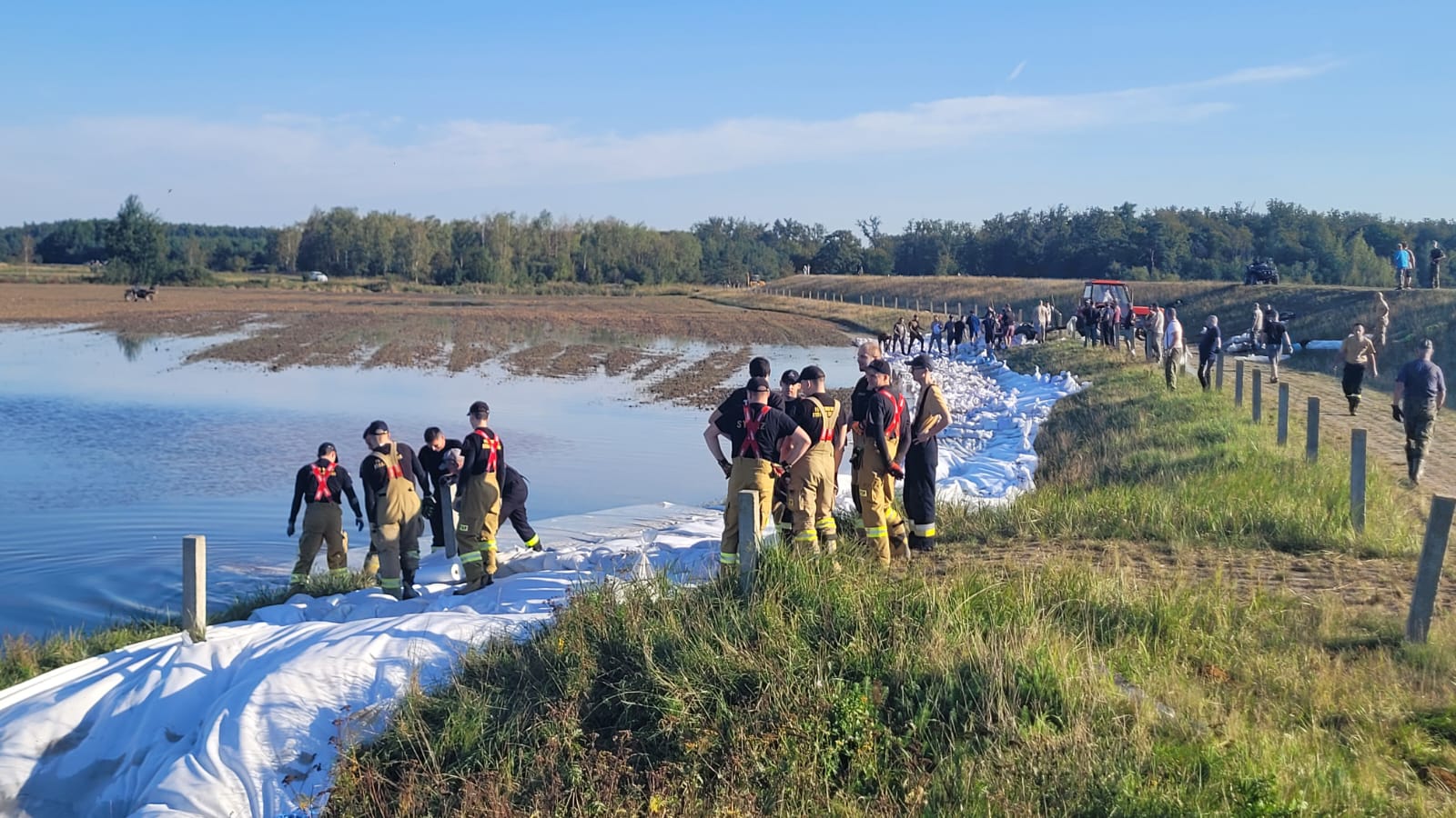 Zgodnie z dyspozycjami z Krajowego Centrum Koordynacji Ratownictwa kompania wielozadaniowa ze Szkoły Aspirantów PSP w Poznaniu, która funkcjonuje w ramach Centralnego Odwodu Operacyjnego Komendanta Głównego Państwowej Straży Pożarnej w dalszym ciągu wspomaga działania związane z zagrożeniem powodziowym. Piątek (20.09.2024r.) oraz sobota były kolejnymi dniami zmagań kadetów Szkoły Aspirantów Państwowej Straży Pożarnej w Poznaniu podczas umacniania wałów rzeki Odra. W tych dniach kadeci wspomagali działania na dwóch odcinkach rzeki w miejscowości Brzeg Dolny oraz Tarchalice. W niedzielę (22.09.2024r.) prowadzono działania związane z patrolowaniem wałów przeciwpowodziowych oraz uszczelnianiem przecieków w obrębie miejscowości Tarchalice.