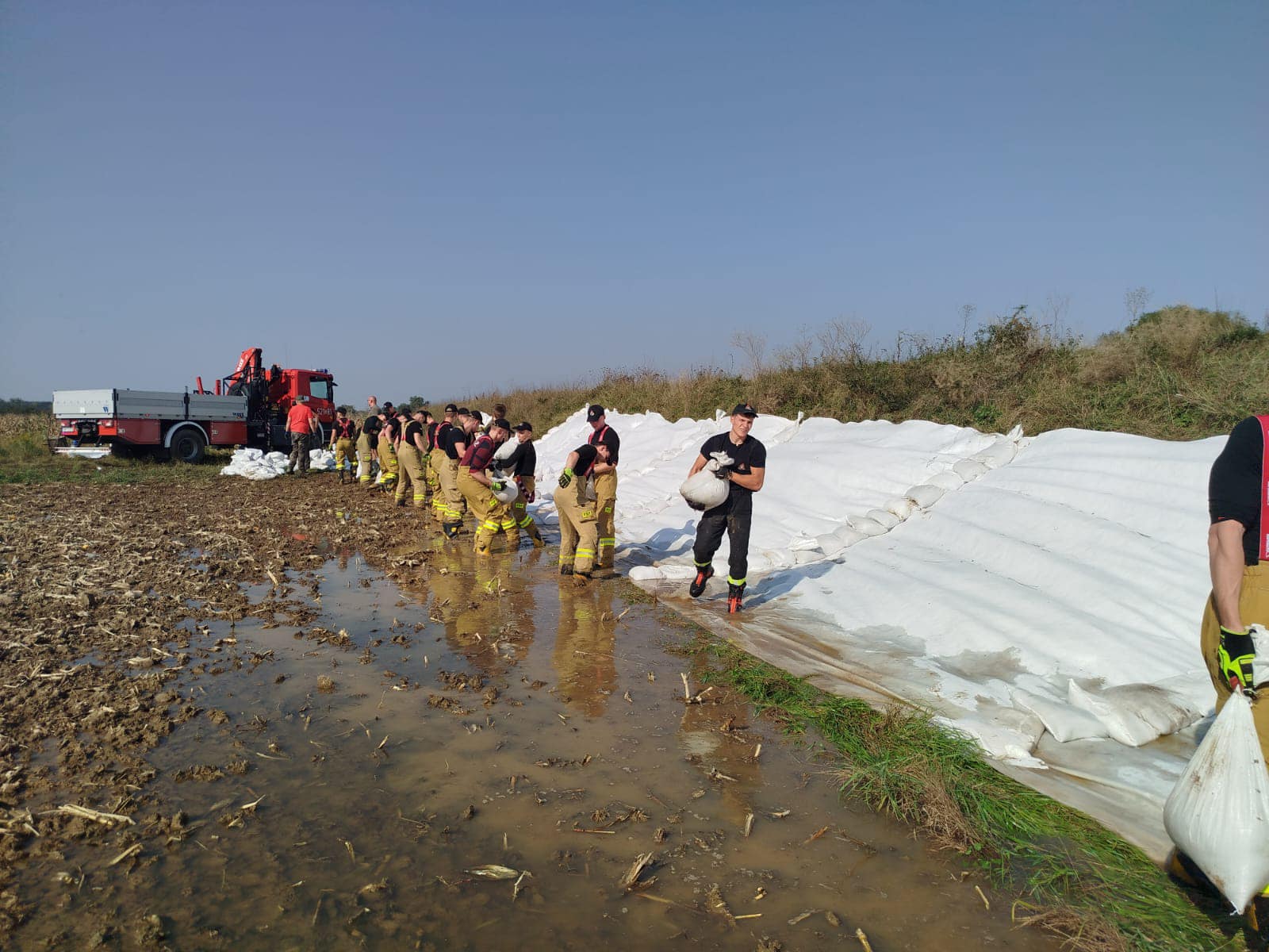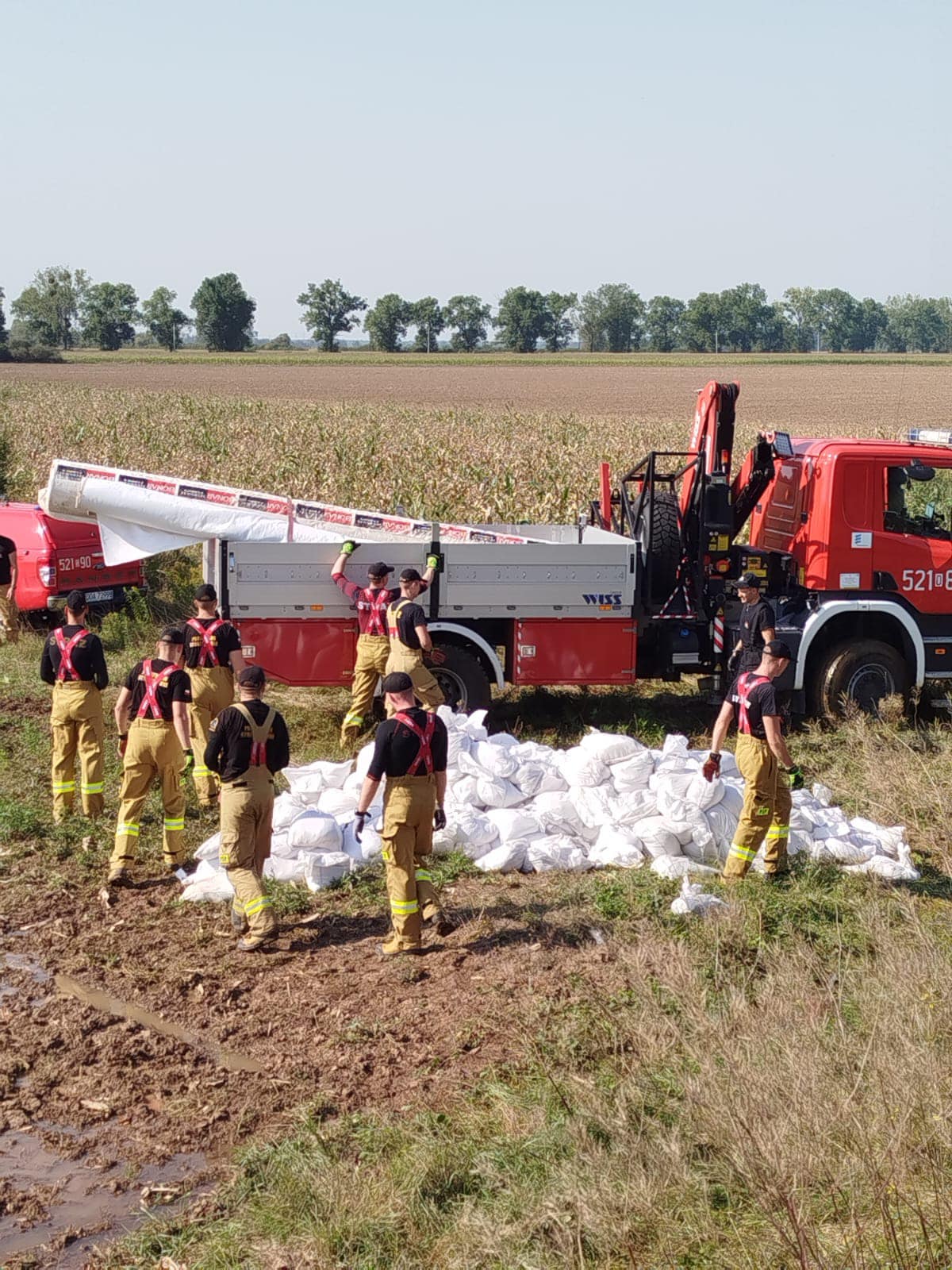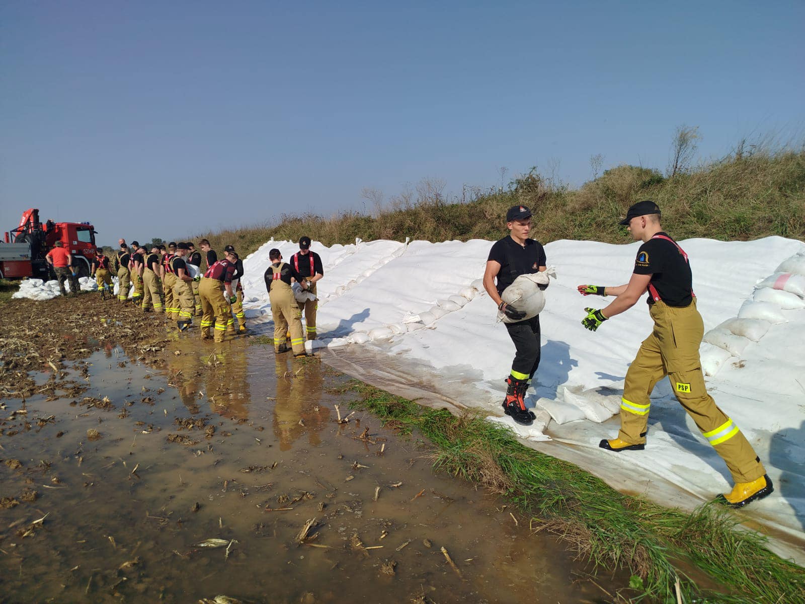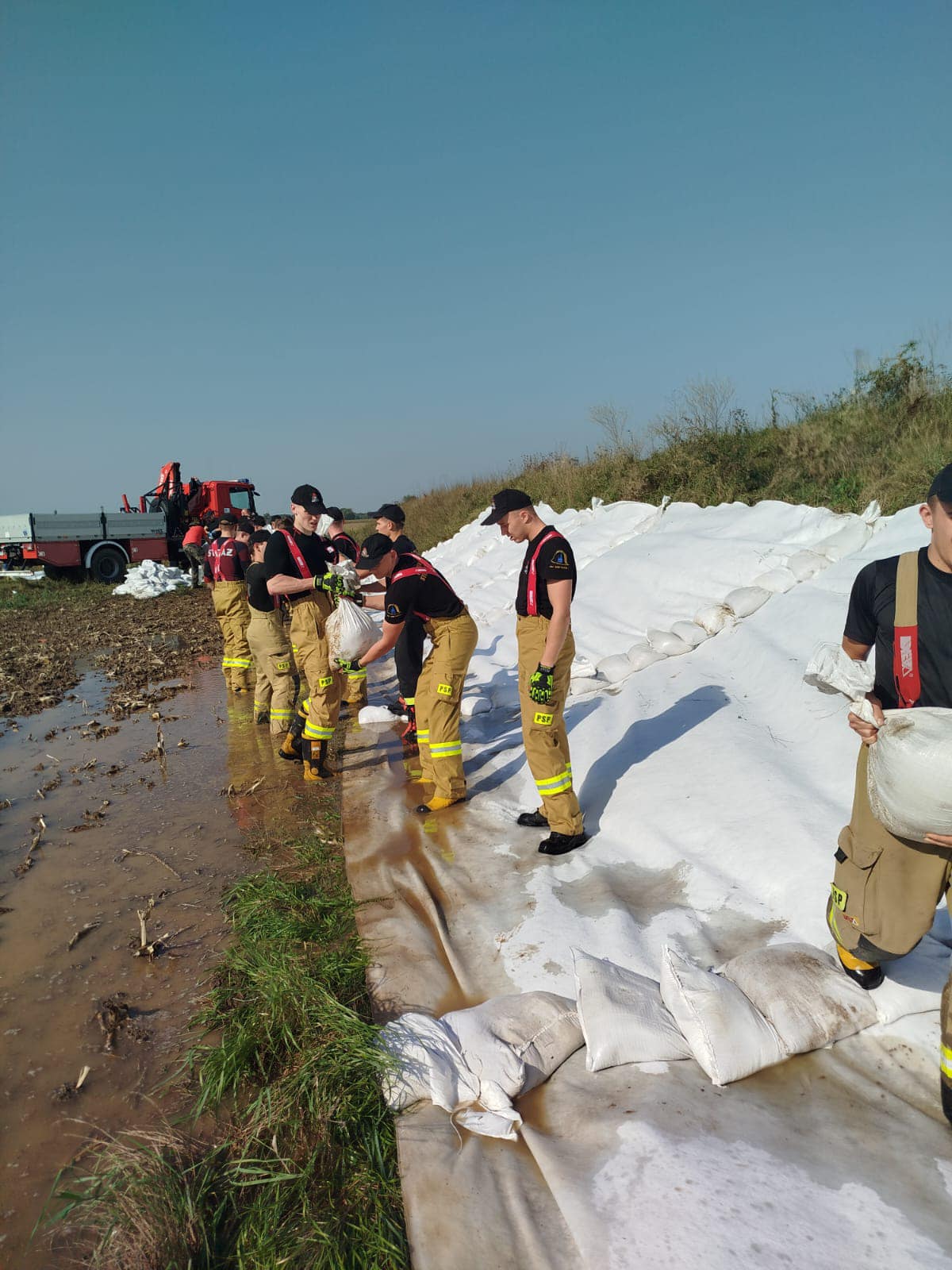 We wtorek (17.09.2024r.) kadeci ze Szkoły Aspirantów PSP w Poznaniu w ramach Centralnego Odwodu Operacyjnego kontynuują działania przy umacnianiu wałów przy rzekach. W dniu dzisiejszym ich działania prowadzone są przy korycie rzeki Odra w miejscowości Oława.