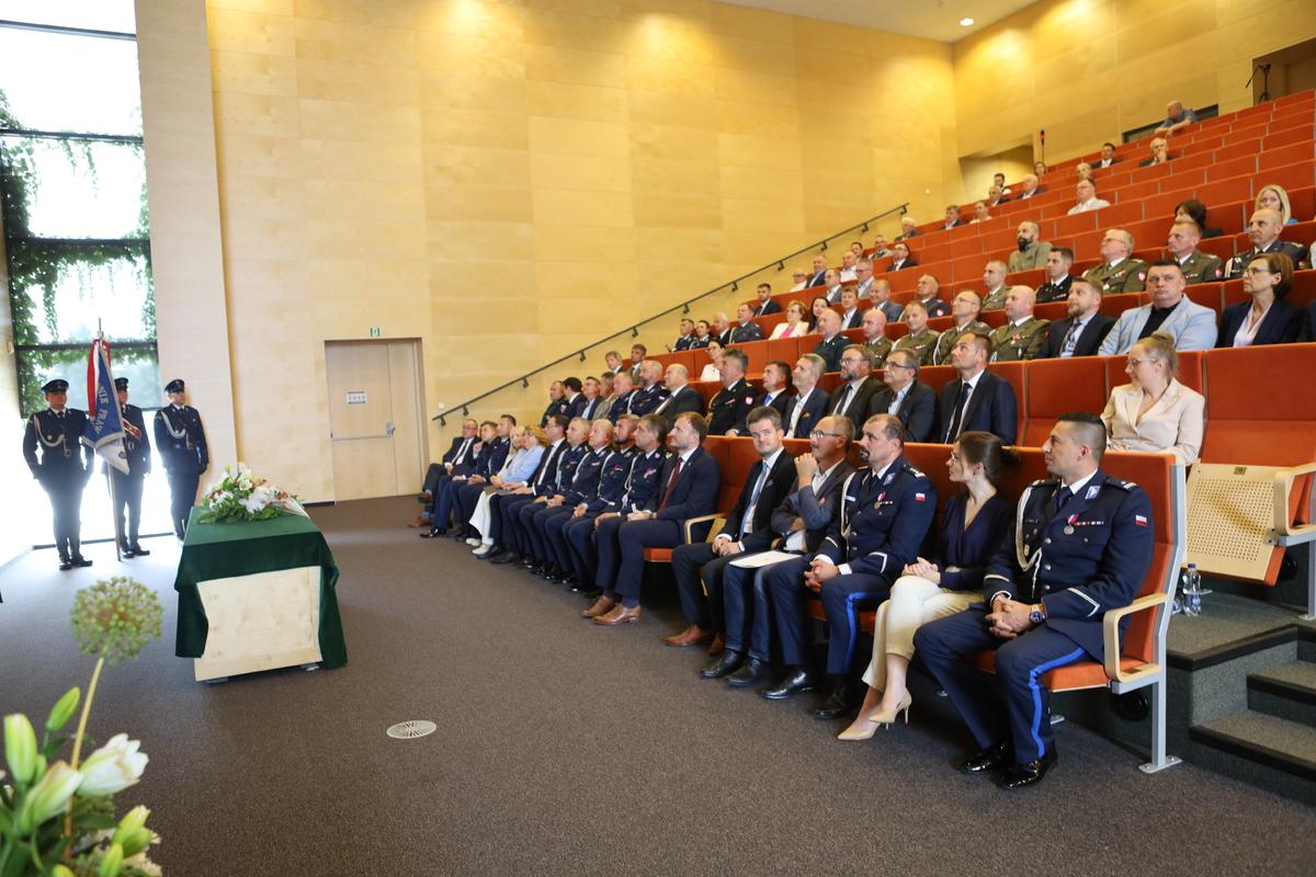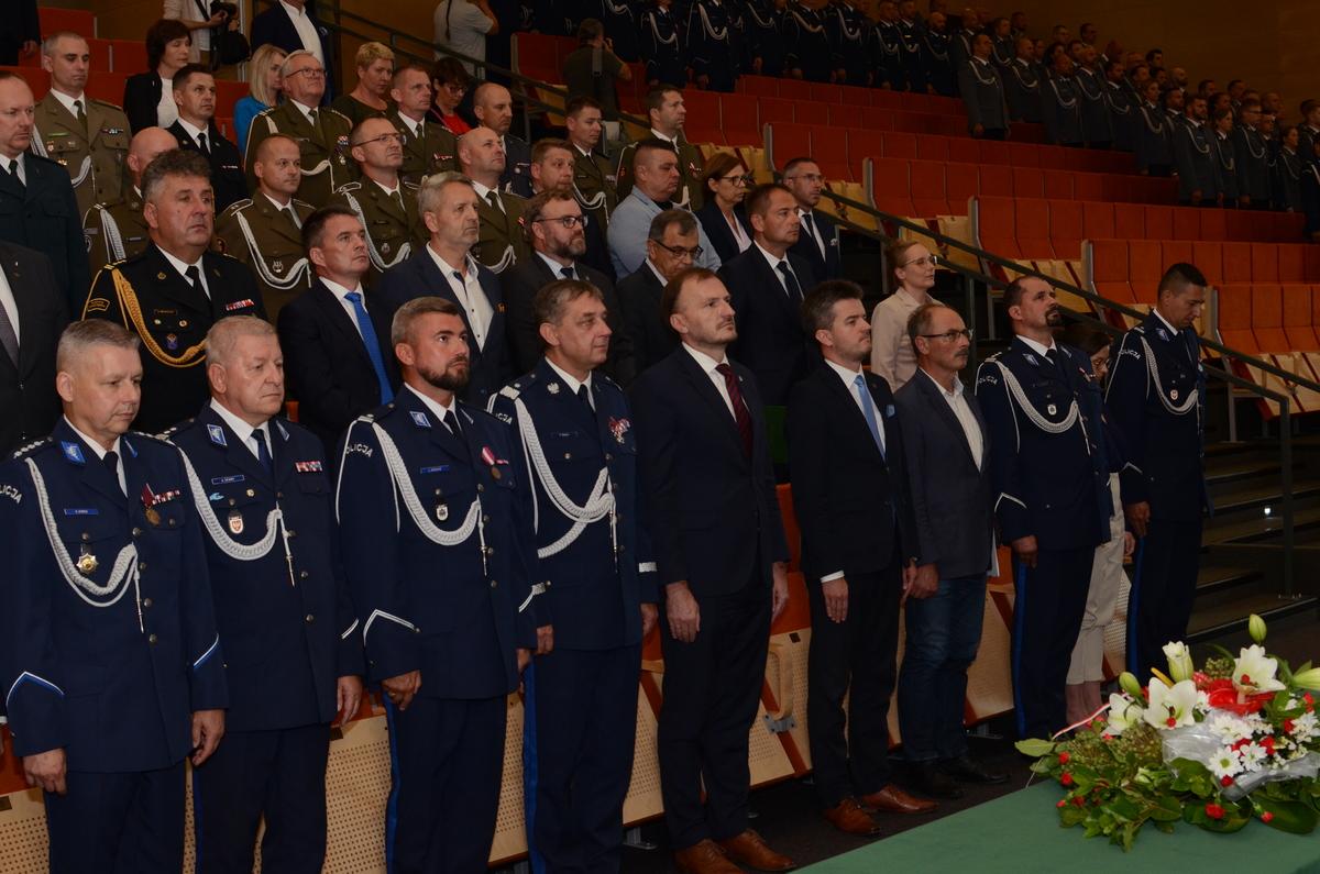 W dniu 22 lipca br. w Auli Uniwersytetu Przyrodniczego w Poznaniu odbyła się uroczysta zbiórka z okazji Święta Policji. W tym dniu wręczono policjantom odznaczenia, wyróżnienia i awanse. W uroczystości uczestniczyła Wojewoda Wielkopolska Pani Agata Sobczyk oraz podinsp. Adam Jurek Zastępca Komendanta Wojewódzkiego Policji w Poznaniu. W spotkaniu udział wzięli funkcjonariusze, pracownicy Policji oraz zaproszeni goście – przedstawiciele władz samorządowych, środowiska akademickiego, prokuratury oraz zaprzyjaźnionych służb mundurowych i instytucji. Z ramienia kierownictwa SA PSP w Poznaniu udział w uroczystościach wziął Z-ca Komendanta Szkoły bryg. Przemysław Berus.