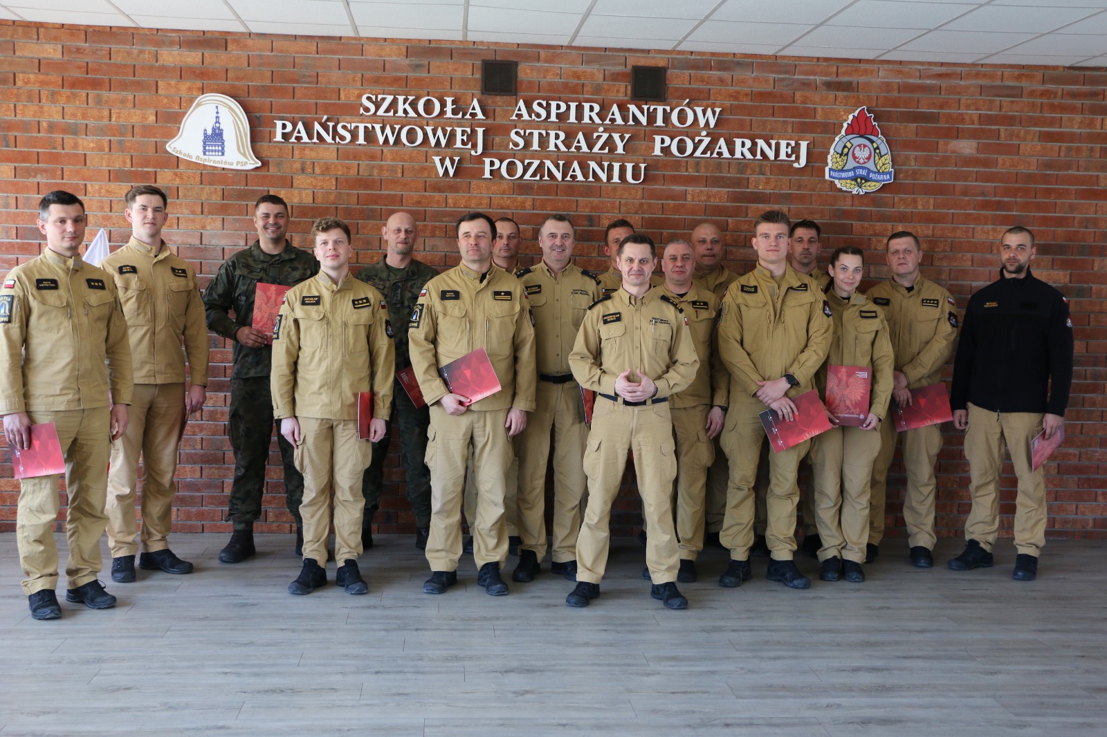 Na zakończenie warsztatów, uczestnicy wypełnili ankietę, której analiza wpłynie na podniesienie poziomu kolejnych przedsięwzięć, a następnie Zastępca Komendanta Szkoły Aspirantów Państwowej Straży Pożarnej w Poznaniu, Pan bryg. mgr inż. Przemysław Berus, wręczył uczestnikom warsztatów, zaświadczenia potwierdzające zdobycie nowych umiejętności.
