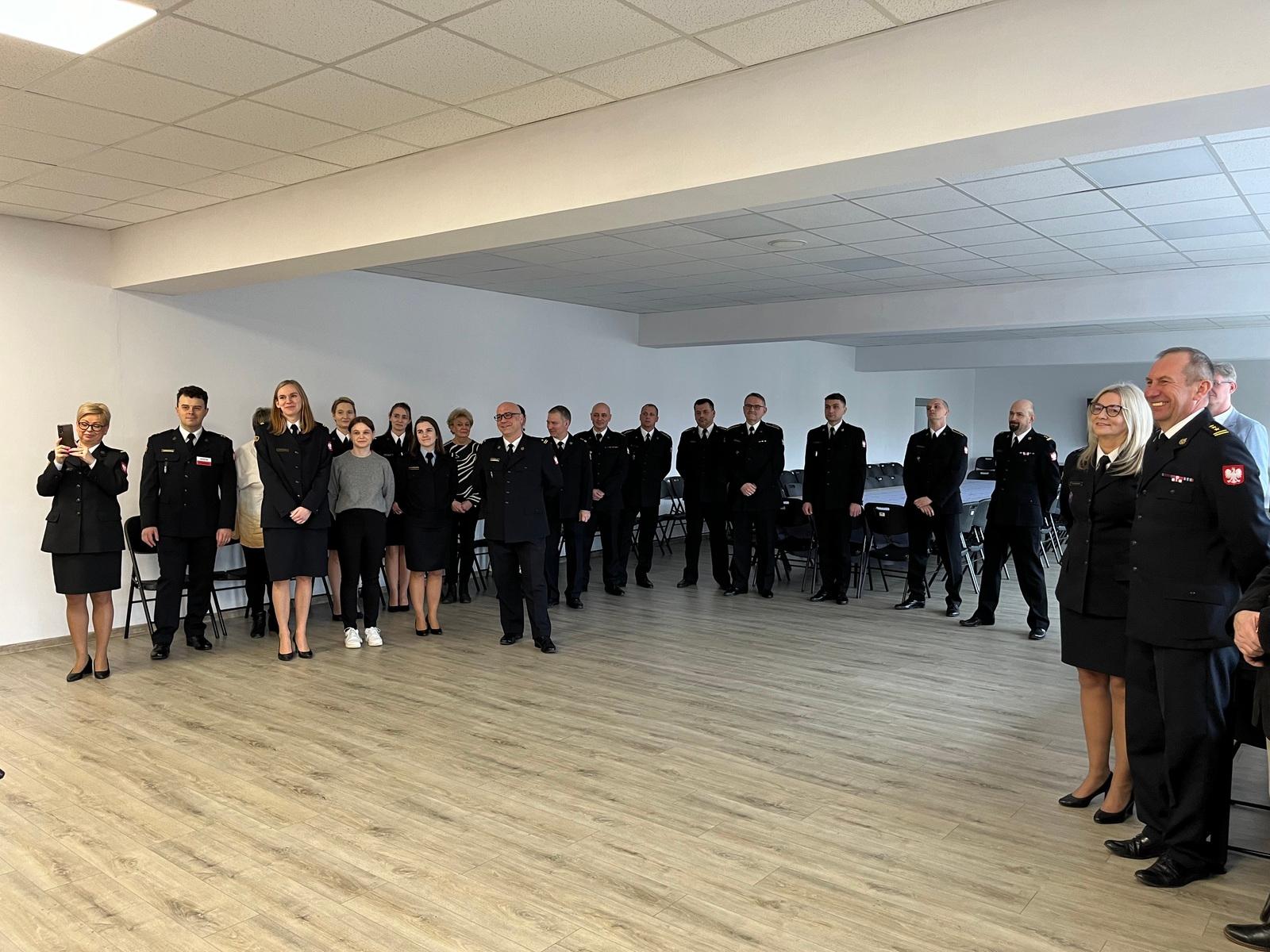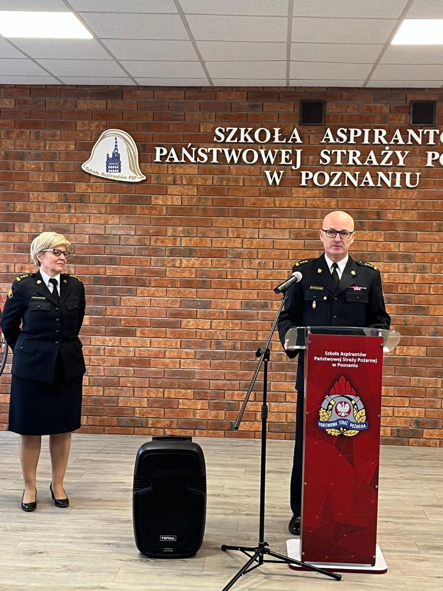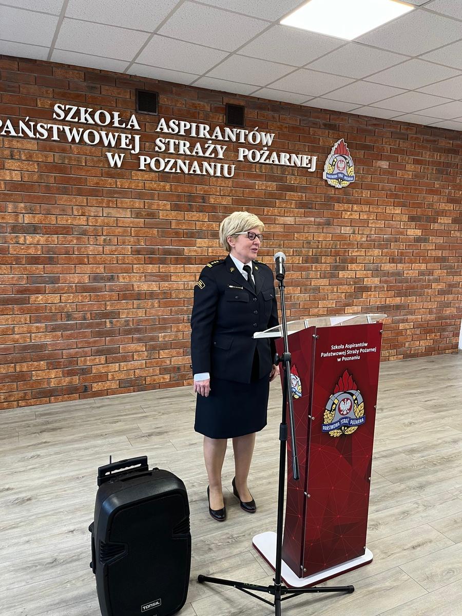 W dniu 14.02.2024 roku w SA PSP w Poznaniu odbyło się uroczyste pożegnanie ze służbą wieloletniej funkcjonariuszki Szkoły, Pani st. bryg. Anny Kałużnej-Rutkowskiej. Uroczystość osobiście rozpoczął p.o. Komendanta Szkoły, st. bryg. Andrzej Zajączkowski, który w obecności kadry, pracowników cywilnych oraz przedstawicieli szkolnego koła emerytów podziękował odchodzącej ze służby w następujących słowach, cyt.; "Przejście na zaopatrzenie emerytalne to zawsze dobry moment na dokonanie pewnych podsumowań. Jednak co miałbym tutaj podsumowywać skoro patrząc na Pani ścieżkę awansową można tylko powiedzieć, że rozpoczęła Pani służbę w sierpniu 1996r. jako stażysta w Wydziale Finansowym, a we wrześniu 1998r. mianowana została Pani na Stanowisko Głównego Księgowego i tutaj kończy się awansowanie... i tak było aż do dzisiaj, czyli przez ponad 25 lat na jednym stanowisku. To jednak niebywały wynik i nie wiem czy ktokolwiek z nas może poszczycić się takim osiągnięciem. Pomimo tego Pani praca i zaangażowanie znalazły odzwierciedlenie w awansach w stopniu, od pierwszego stopnia oficerskiego w listopadzie 1997r do stopnia starszego brygadiera w maju 2020r.".