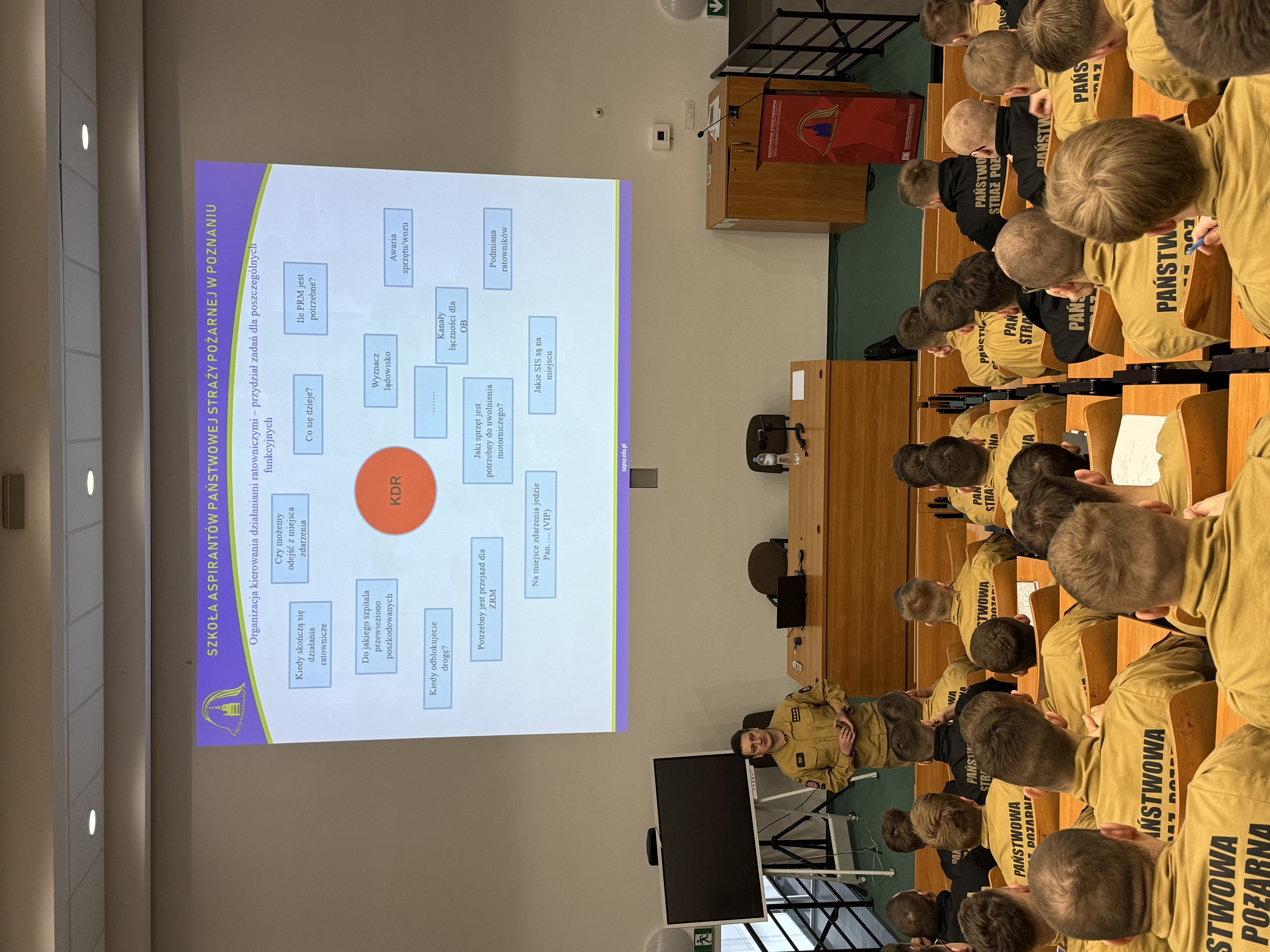 W wydarzeniu udział wzięli słuchacze kształcenia dziennego w zawodzie technik pożarnictwa (kompania II). Prelekcja stanowiła jedną z dodatkowych ofert szkoleniowych realizowanych w SA PSP w Poznaniu poszerzających możliwość budowy warsztatu specjalisty dziedzinowego jakim w praktyce ma być każdy dowódca pododdziału JOP.