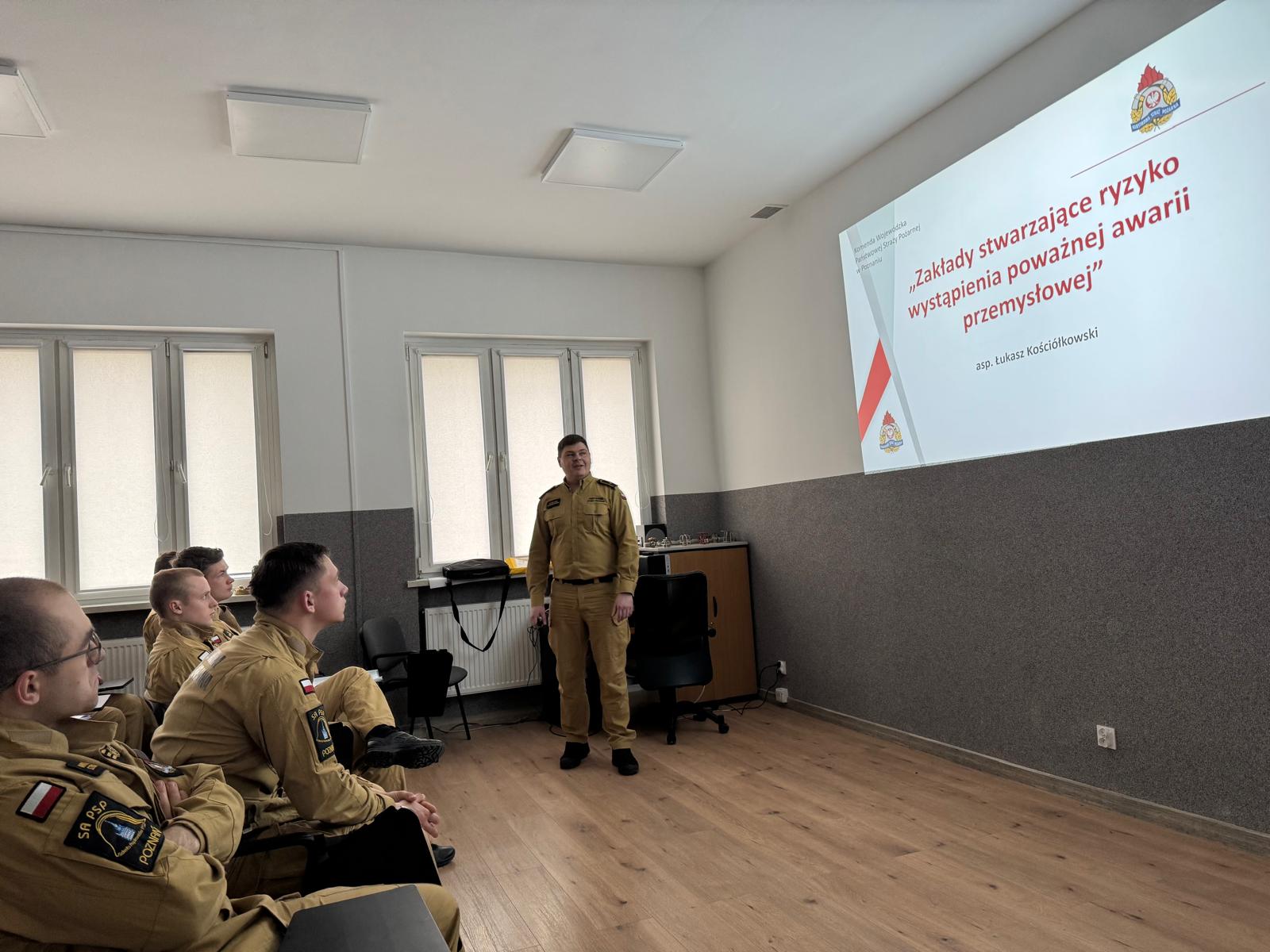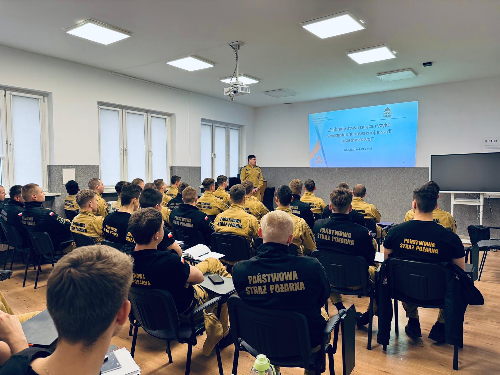 Spotkanie skierowane było do słuchaczy dziennego studium aspiranckiego i odbyło się w ramach działań edukacyjnych z zakresu "Bezpieczeństwa pożarowego budynków". Celem wizyty było przybliżenie uczniom tematyki związanej z funkcjonowaniem zakładów dużego ryzyka, rolą Państwowej Straży Pożarnej w procesie kontrolnym oraz znaczeniem właściwego planowania i dokumentowania procedur bezpieczeństwa.