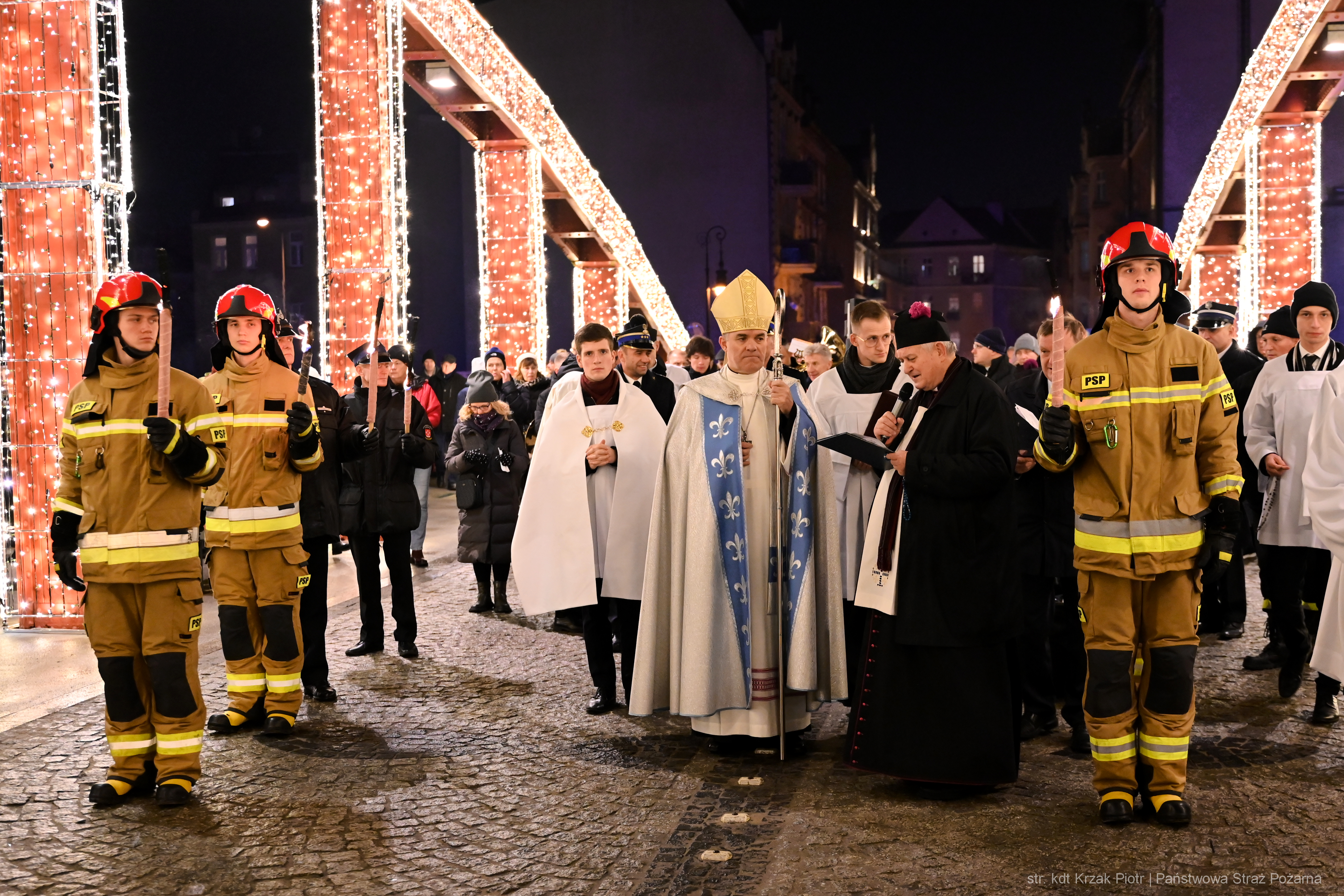 Orszakowi przewodniczył Arcybiskup Zbigniew Zieliński - Metropolita Archidiecezji Poznańskiej. Pochód przeszedł przez most Biskupa Jordana do miejsca docelowego – pod kolumnę z figurą Matki Boskiej Niepokalanej przy kościele Najświętszej Maryi Panny „in Summo” na Ostrowie Tumskim. W procesji oprócz wiernych z miasta Poznania wzięli udział także druhowie z Ochotniczych Straży Pożarnych, funkcjonariusze Państwowej Straży Pożarnej wraz z Kierownictwem oraz duchowni, w tym Kapelan wielkopolskich strażaków ks. Mateusz Drob. Celebracja uświetniona została asystą honorową kadetów z poznańskiej Szkoły Aspirantów, którzy nieśli zapalone pochodnie oraz latarnie. Zwieńczeniem „Procesji Światła” było złożenie bukietu kwiatów u stóp figury Matki Boskiej przez strażaków z JRG – 1 w Poznaniu przy użyciu drabiny mechanicznej, po czym w Archikatedrze odprawiona została Msza Święta.