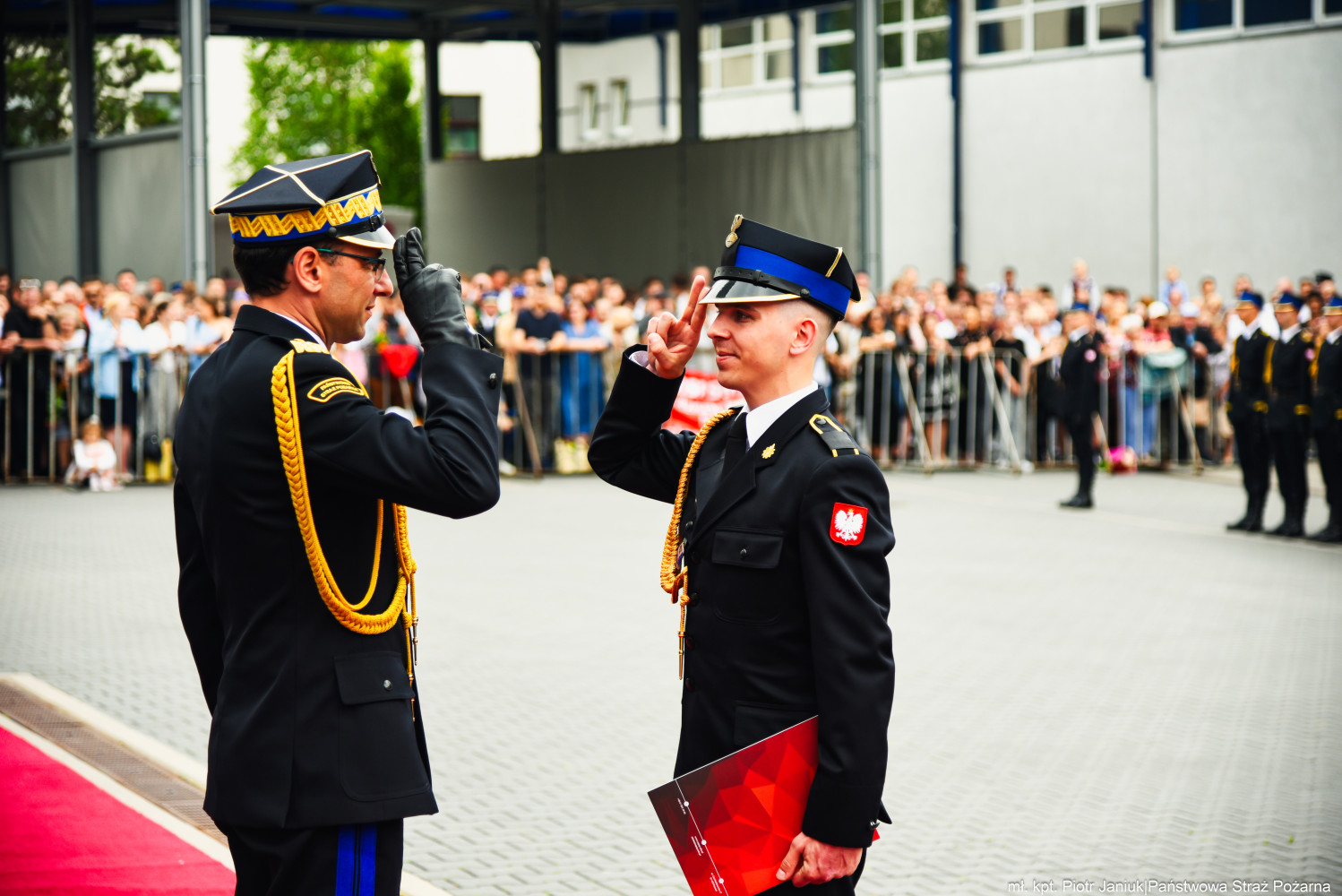 Najważniejszym i najbardziej wyczekiwanym przez słuchaczy momentem uroczystości była promocja na pierwszy stopień aspirancki, formalne zwieńczenie wielu miesięcy intensywnej nauki, ćwiczeń, szkoleń oraz służby. Promocja na stopień młodszego aspiranta PSP to znacznie więcej niż zmiana dystynkcji to symboliczny krok w przyszłość zawodową. Od tego dnia absolwenci stają się liderami zespołów ratowniczych, dowódcami zastępów i strażakami gotowymi do podejmowania najtrudniejszych wyzwań. Aktu promocji, w imieniu Ministra Spraw Wewnętrznych i Administracji, dokonał nadbryg. Wojciech Kruczek, Komendant Główny Państwowej Straży Pożarnej. Po zakończeniu aktu promocji, nowo mianowani aspiranci otrzymali błogosławieństwo od przedstawicieli duchowieństwa.