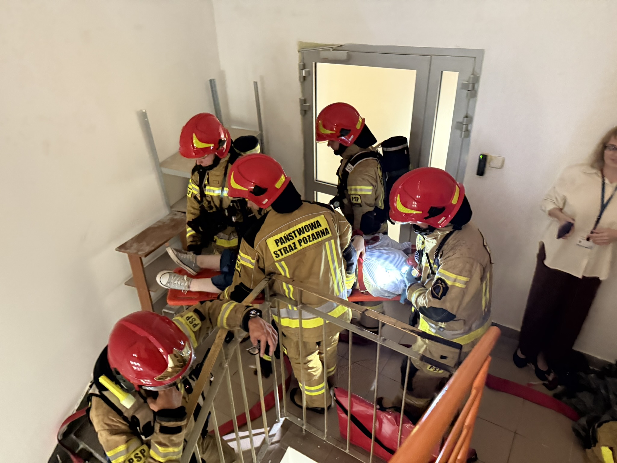 W trakcie rozpoznania została przeprowadzona symulowana akcja ratownicza połączona z ewakuacją części administracyjnej obiektu.