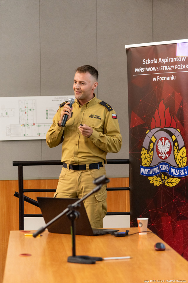 - kpt. mgr inż. Bartosz Gościński (KM PSP w Poznaniu), który omówił zagadnienia związane z rolą i zadaniami oficera bezpieczeństwa w ramach aktywności ratowniczej JOP.