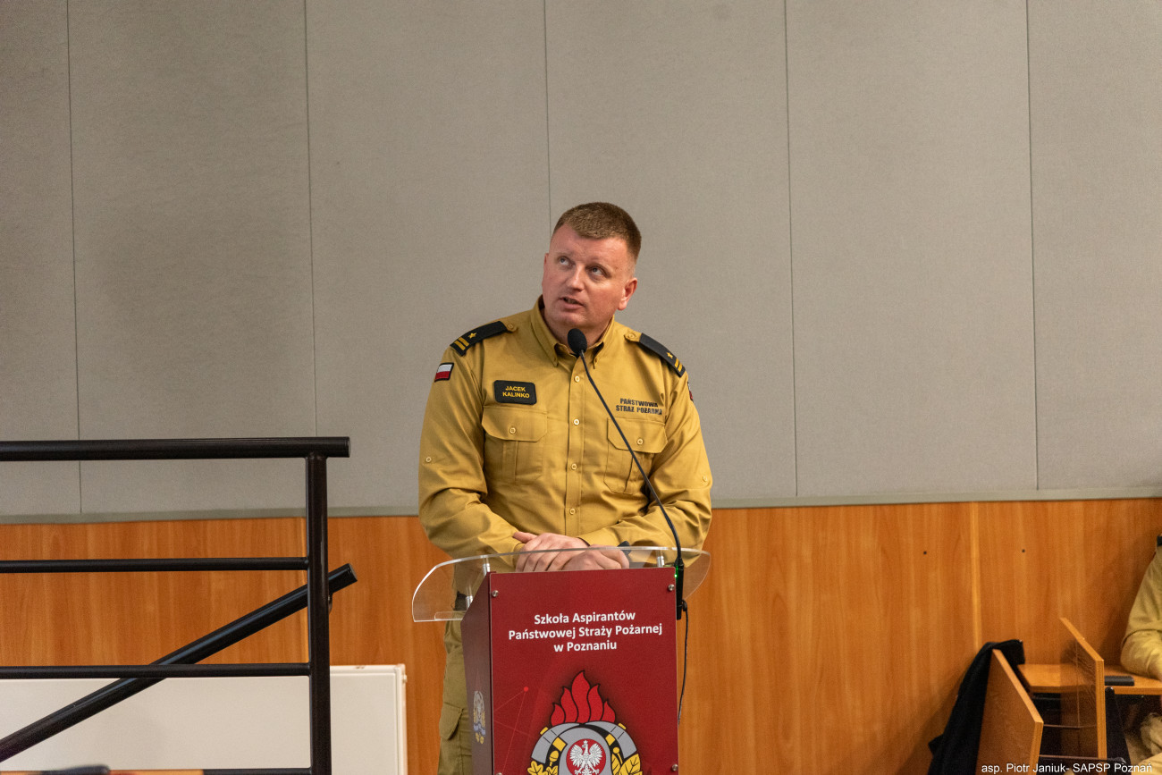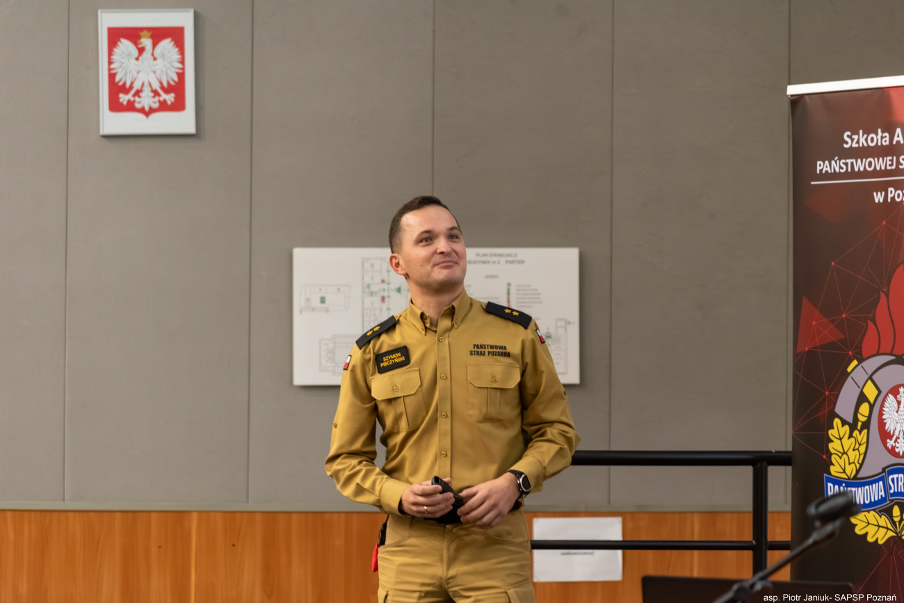 - mł. kpt. mgr Szymon Pieczyński (KW PSP w Poznaniu), który omówił kompetencje kierującego działaniem ratowniczym,