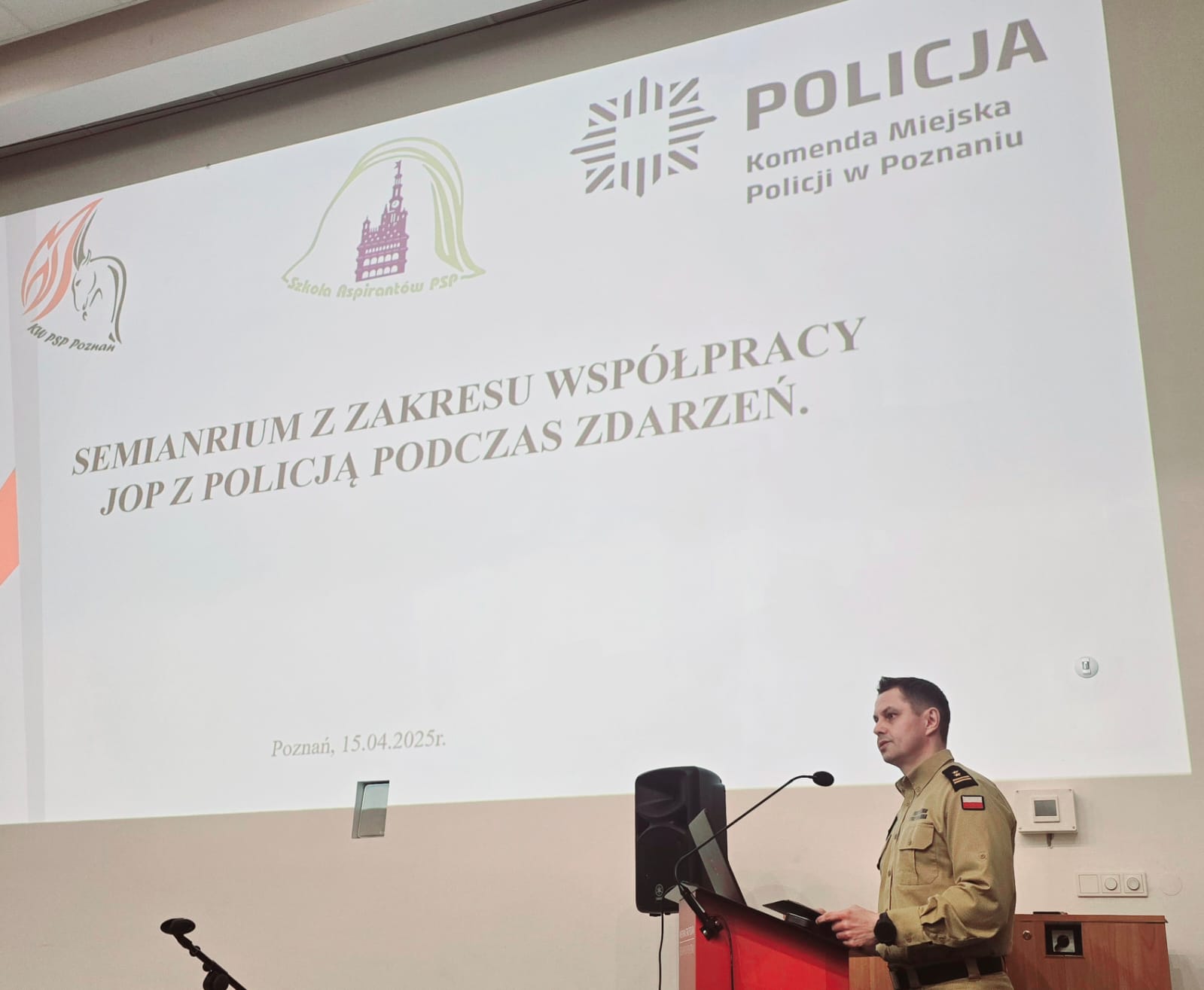 W dniu 15.04.2025r. w SA PSP w Poznaniu zorganizowano seminarium z zakresu współpracy JOP z Policją podczas zdarzeń.