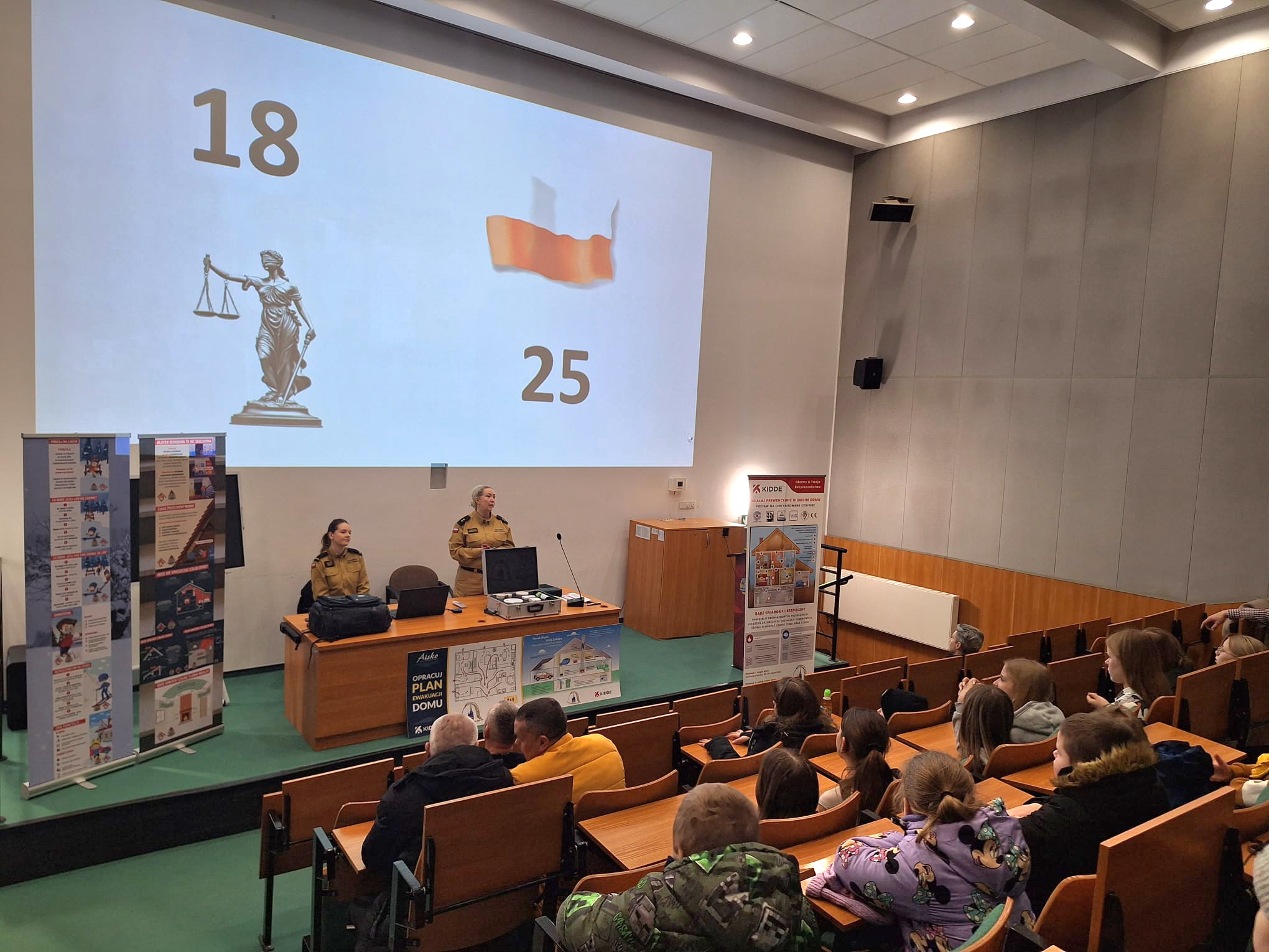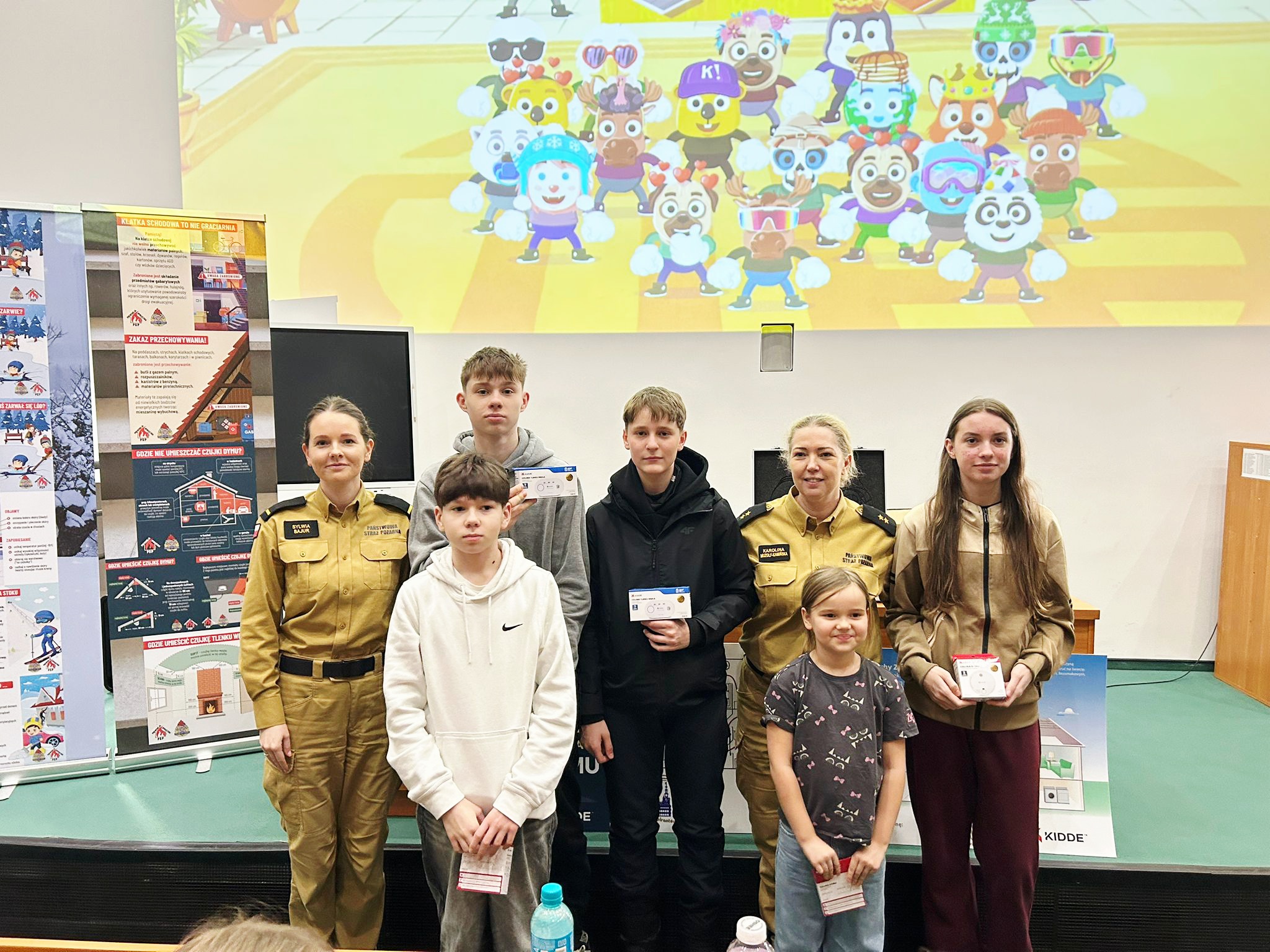 Na koniec każda grupa wzięła udział w quizie edukacyjnym, który miał na celu utrwalenie i podsumowanie zdobytej wiedzy. Grywalizacja była strzałem w 10! Dzieci, które najlepiej odpowiedziały na pytania stanęły na podium i otrzymały w nagrodę - czujki dymu i tlenku węgla w ramach ogólnopolskiej akcji „Czadowa straż”.