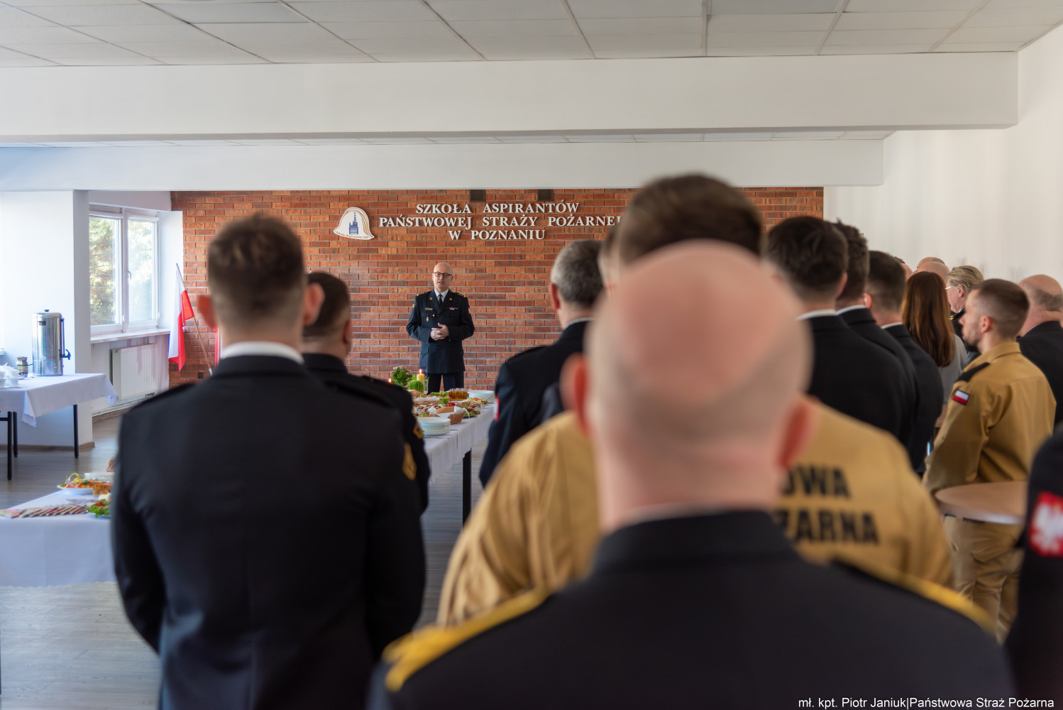 W dniu 27 marca 2026 r. w Szkole Aspirantów Państwowej Straży Pożarnej w Poznaniu odbyło się uroczyste spotkanie z okazji zbliżających się Świąt Wielkanocnych. W wydarzeniu uczestniczyli: Komendant Szkoły st. bryg. Andrzej Zajączkowski, Zastępca Komendanta Szkoły bryg. Przemysław Berus, funkcjonariusze, pracownicy cywilni szkoły oraz zaproszeni goście.