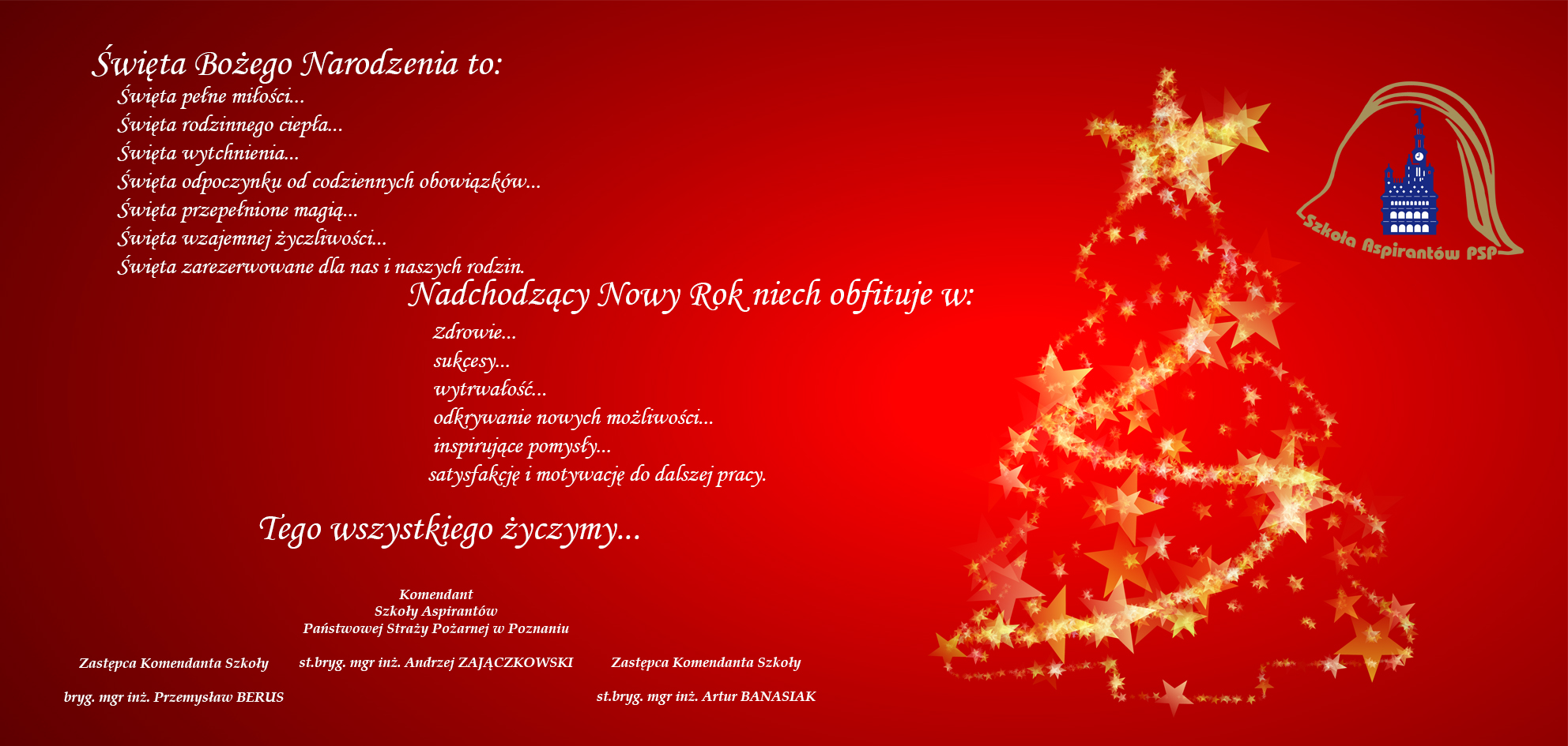 Świąteczne życzenia kierownictwa Szkoły Aspirantów PSP w Poznaniu 23.12.2025 Zdjęcia (1) Pokaż zdjęcie 1 z galerii.