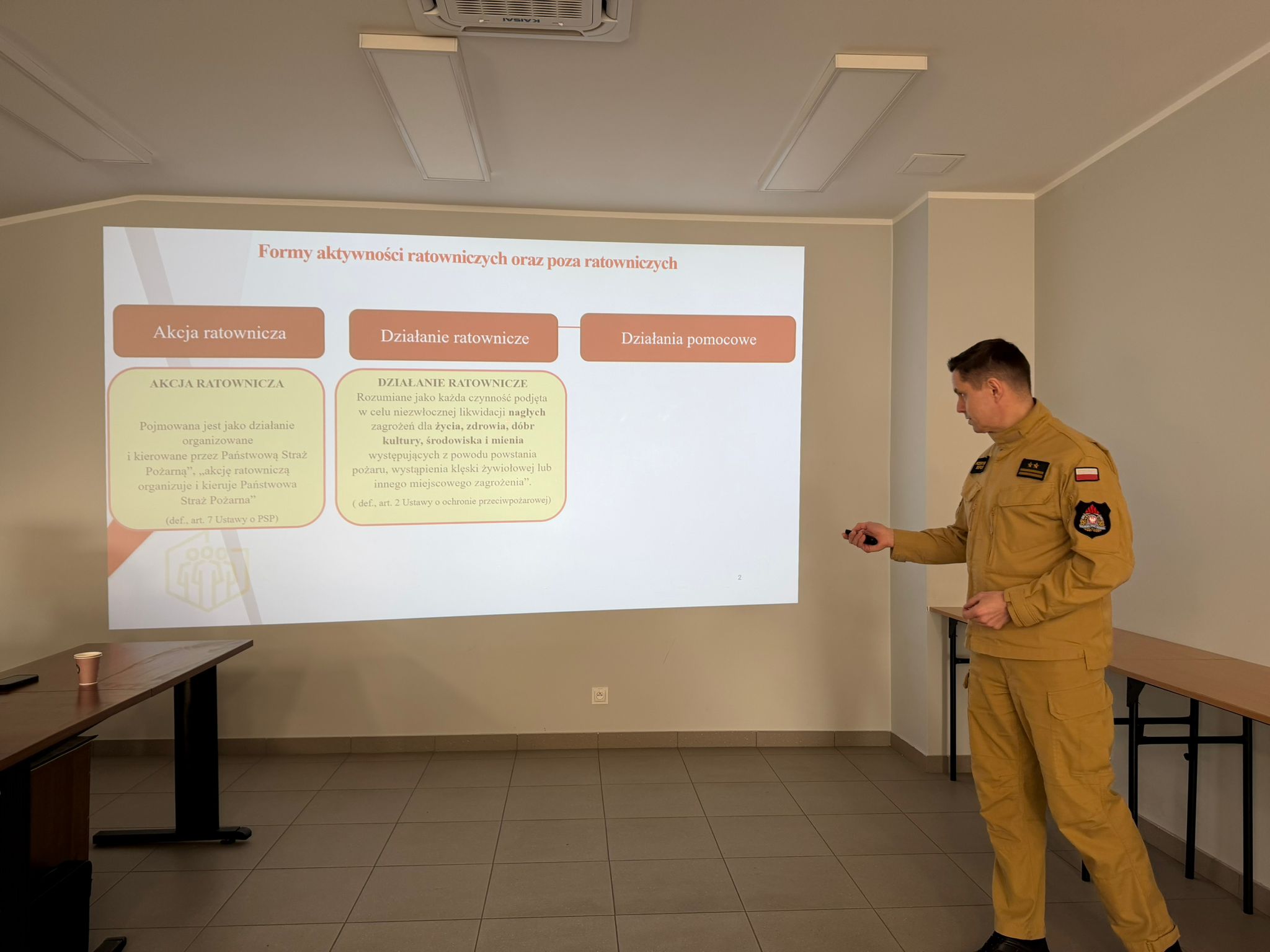 Zajęcia miały charakter zarówno teoretyczny, jak i praktyczny. W pierwszym bloku omówiono kluczowe zagadnienia formalnoprawne związane z kierowaniem działaniem ratowniczym, organizacją stref działań ratowniczych oraz właściwym definiowaniem zakresu władztwa sprawowanego przez kierującego działaniem ratowniczym (KDR). Temat przedstawił bryg. Przemysław Berus.