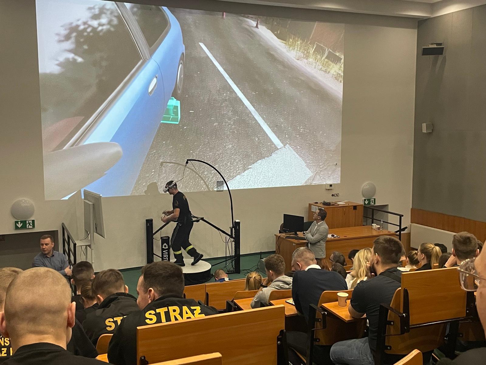 W dniu 05 lutego br., słuchacze kształcenia dziennego w zawodzie technik pożarnictwa SA PSP w Poznaniu uczestniczyli w zajęciach z zakresu innowacyjnych metod organizacji i prowadzenia szkoleń dla strażaków. Zajęcia ukierunkowane były na doskonalenie wykorzystania wirtualnej rzeczywistości w poprawie efektywności kształcenia umiejętności praktycznych słuchaczy. W ramach zapoznawania się z możliwościami opisywanej formy kształcenia słuchacze mieli możliwość zweryfikowania kilku scenariuszy zdarzeń ratowniczych w tym: