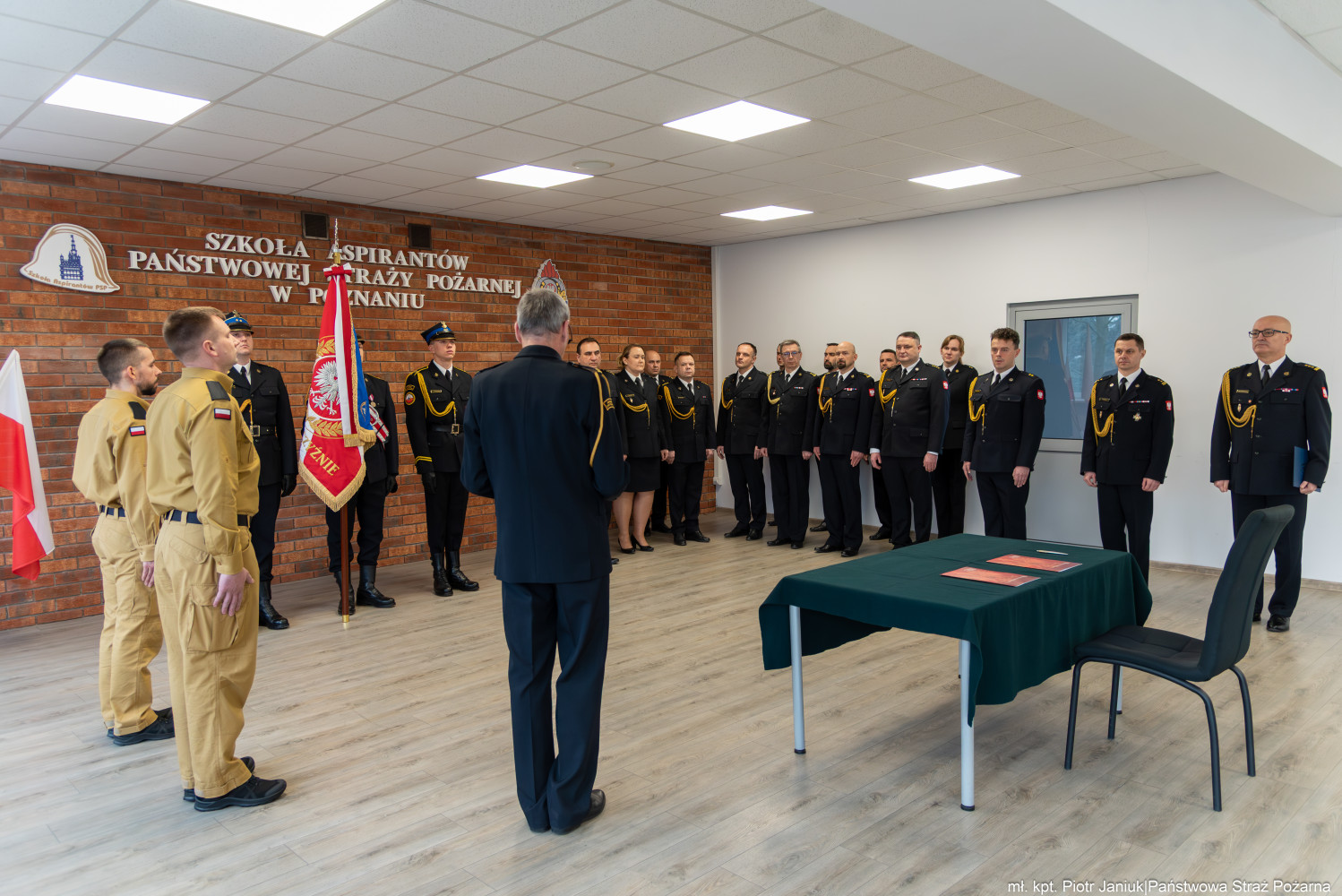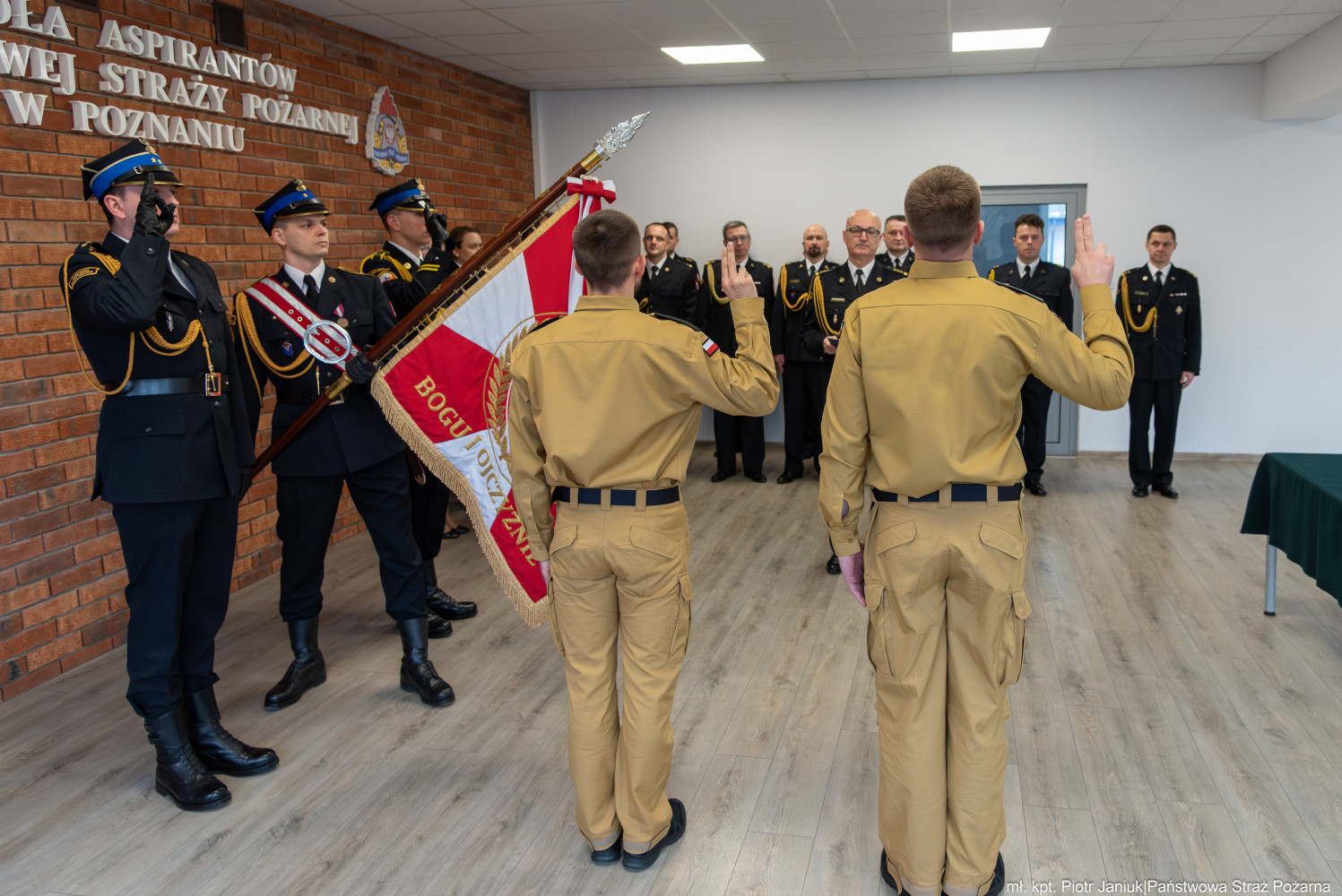 Komendant Szkoły Aspirantów PSP w Poznaniu st. bryg. Andrzej Zajączkowski, składając gratulacje nowo przyjętym funkcjonariuszom i witając ich w szeregach Państwowej Straży Pożarnej podkreślił, że ślubowanie, to uroczysty moment w życiu zawodowym każdego strażaka. Jest ono symbolem pełnego włączenia do cieszącej się społecznym prestiżem służby oraz wzmacnia świadomość własnej tożsamości zawodowej.