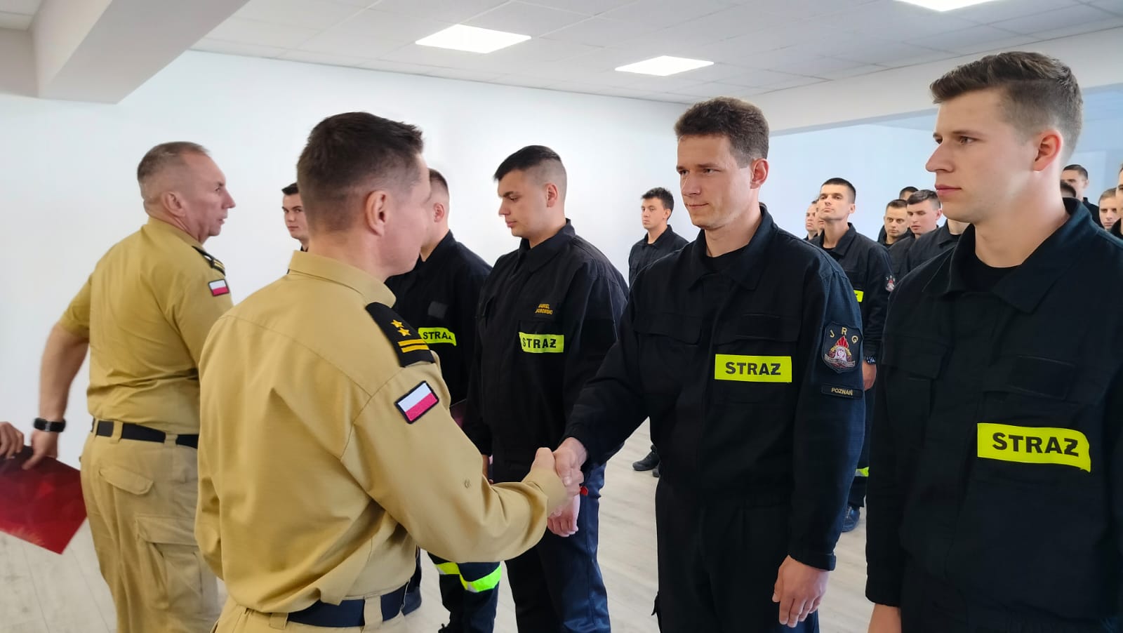 W dniu 20 września 2024r. w Szkole Aspirantów Państwowej Straży Pożarnej w Poznaniu odbyło się uroczyste zakończenie "Szkolenia podstawowego w zawodzie strażak", KS-20. Uczestnikami Szkolenia byli funkcjonariusze oraz pracownicy Jednostek Ochrony Przeciwpożarowej, którzy począwszy od 17 czerwca br. uczestniczyli w zajęciach kierunkowych zgodnie z planem zajęć Szkolenia. Uczestnicy Szkolenia w ramach zajęć nabyli podstawową wiedzę z zakresu ochrony przeciwpożarowej oraz z zakresu poszczególnych rodzajów ratownictw realizowanych przez podmioty ksrg. W dniach 18-19 września 2024r. odbyły się egzaminy końcowe, na które składały się sprawdzian wiedzy teoretycznej oraz praktyczna weryfikacja nabytych umiejętności ratowniczych. Wszyscy przystępujący do egzaminów (36 osób) uzyskali oceny pozytywne nabywając tym samym kwalifikacje podstawowe w zawodzie strażak. W uroczystym zakończeniu Szkolenia uczestniczyli Zastępcy Komendanta Szkoły, bryg. Przemysław Berus oraz st. bryg. Artur Banasiak.