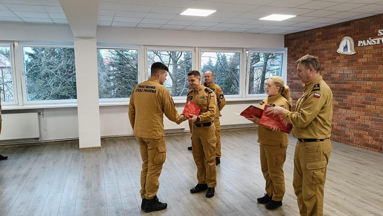 Zaświadczenia potwierdzające ukończenie warsztatów wręczył Zastępca Komendanta Szkoły Aspirantów PSP w Poznaniu bryg. Przemysław Berus w obecności przedstawicieli Wydziału Kształcenia.