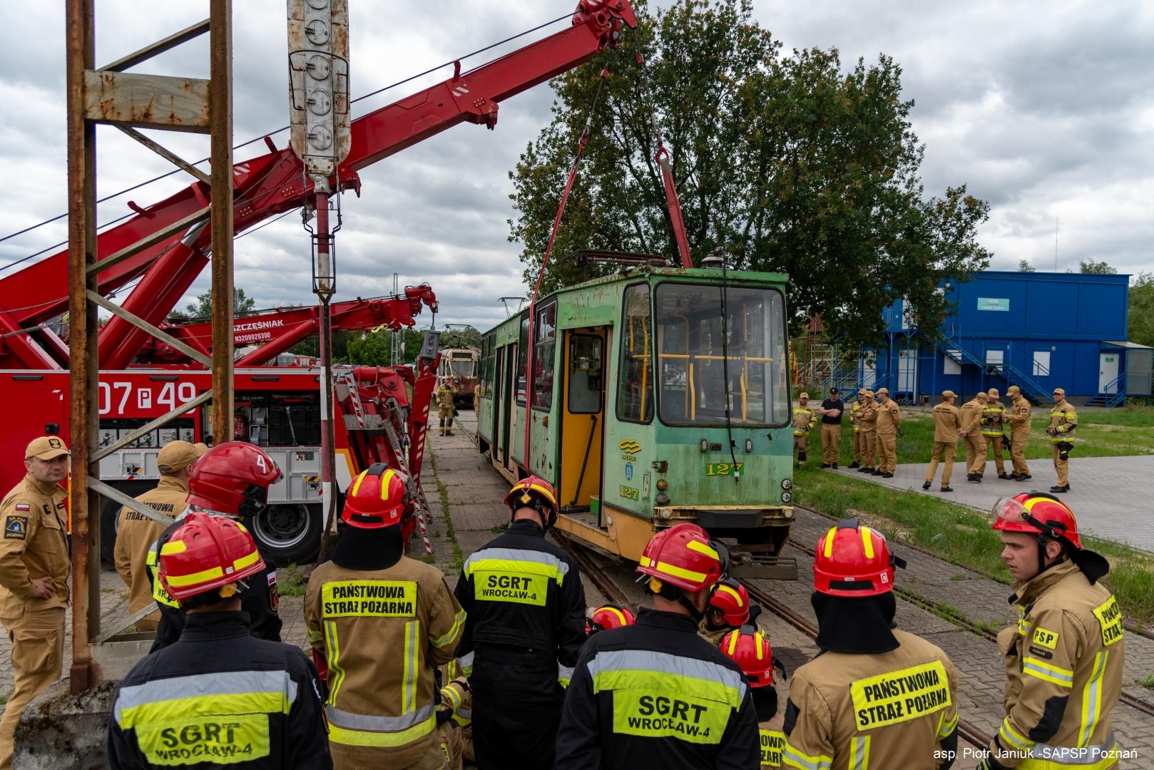 W dniu 11 czerwca 2024r. na terenie poligonu Szkoły Aspirantów PSP w Poznaniu odbyły się warsztaty ratownicze, które zorganizowano i przeprowadzono w oparciu o zatwierdzony przez Komendanta Głównego Państwowej Straży Pożarnej "Program szkolenia specjalistycznego z zakresu przemieszczania gabarytów przy użyciu pojazdów Specjalistycznych Grup Ratownictwa Technicznego". W warsztatach udział brały SiS z KW PSP we Wrocławiu, KM PSP we Wrocławiu, KP PSP w Bolesławcu, JRG7 w Poznaniu oraz z SA PSP w Poznaniu. Celem warsztatów było doskonalenie technik i obsługi ciężkiego sprzętu ratownictwa technicznego oraz współpracy pomiędzy ratownikami wchodzącymi w skład Specjalistycznych Grup ratownictwa Technicznego z różnych województw.
