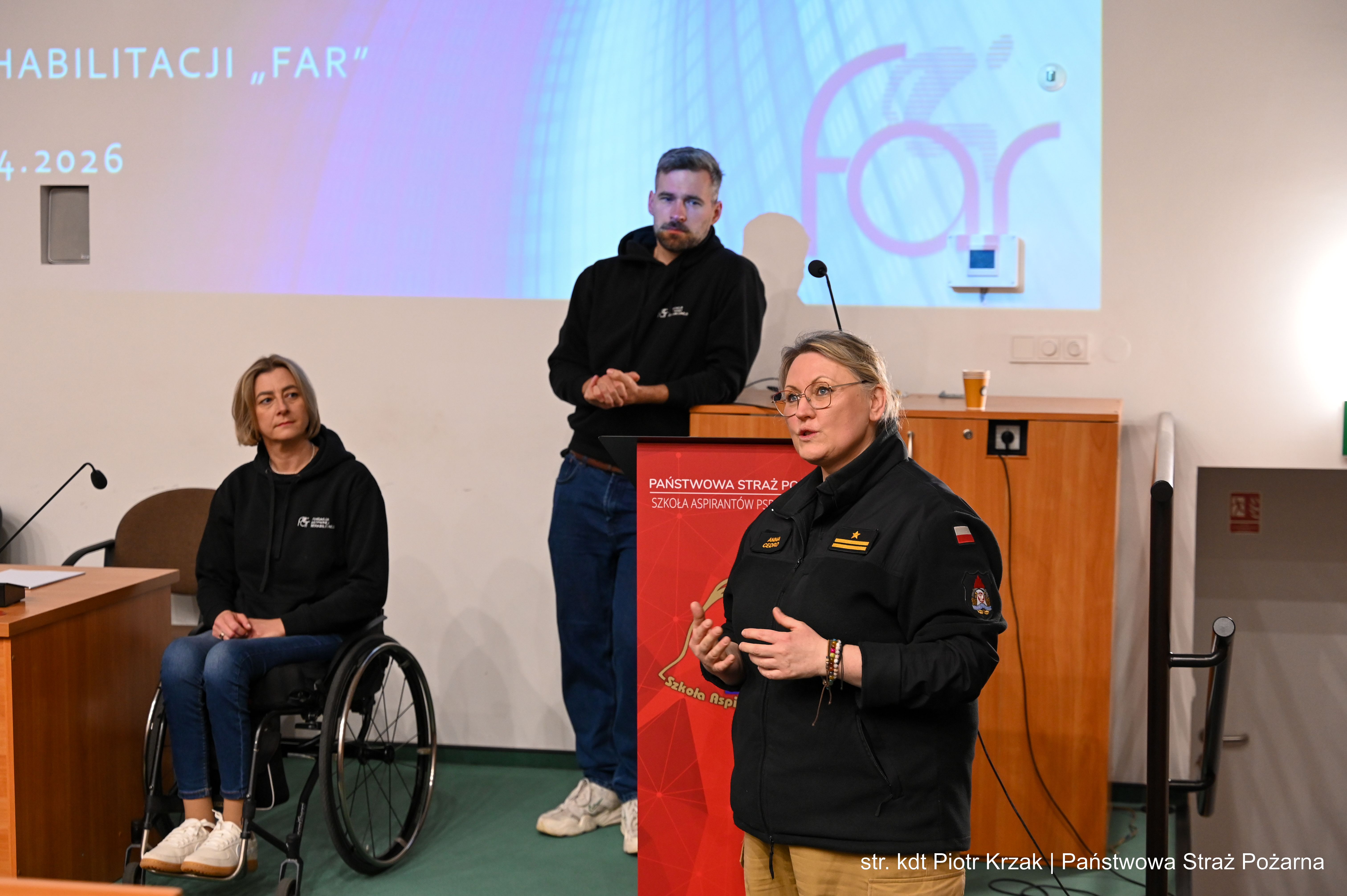 To było niezwykle cenne spotkanie, które nie tylko rozwija kompetencje zawodowe przyszłych strażaków, ale także buduje empatię i wrażliwość społeczną. Dziękujemy za zaangażowanie i inspirujące zajęcia Fundacji Aktywnej Rehabilitacji, a szczególnie Agnieszce, Karolinie i Emilowi.