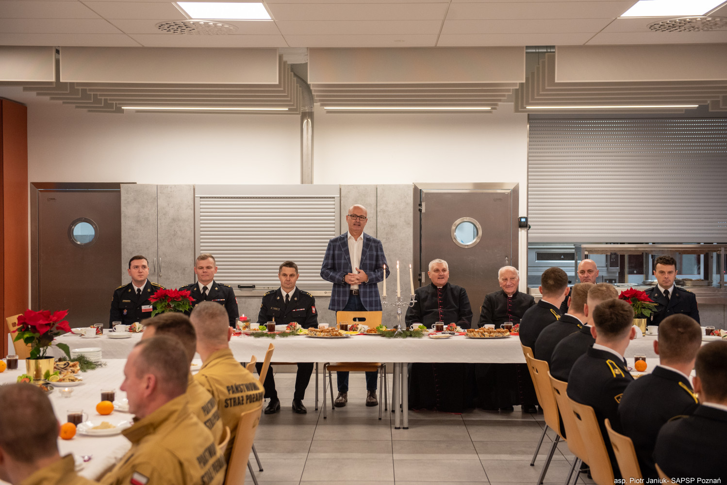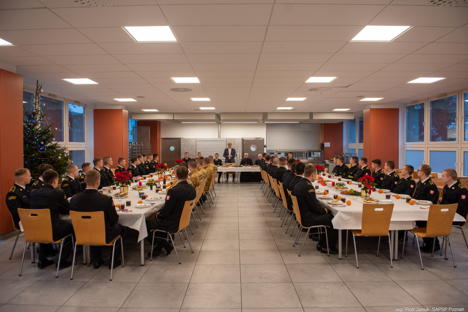 24 grudnia 2024 roku w Szkole Aspirantów Państwowej Straży Pożarnej w Poznaniu, została zorganizowana wieczerza wigilijna, w której uczestniczył Komendant Szkoły st. bryg. mgr inż. Andrzej Zajączkowski wraz z Zastępcą Komendanta Szkoły bryg. mgr inż. Przemysławem Berusem.