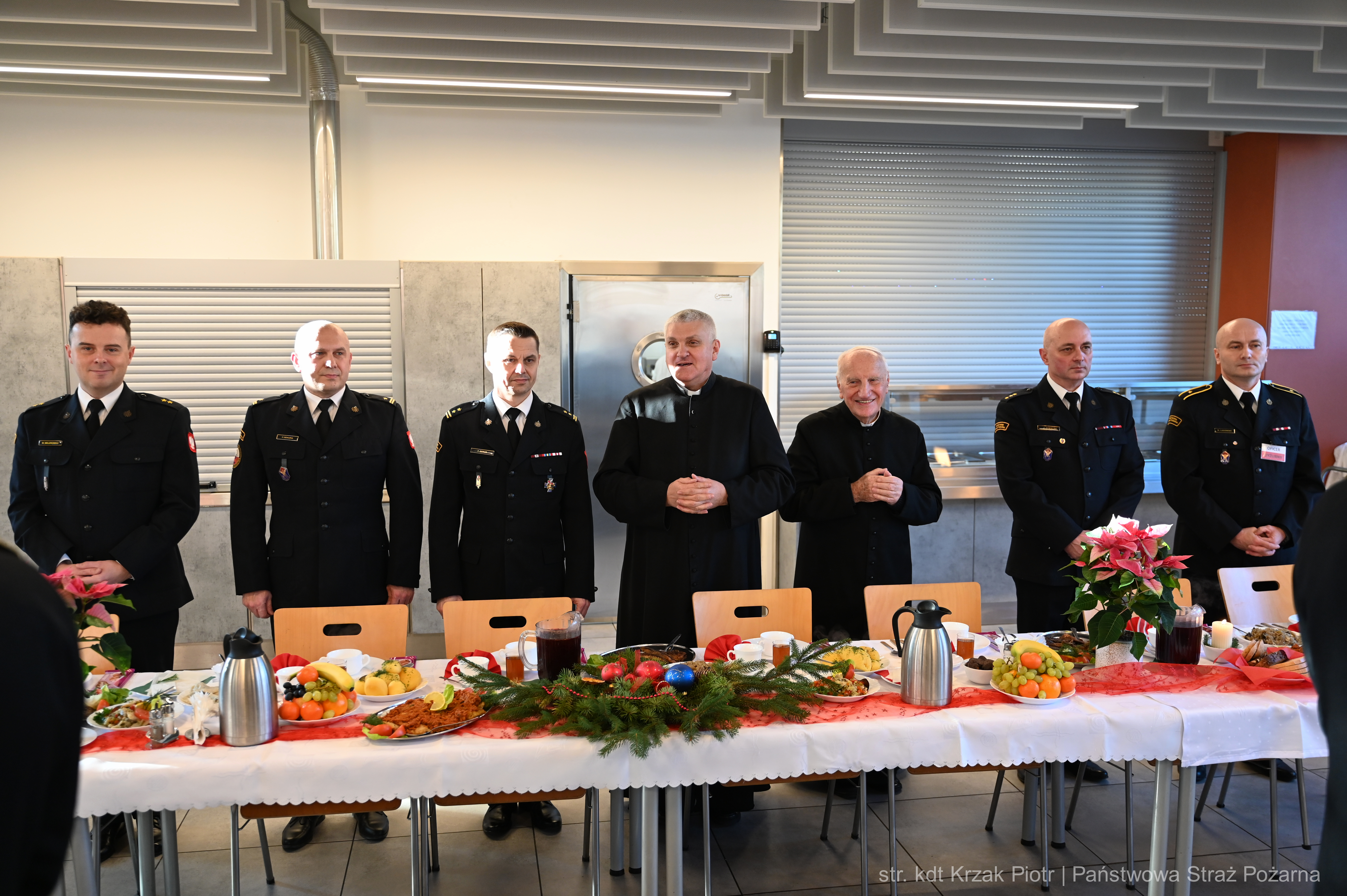 Okres Świąt Bożego Narodzenia to czas wytchnienia i odpoczynku, jednak nie wszyscy mają w tym okresie wolne od pracy i zadań służbowych. Wieczerza ta został zorganizowana właśnie dla tych osób, które pełnią w okresie tym służbę w Szkolnej Jednostce Ratowniczo – Gaśniczej, w strukturach Centralnego Odwodu Operacyjnego Komendanta Głównego PSP oraz służby wewnętrzne. Błogosławieństwa udzielił ksiądz Marek Matyba, proboszcz parafii pw. Świętej Trójcy na poznańskim Dębcu wraz z księdzem prałatem Stanisławem Wojtaszkiem Kapelanem naszej Szkoły. Atmosferę spotkania umilał śpiew kolęd przy akompaniamencie zespołu muzycznego złożonego z kadetów Szkoły.