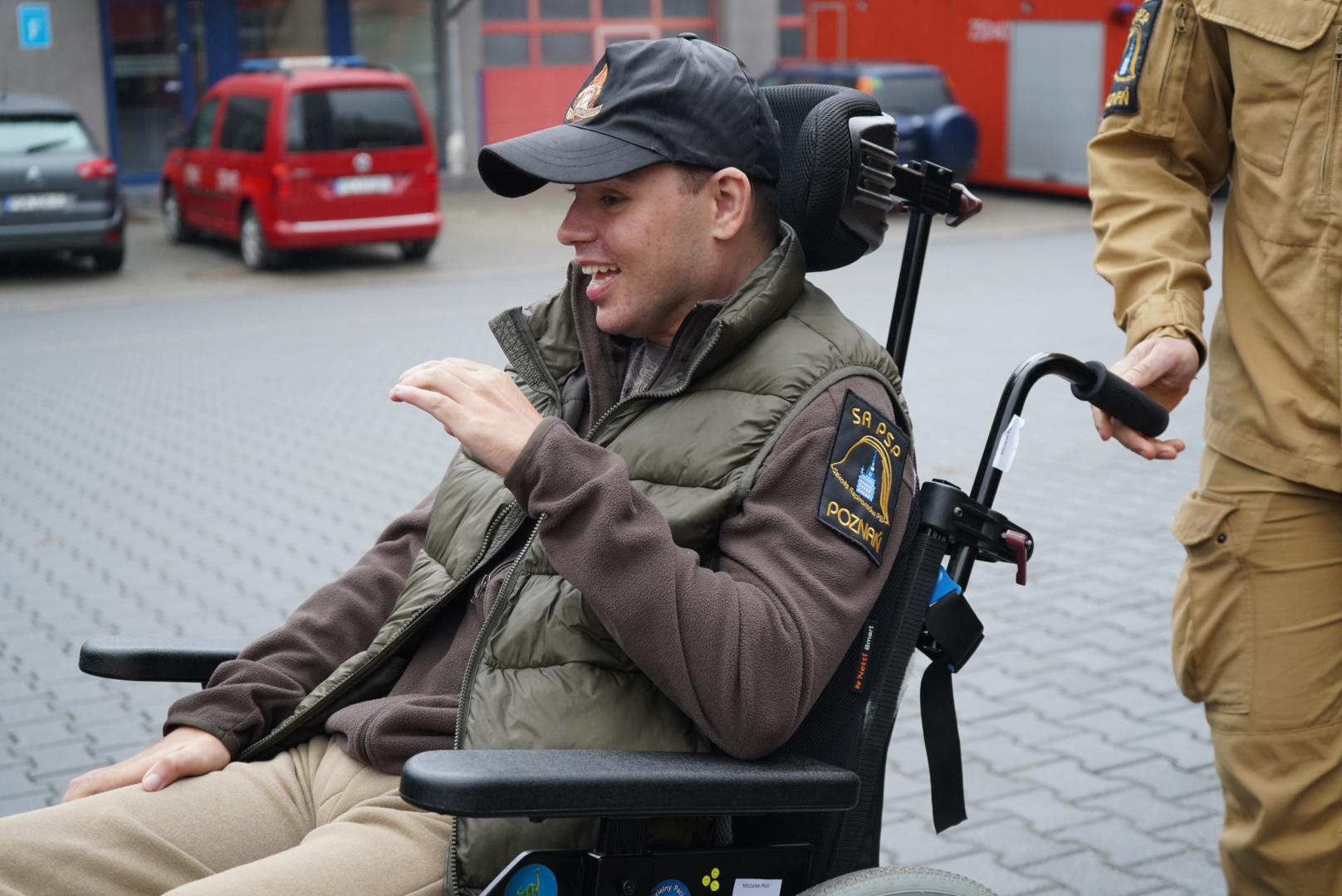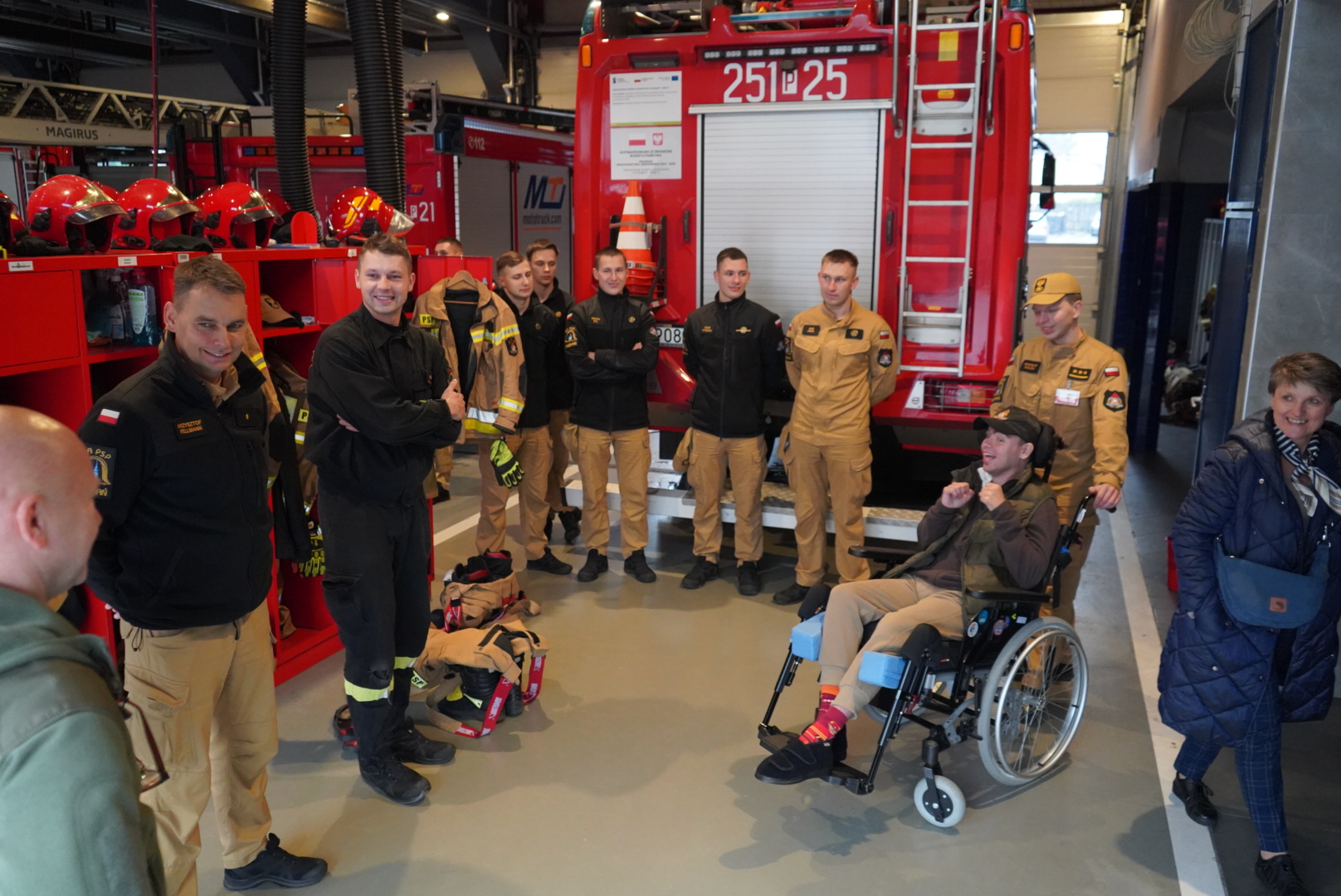 Po wielu miesiącach walki o zdrowie i trudnej rehabilitacji Piotr odwiedził Szkolną Jednostkę Ratowniczo-Gaśniczą, spotkał się z kolegami ze służby i z sentymentem obejrzał swoje tablo z zakończenia Szkoły. To była chwila pełna wspomnień i emocji - powrót do miejsca, w którym wszystko się zaczęło.