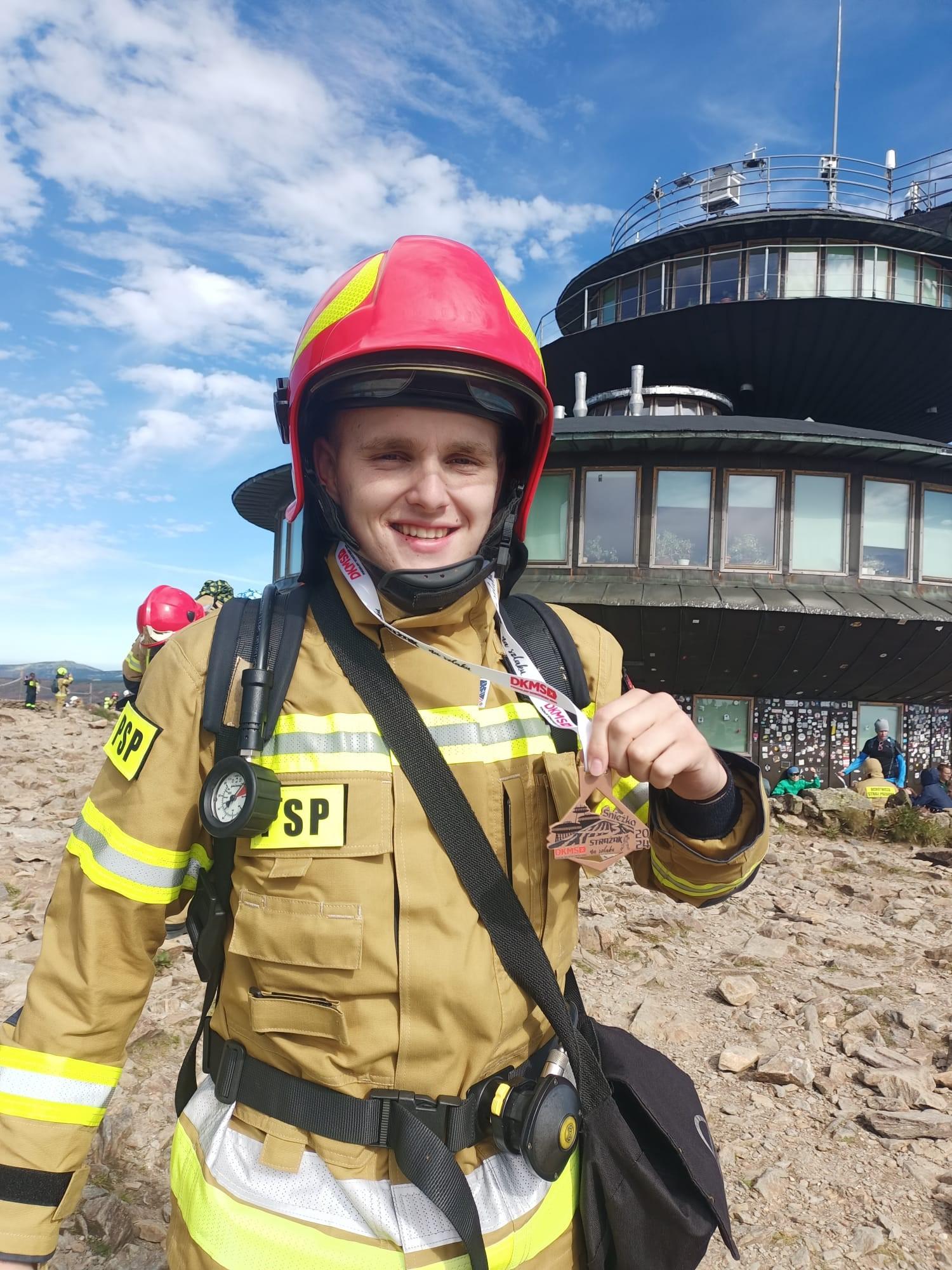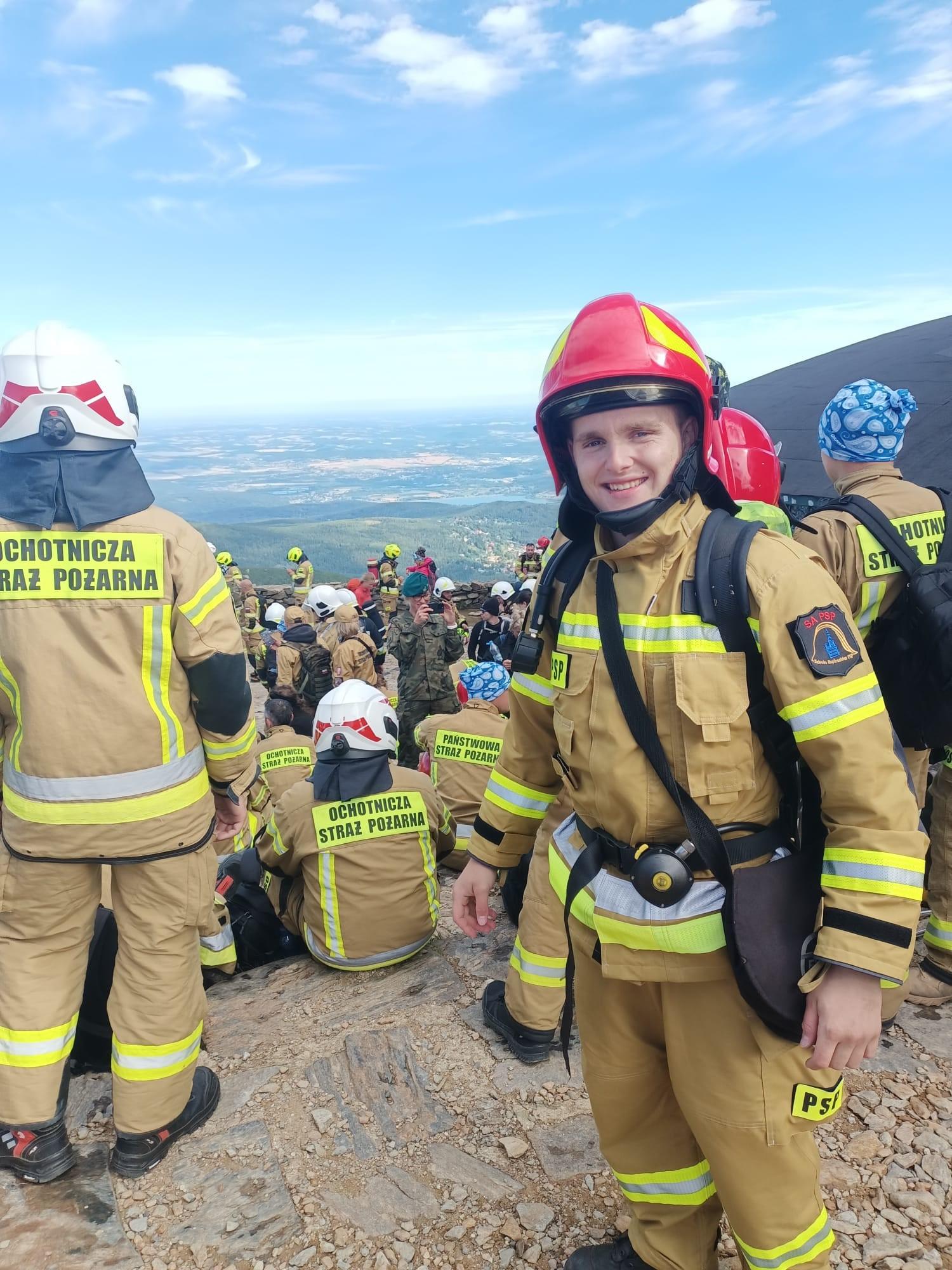 Niespełna 1000 strażaków z terenu całej Polski wzięło udział w miniony weekend w wyprawie na Śnieżkę. Wszystko po to, by wspomóc chorych na nowotwory krwi. W tej grupie znalazł się również strażak – kadet ze Szkoły Aspirantów Państwowej Straży Pożarnej w Poznaniu. Kadet Olgierd Hodel wziął udział w wyprawie na karkonoski szczyt - Śnieżkę. Funkcjonariusz z naszej Szkoły, wspólnie z innymi uczestnikami wydarzenia, wystartował w sobotę 6 lipca