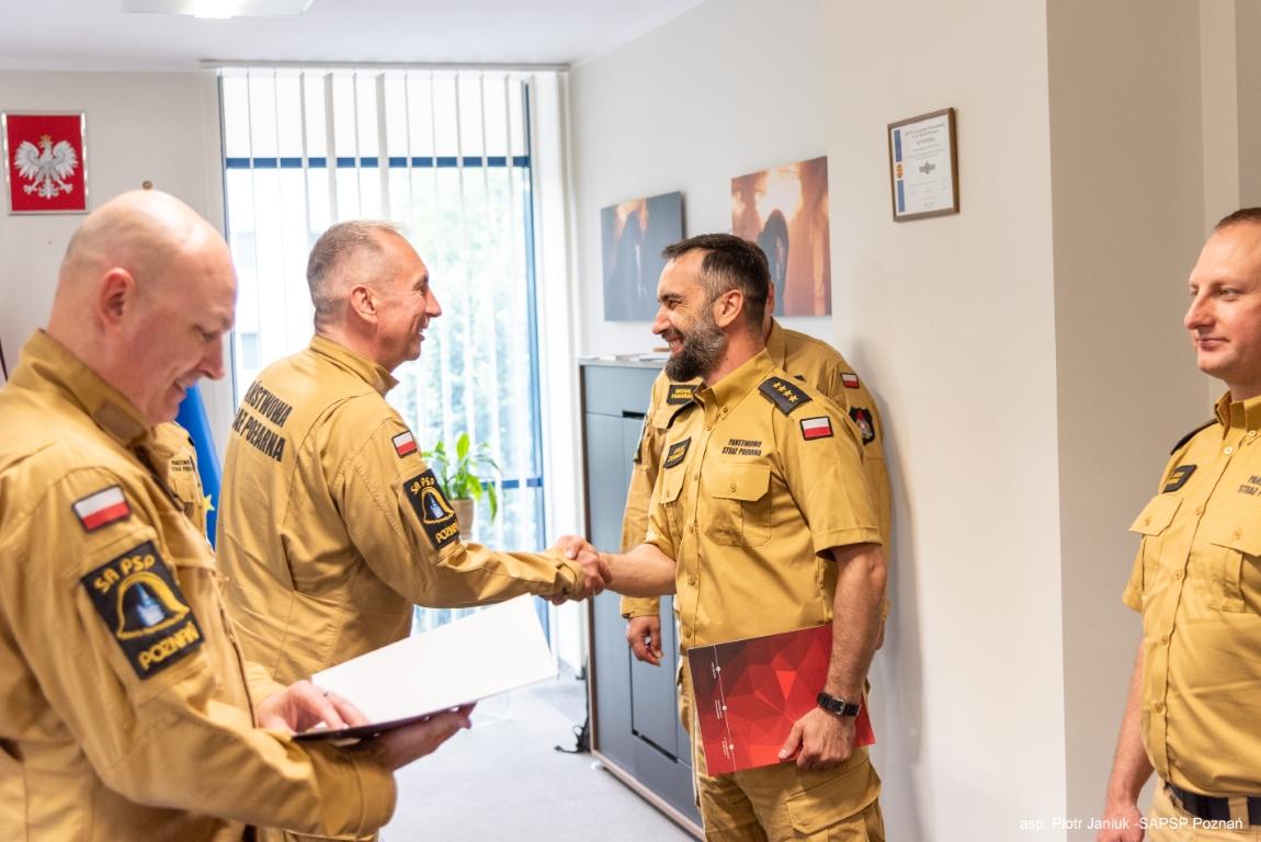 Wyróżnienia dla funkcjonariuszy Szkoły Aspirantów Państwowej Straży Pożarnej w Poznaniu.