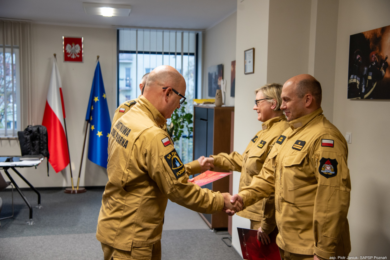 W dniu 7.11.2024 roku Komendant Szkoły Aspirantów Państwowej Straży Pożarnej w Poznaniu st. bryg. mgr inż. Andrzej Zajączkowski, w obecności zastępców bryg. Przemysława Berusa oraz st. bryg. Artura Banasiaka, w imieniu Komendanta Głównego Państwowej Straży Pożarnej wręczył funkcjonariuszom Szkoły wyróżnienia w postaci nagród pieniężnych. Wśród wyróżnionych funkcjonariuszy znaleźli się: