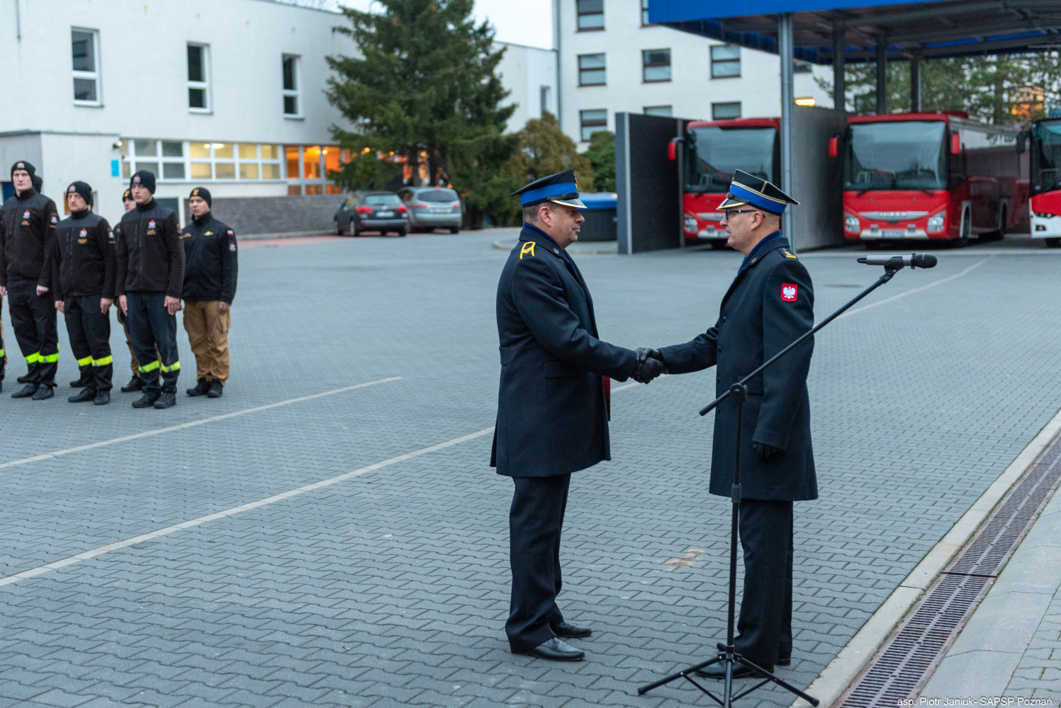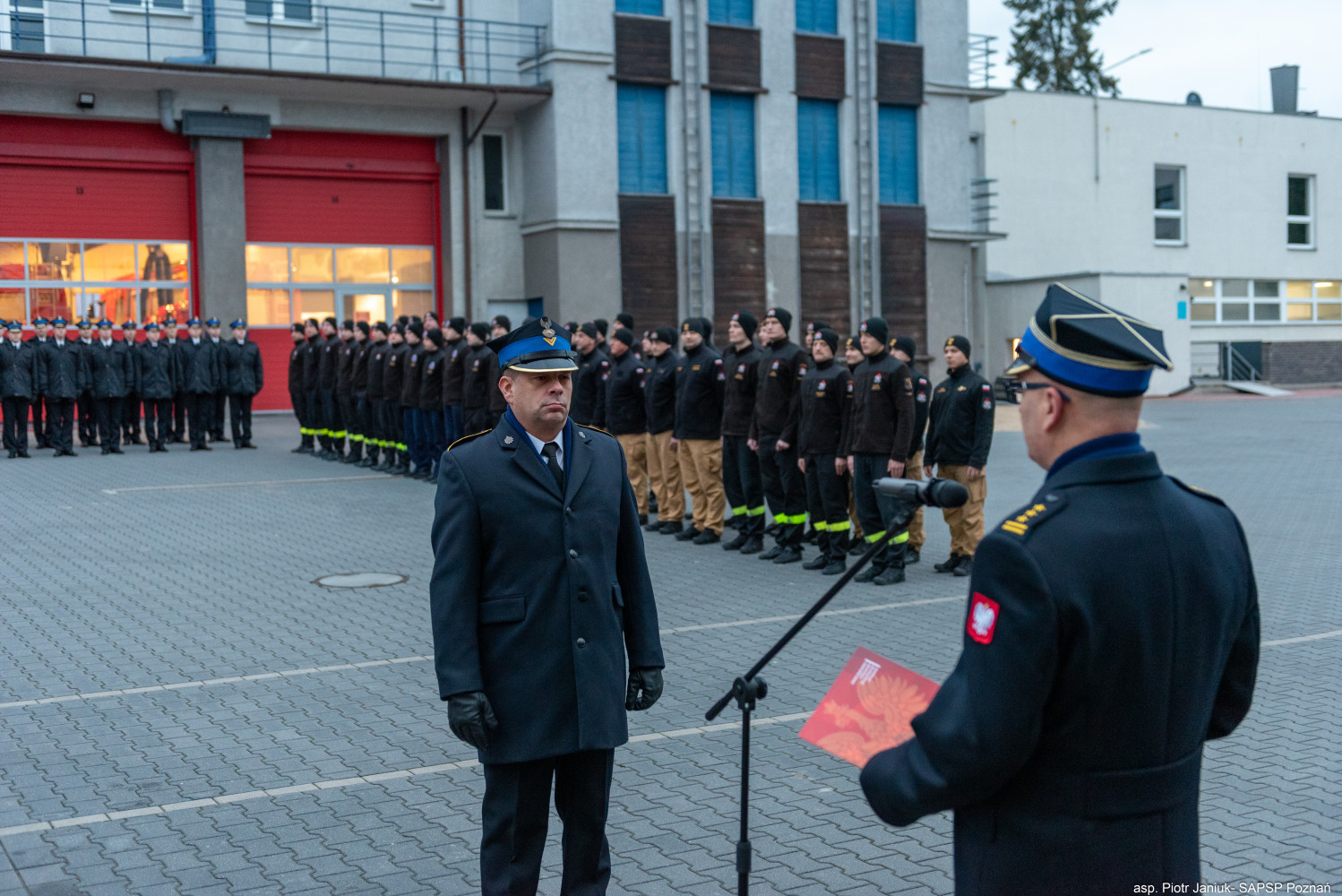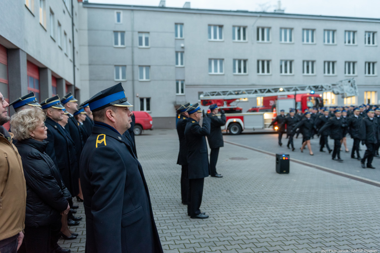 20 grudnia 2024 roku w Szkole Aspirantów Państwowej Straży Pożarnej w Poznaniu, w godzinach porannych odbył się apel, podczas którego nastąpiło pożegnanie st. ogn. Michała Marchewki. Był to ostatni dzień służby funkcjonariusza naszej Szkoły, który przechodzi na zaopatrzenie emerytalne. Komendant Szkoły st. bryg. mgr inż. Andrzej Zajączkowski, w imieniu swoim, swoich zastępców, kadry, a także słuchaczy Szkoły podziękował st. ogn. Michałowi Marchewce, za wszystkie lata służby na rzecz Szkoły Aspirantów Państwowej Straży Pożarnej w Poznaniu. Komendant wspomniał przede wszystkim o profesjonalizmie i dużym zaangażowaniu funkcjonariusza na rzecz rozwoju Szkoły. Nasz kolega odebrał życzenia przede wszystkim zdrowia i wszelkiej pomyślności na nowym etapie życia, które będzie zapewne szansą do dalszego rozwoju pasji oraz zainteresowań.