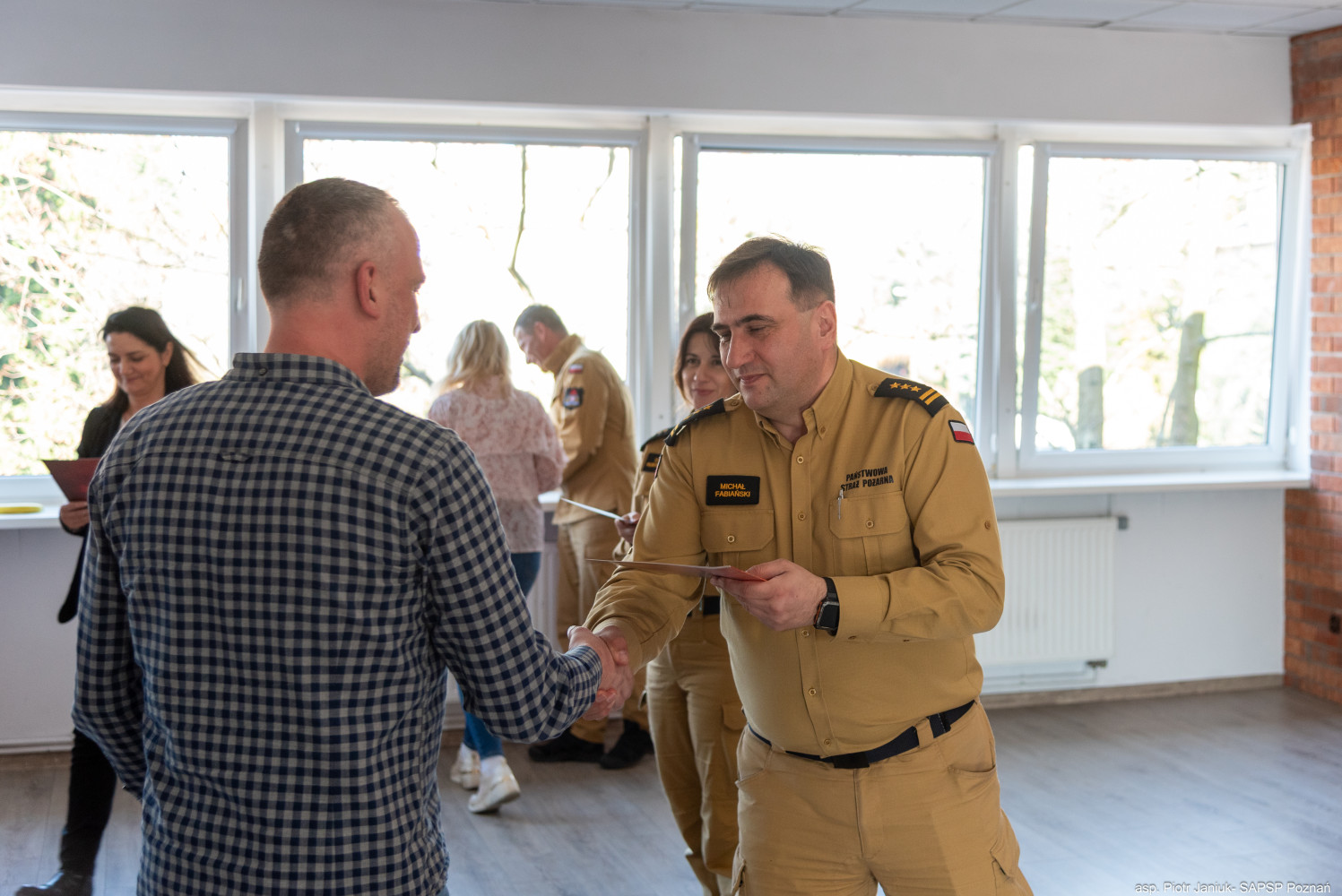 W szkoleniu, które odbywało się na terenie Szkoły jak również na poligonie szkolnym w Luboniu uczestniczyło 47 osób. Zaświadczenia potwierdzające ukończenie szkolenia wręczył Naczelnik Wydziału Kształcenia st. bryg. Michał Fabiański w obecności przedstawicieli Wydziału Kształcenia bryg. Arkadiusza Kawczyńskiego oraz st. kpt. Emilii Pałubickiej-Florczak.