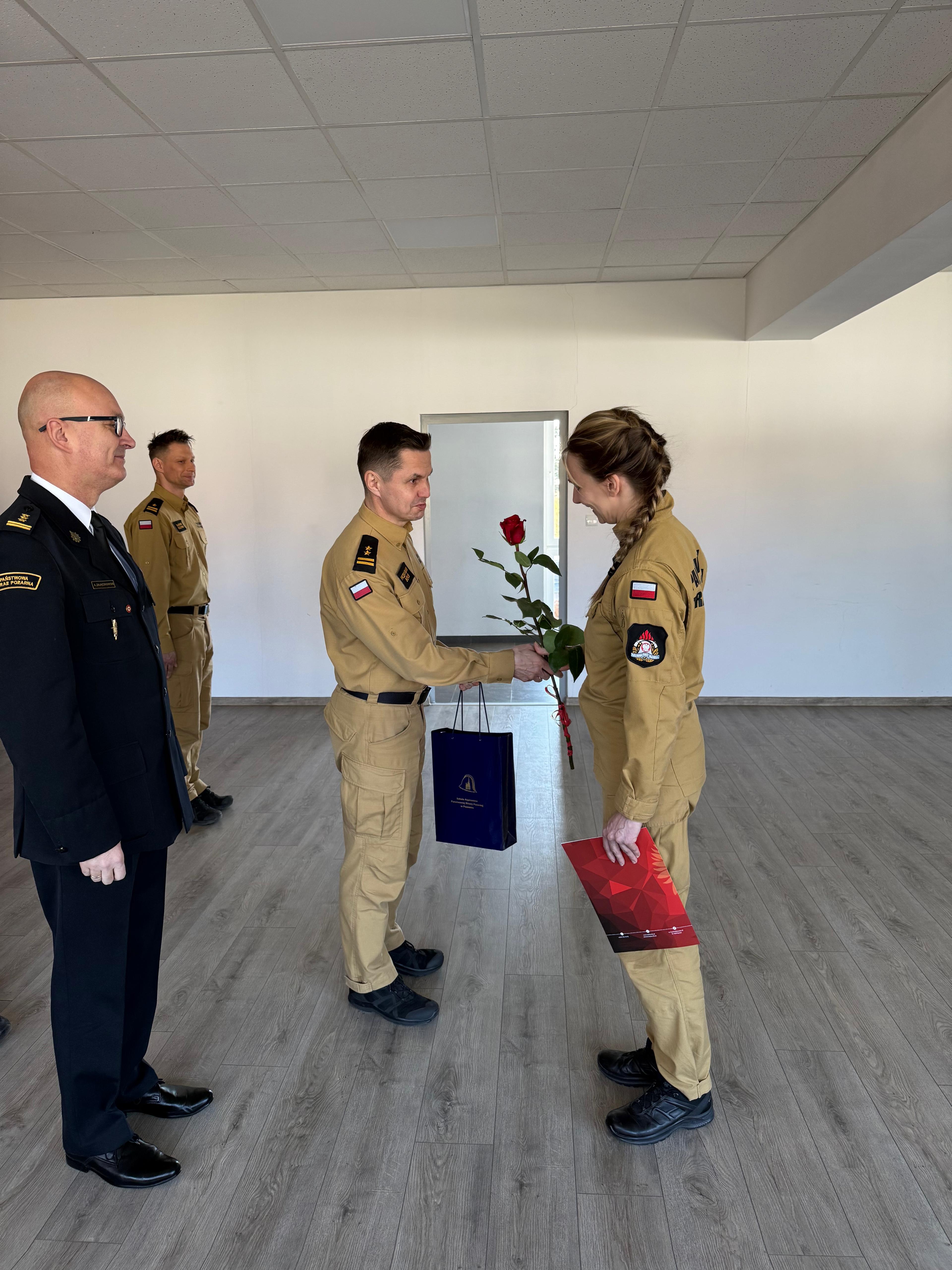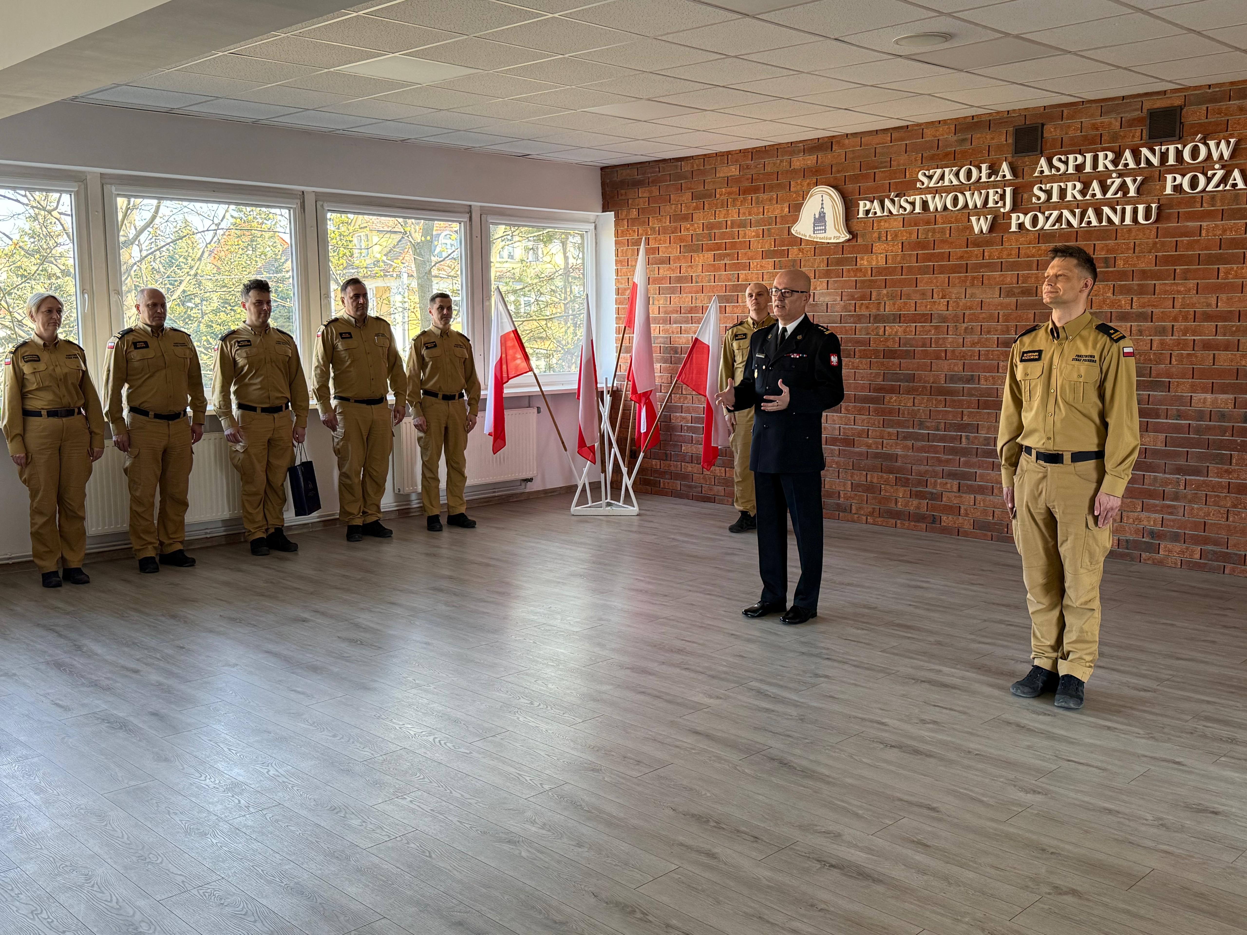 W uroczystym zakończeniu szkolenia udział wzięli Komendant Szkoły st. bryg. Andrzej Zajączkowski, z-ca komendanta Szkoły bryg. Przemysław Berus, naczelnik Wydziału Kształcenia st. bryg. Michał Fabiański wraz ze swoim zastępcą st. bryg. Magdaleną Karolewską oraz kadra Wydziału Pododdziałów Szkolnych. Po przyjęciu meldunku od mł. bryg. Sławomira Kozłowskiego, głos zabrał Komendant, który podkreślił jak ważna jest praca strażaka i związane z nią bezpieczeństwo obywateli, że zawód nasz wiąże się z odpowiedzialność, którą za sobą niesie oraz oddaniem drugiemu człowiekowi.