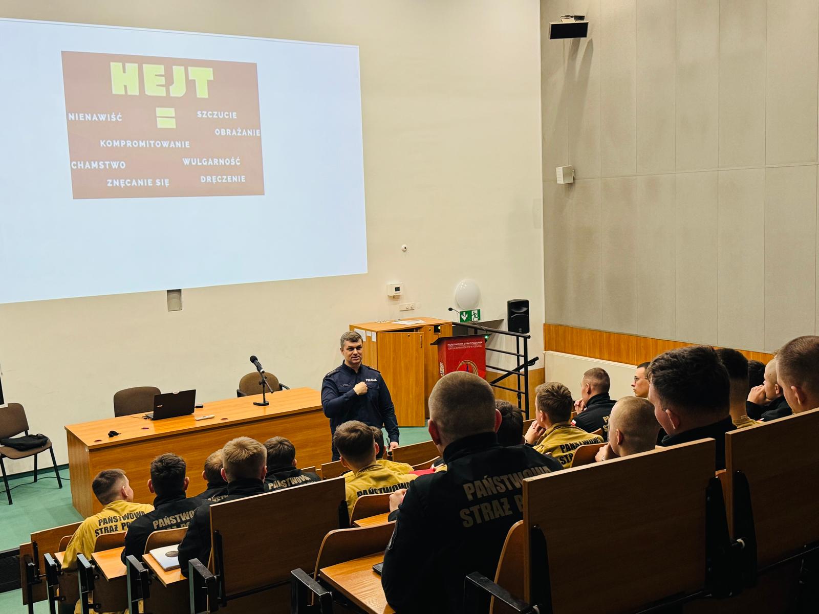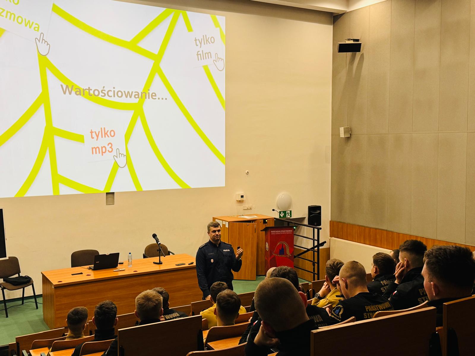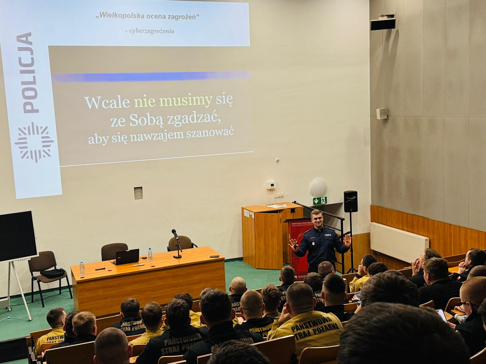 Świadomi użytkownicy internetu są mniej podatni na szkodliwe działanie, a społeczne zachowanie w sieci przyczynia się do ochrony nas samych, jak i całego społeczeństwa. Dlatego w dniu 13 marca br. na terenie Szkoły Aspirantów PSP w Poznaniu dbyło sie szkolenie w tym zakresie dla kadetów kształecnia dziennego w zawodzie technik pożarnictwa K-33, poprowadzone przez nadkomisarza Szymona Witczaka z Komendy Wojewódzkiej Policji w Poznaniu.