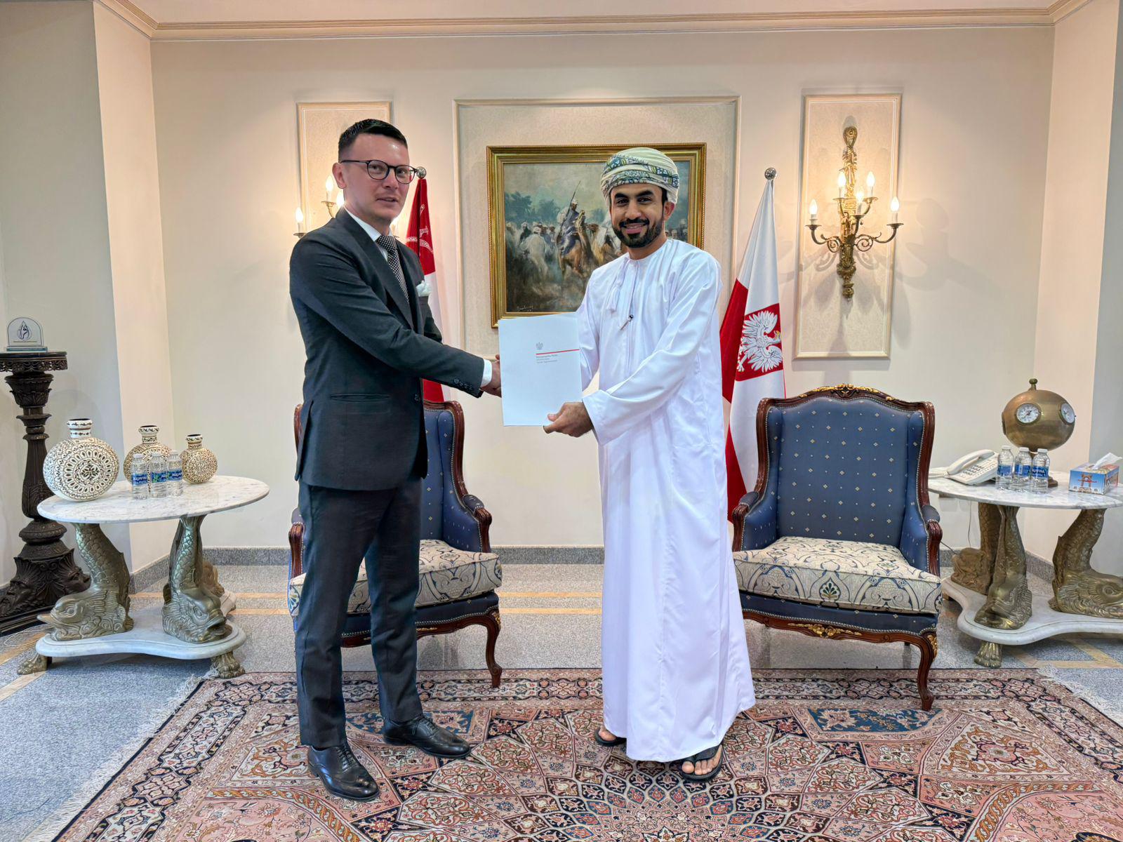 On December 15, 2024,Consul Sebastian Kmita presented the act of appointment, effective January 31, 2025, to the Honorary Consul of the Republic of Poland in Muscat, Mr. Ahmed Al Hinai, for another five-year term.