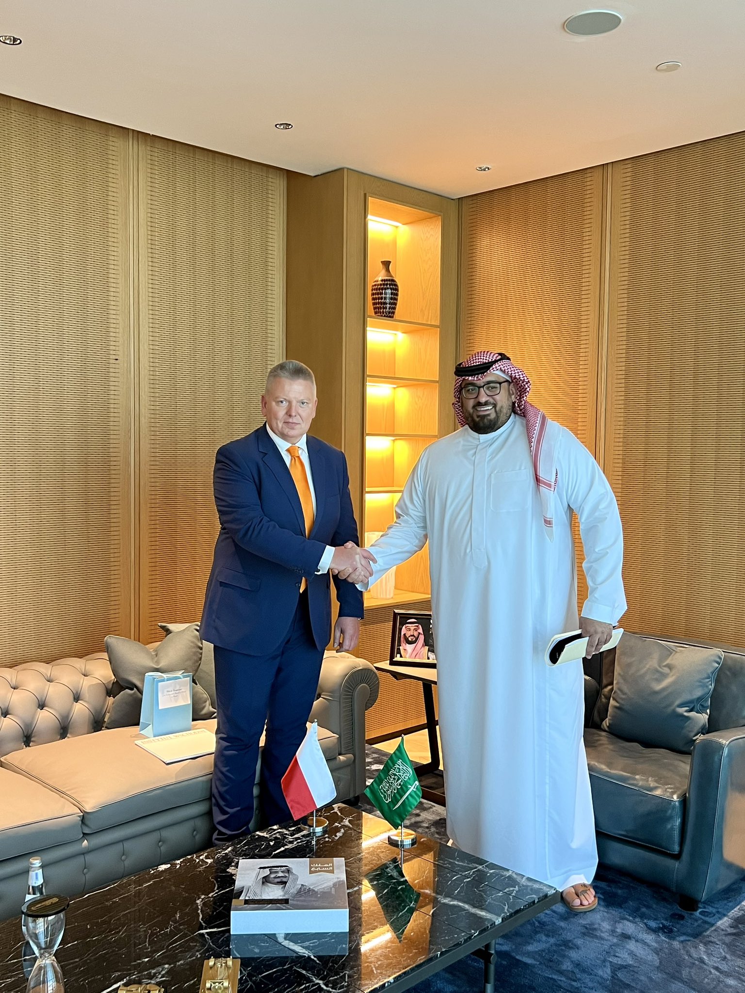 On 9 July 2023. Ambassador Robert Rostek was received by the Minister of Economy and Planning His Excellency Faisal bin Fadel bin Mohsen Al-Ibrahim. During the conversation, topics related to enhancing cooperation between the Kingdom of Saudi Arabia and Poland were discussed.