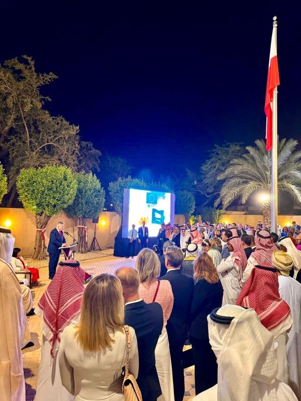On May 2nd 2024 a ceremonial reception on the occasion of the Day of the May 3rd Constitution was held at the residence of the Ambassador of the Republic of Poland to the Kingdom of Saudi Arabia, in the Diplomatic Quarter in Riyadh. The numerous guests, including representatives of the diplomatic corps, Saudi authorities, business and the Polish community, listened to three anthems this year, namely the Saudi and Polish ones, but also the Ode to Joy, which functions as the anthem of the European Union. This accent referred to the 20th anniversary of the Republic of Poland's membership in the EU. Guests had the opportunity to try Polish cuisine and even real Polish donuts. The Ambassador's Residence was visited by over 400 guests that evening, and the guest of honor was the representative of the Assistant Deputy Governor of Riyadh, Nabil Al Taweel. The local Ministry of Foreign Affairs was represented by the director of Diplomatic Protocol, Mohammed Al Ghamdi.