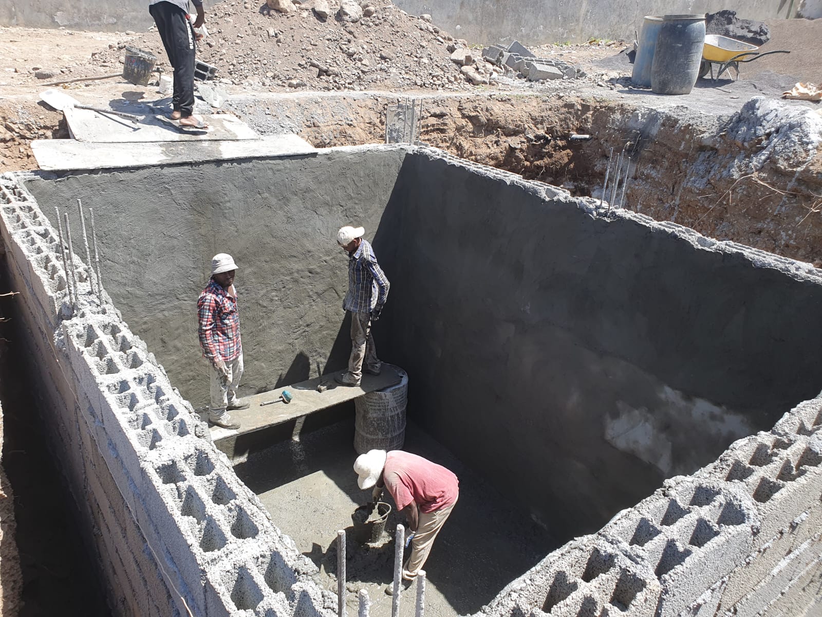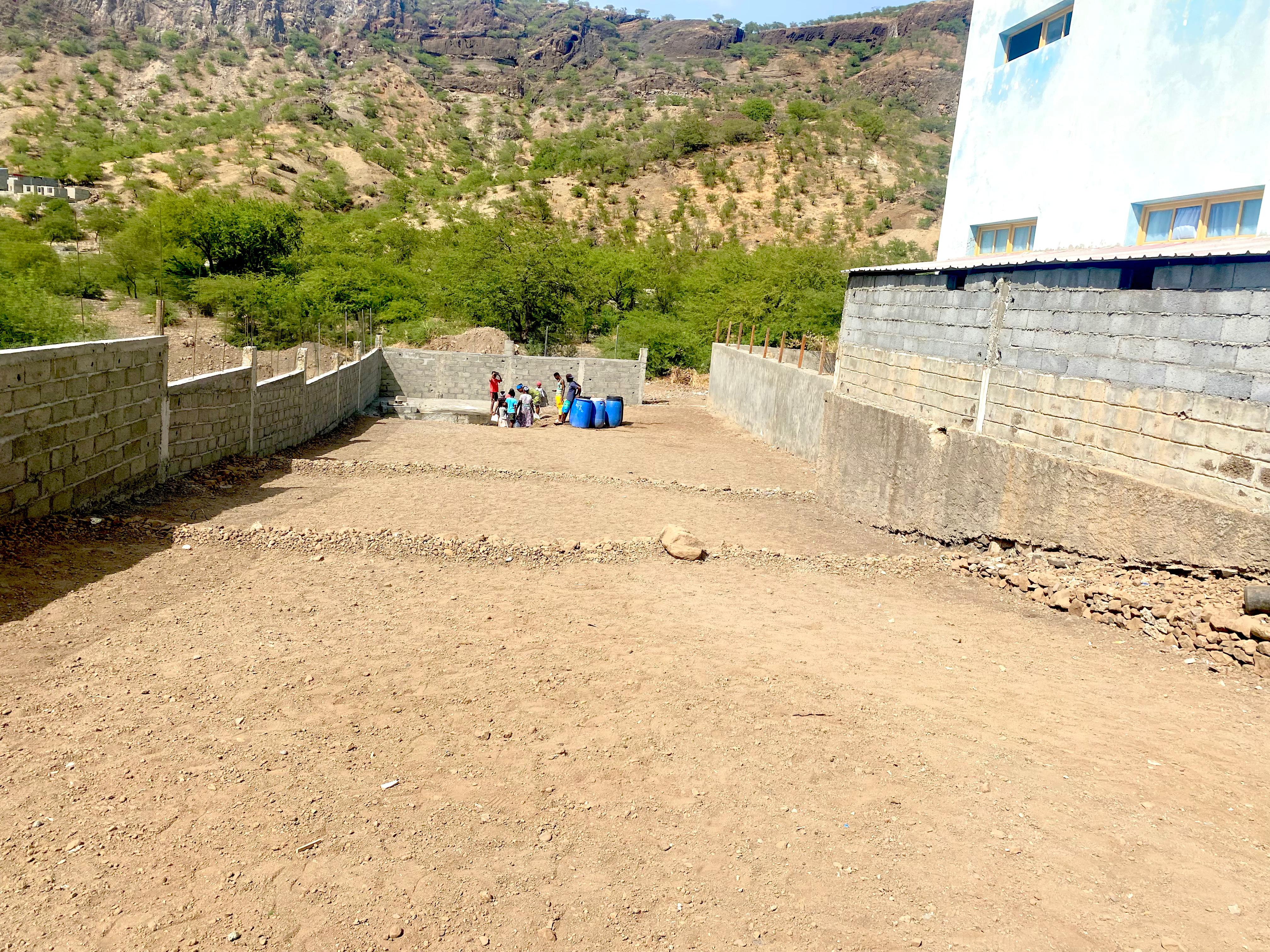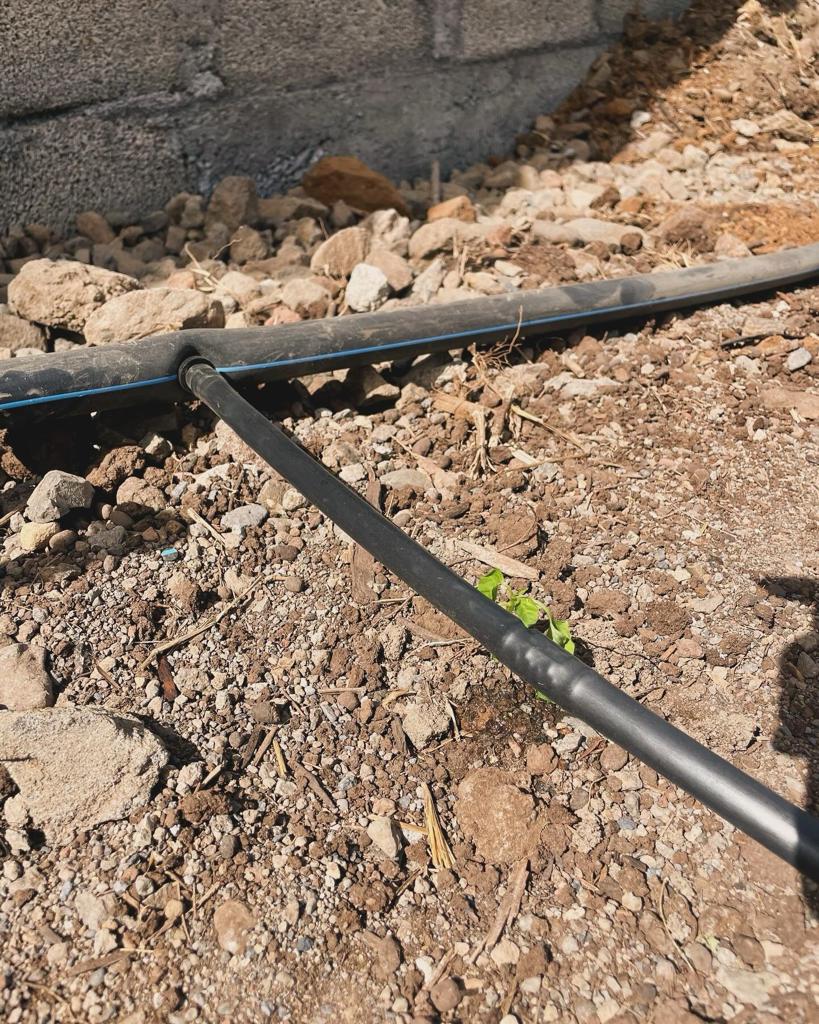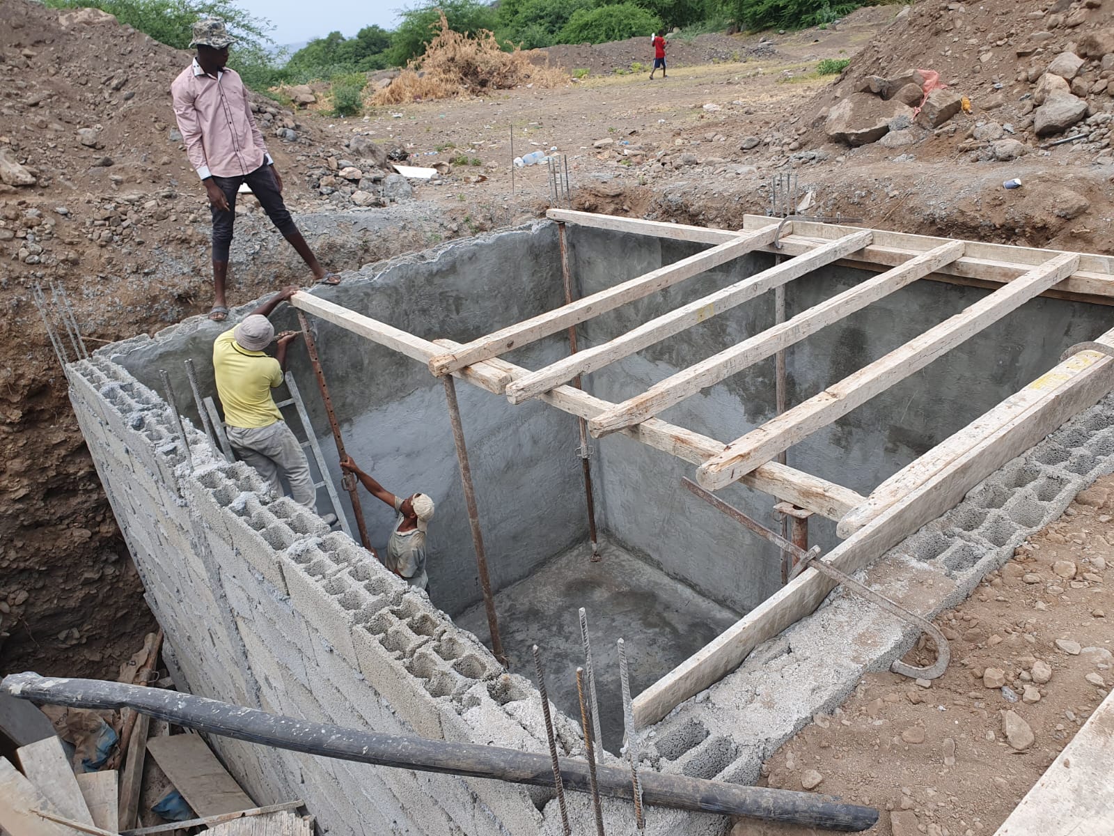 Relativamente a construção do tanque de água soterrânea, nota-se que já existe água corrente, pronta para a implementação do sistema de rega gota a gota.