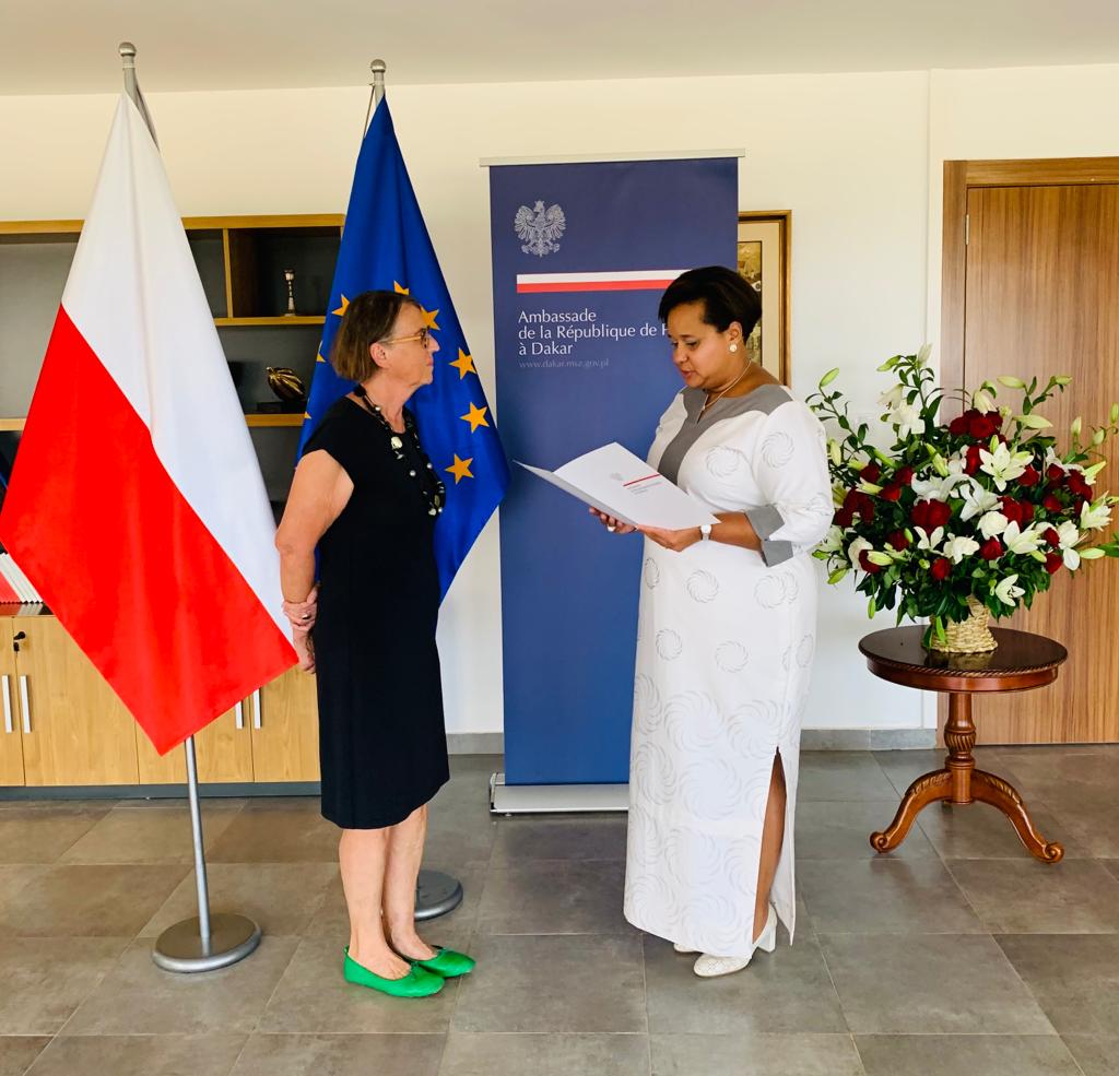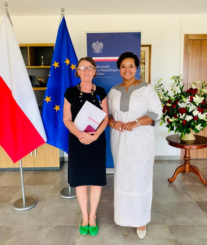 Le jeudi 10 novembre, à l'Ambassade de Pologne à Dakar, au nom du Président de la République de Pologne, Madame l’Ambassadeur Margareta Kassangana a remis la Croix de Chevalier de l'Ordre du Mérite de la République de Pologne à Madame Zuzanna Trąmpczyńska.