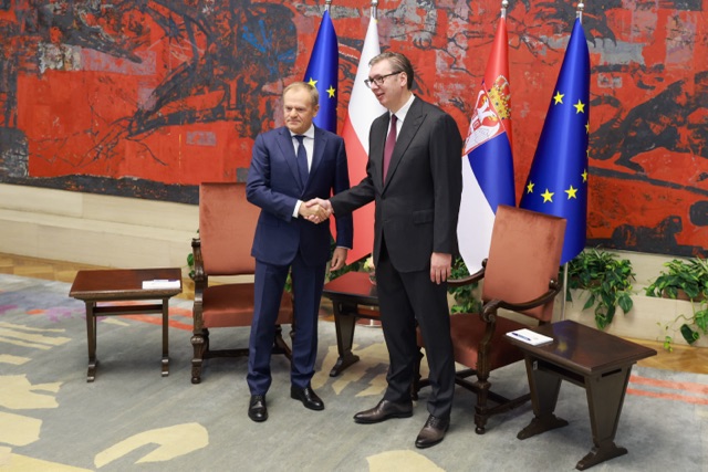 W dniach 23-24 października 2024 r. oficjalną wizytę w Belgradzie złożył Pan Premier Donald Tusk. Spotkał się z prezydentem Aleksandrem Vučiciem oraz premierem Milošem Vučeviciem, w którymi przeprowadził rozmowy poświęcone kwestiom współpracy dwustronnej oraz perspektywy europejskiej Serbii.